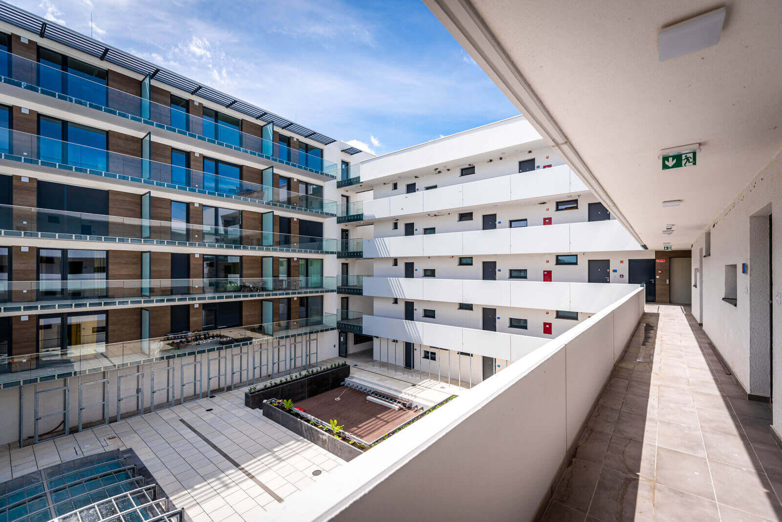 A lakásokban úsztatott aljzaton kerámia, illetve laminált parketta burkolatok találhatók, a teraszokon pedig csúszásmentes greslap burkolat. Mindezek mellett az épületben egy 13 és egy 8 személyes lift is épült. A személygépkocsik behajtására az utcáról két kapubehajtó is szolgál, ahonnan elérhetőek a telken belüli és az épületen belüli parkolók is.