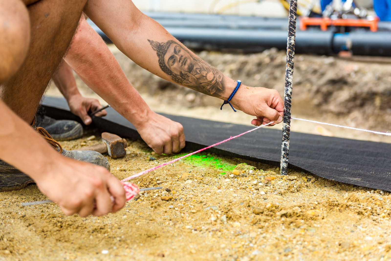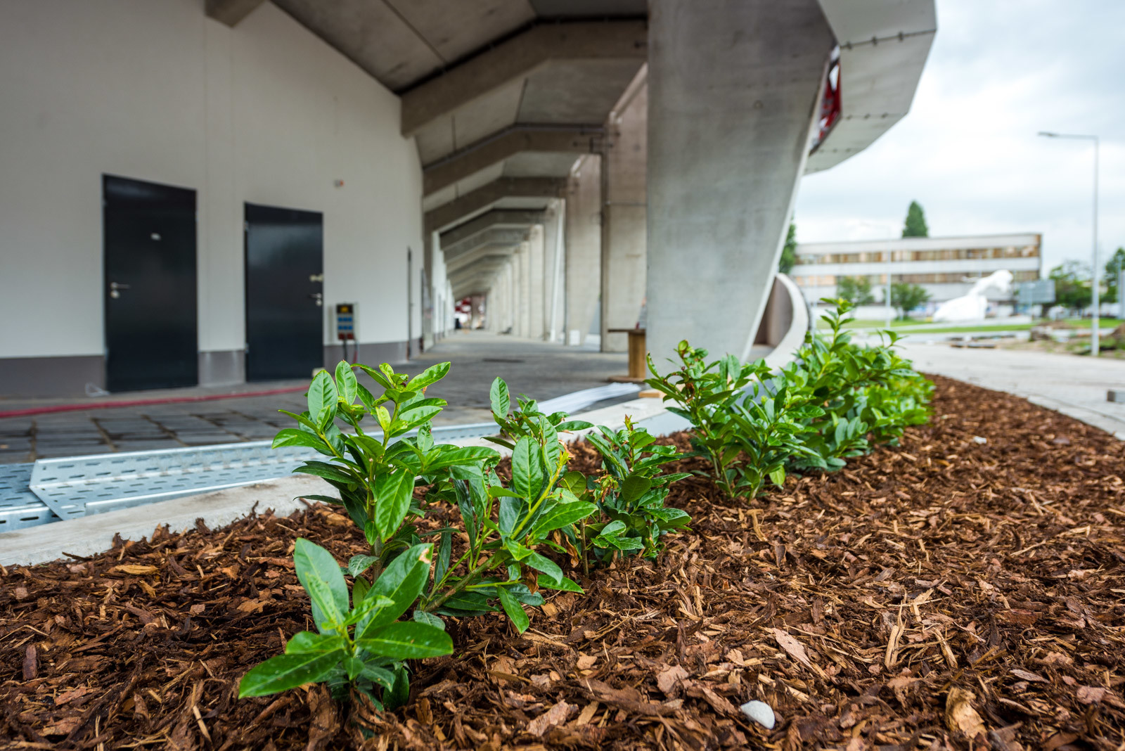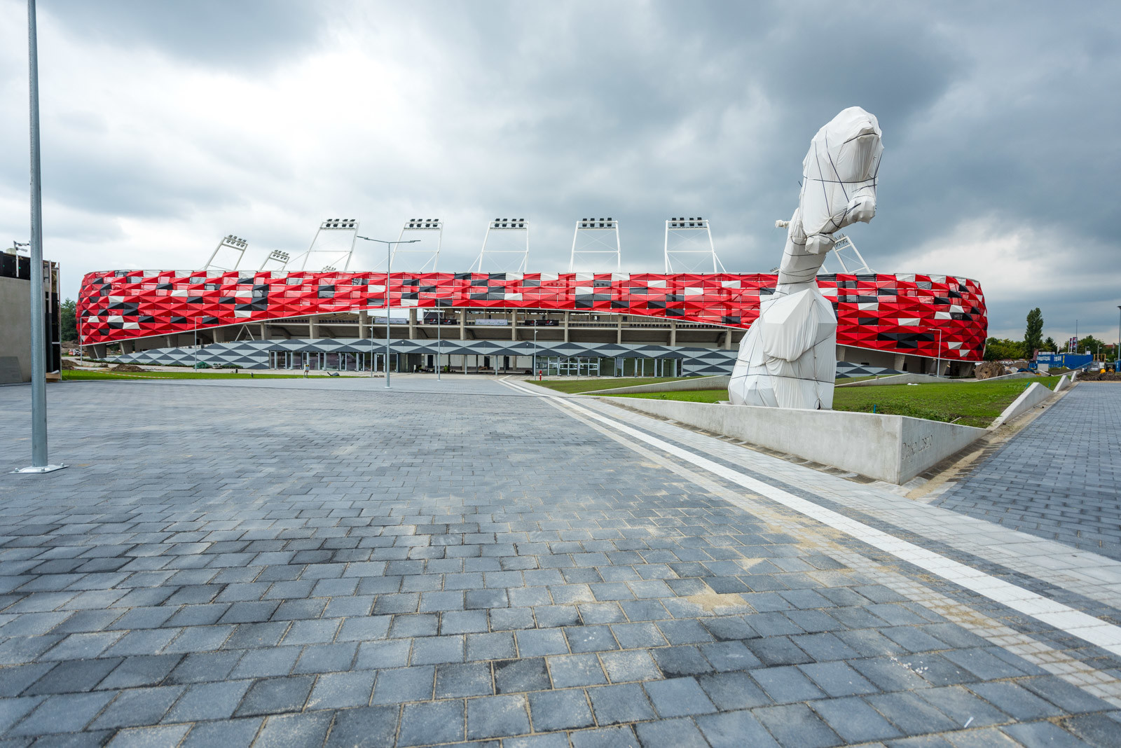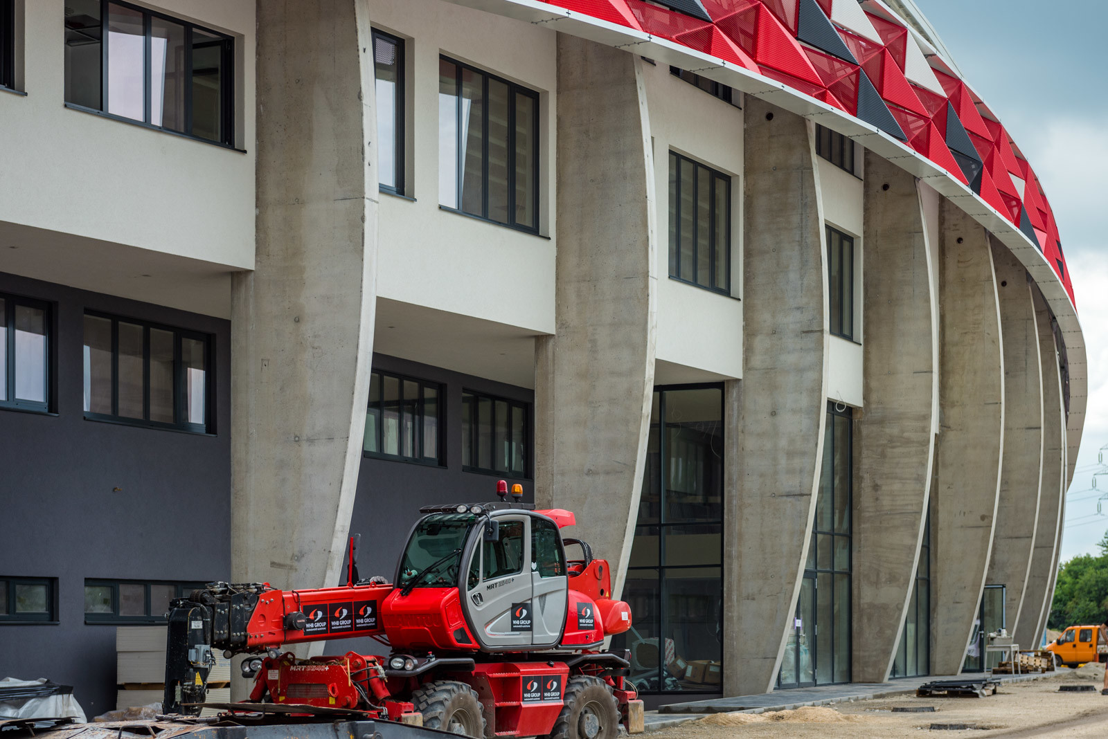 A külső területen a parkolók építése mellett folyamatosan halad a füvesítés és a növénytelepítés is, a küzdőtéren pedig már a sportpálya alépítményeit építik. Ezt követően egyre látványosabb lépések következnek: