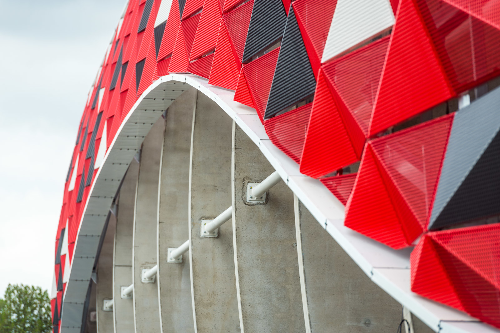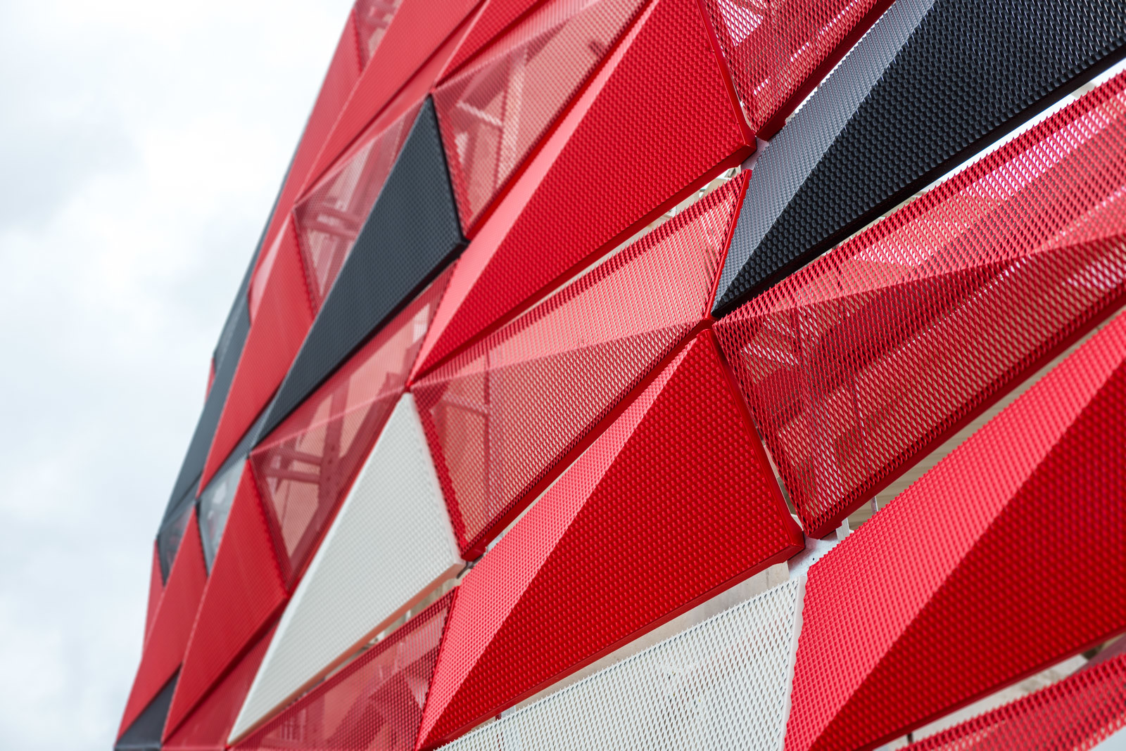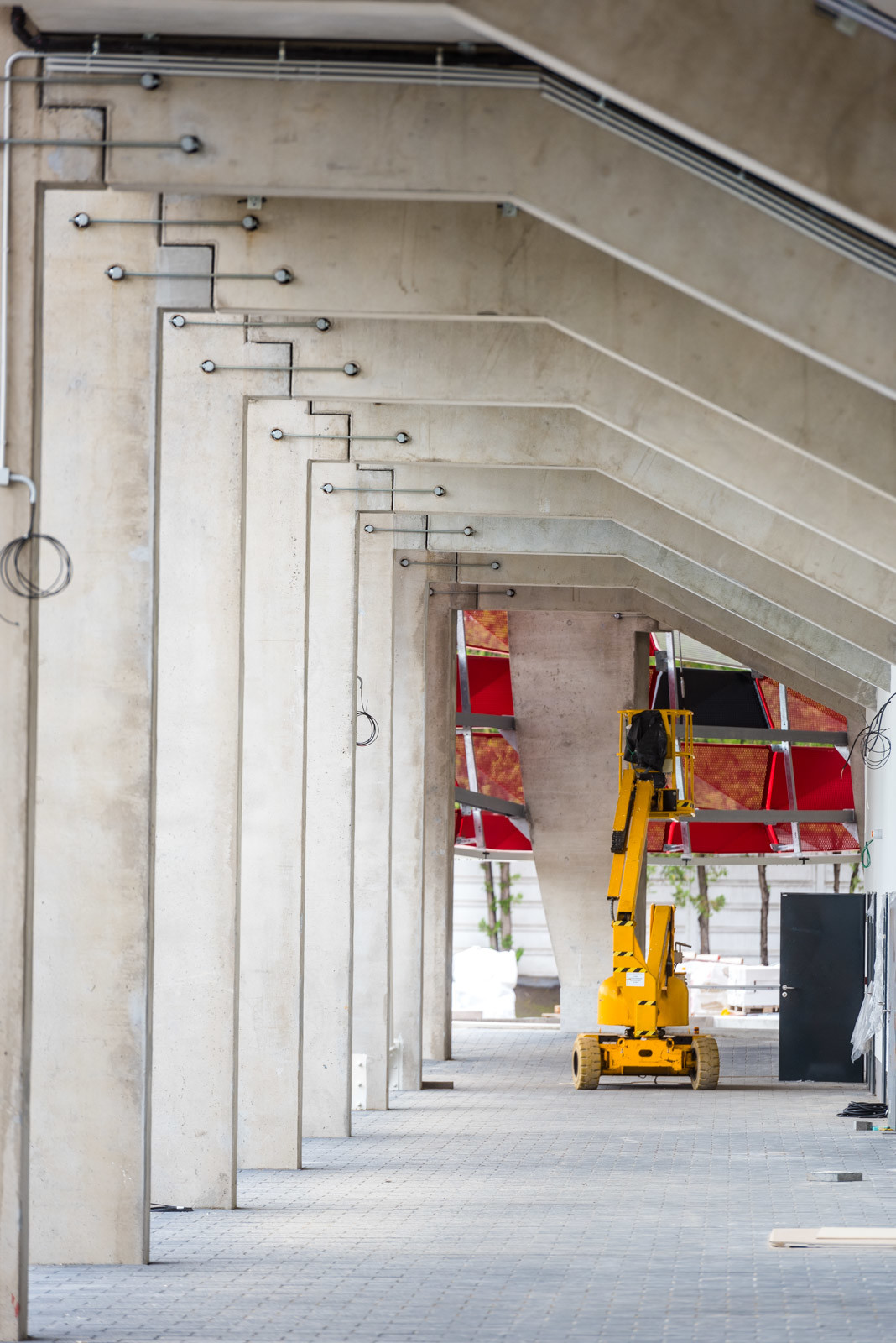 A pillérek elhelyezése, illetve a pontos geodéziai bemérés és többszöri helyszíni ellenőrzés után kezdődhetett meg az acél háttérszerkezet, valamint a homlokzati terpesztett lemezből készült burkolatok gyártmánytervezése, gyártása és kivitelezése.