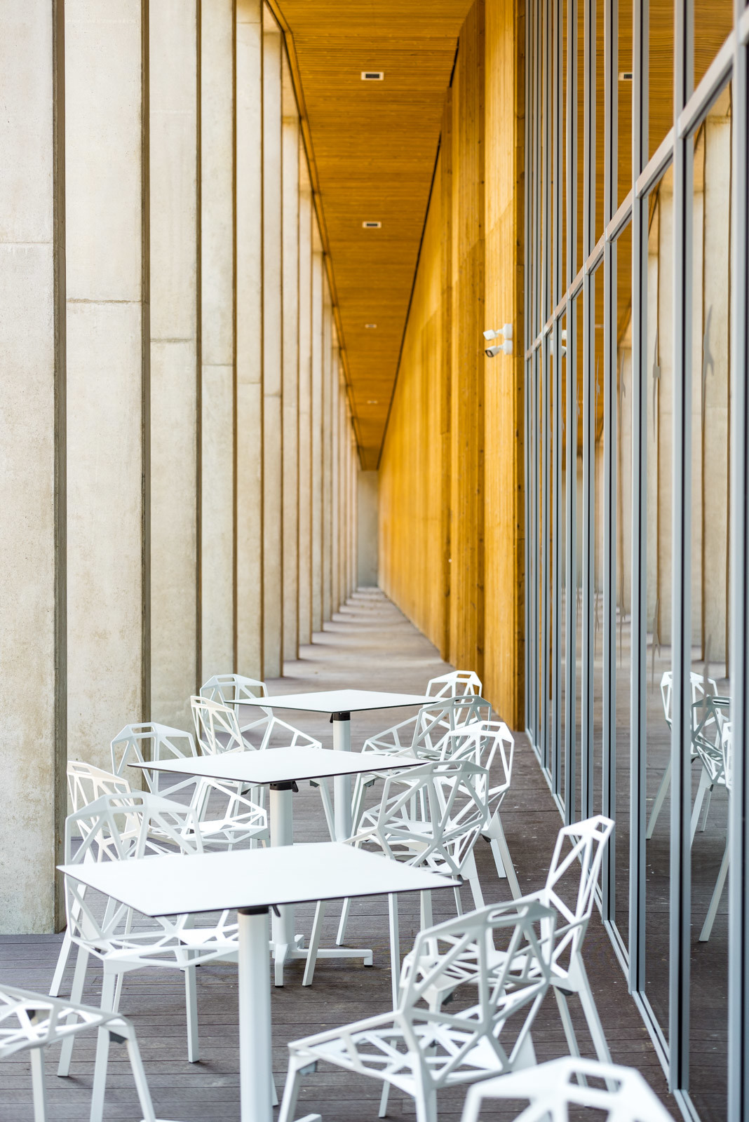 Az épület közepén egy tágas tér lett kialakítva, ahonnan valamennyi további helyiség - kiállítótér, mozi, büfé - elérhető.