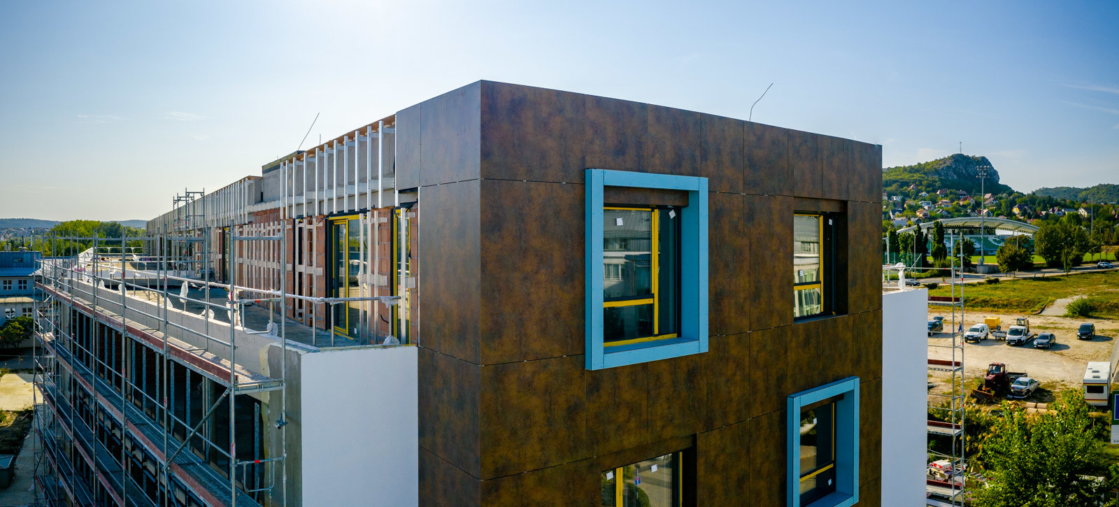Az irodaépület önmagában is páratlan beruházás Budaörsön: ez a város első valóban zöld irodaháza. A beruházás részeként három szinten közel 1200 négyzetméternyi körpanorámás, A+ energiahatékonyságú iroda várja lakóit.
