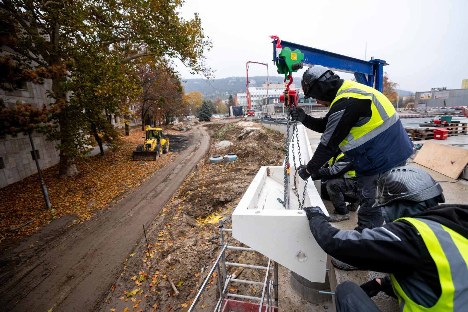 “A befejező fázis munkáit végezzük, amely a térburkolási munkákat, illetve a finombeton elemek elhelyezését jelenti” - nyilatkozta lapunknak Pásztor Petra, a WHB létesítményfelelős munkatársa.