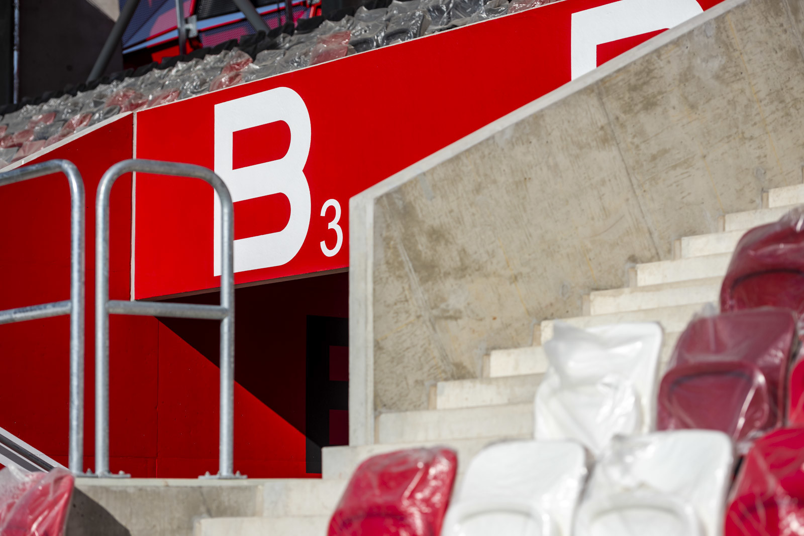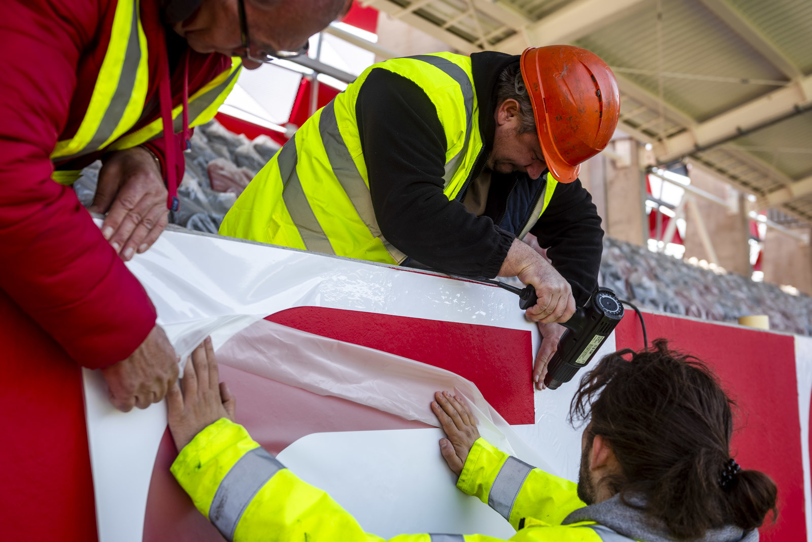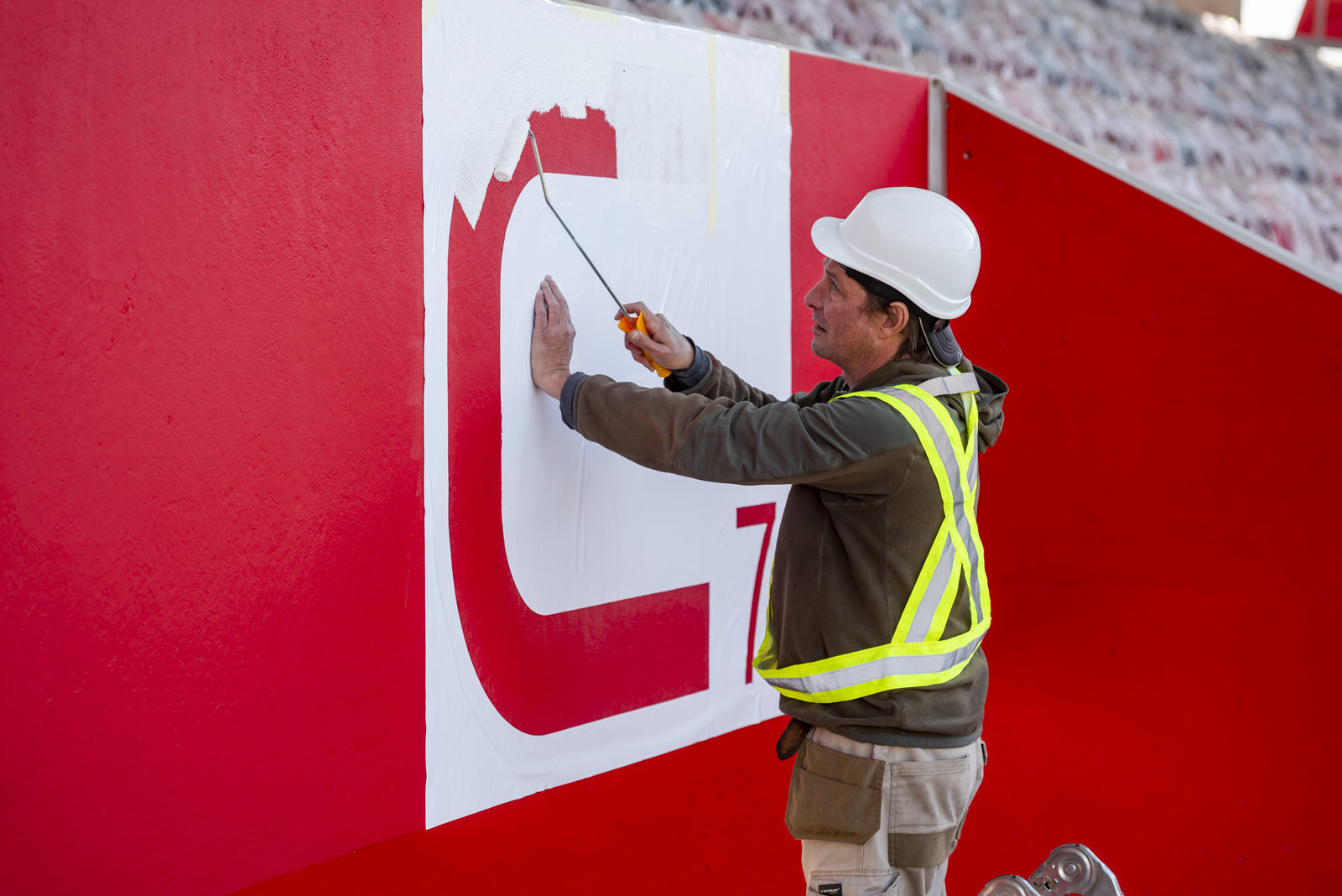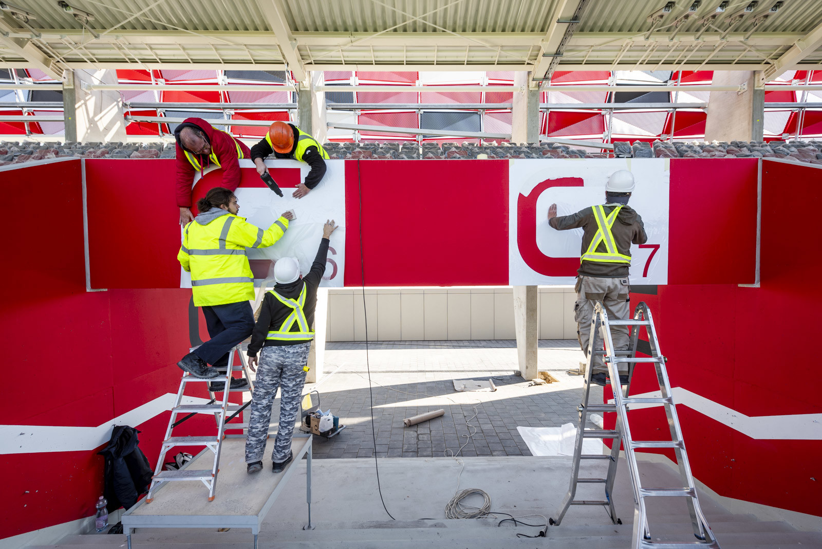 Elkezdődött a végső látványt meghatározó és a nézők tájékozódását segítő infógrafikai rendszer kialakítása, valamint a biztonsági korlátok felszerelése is.