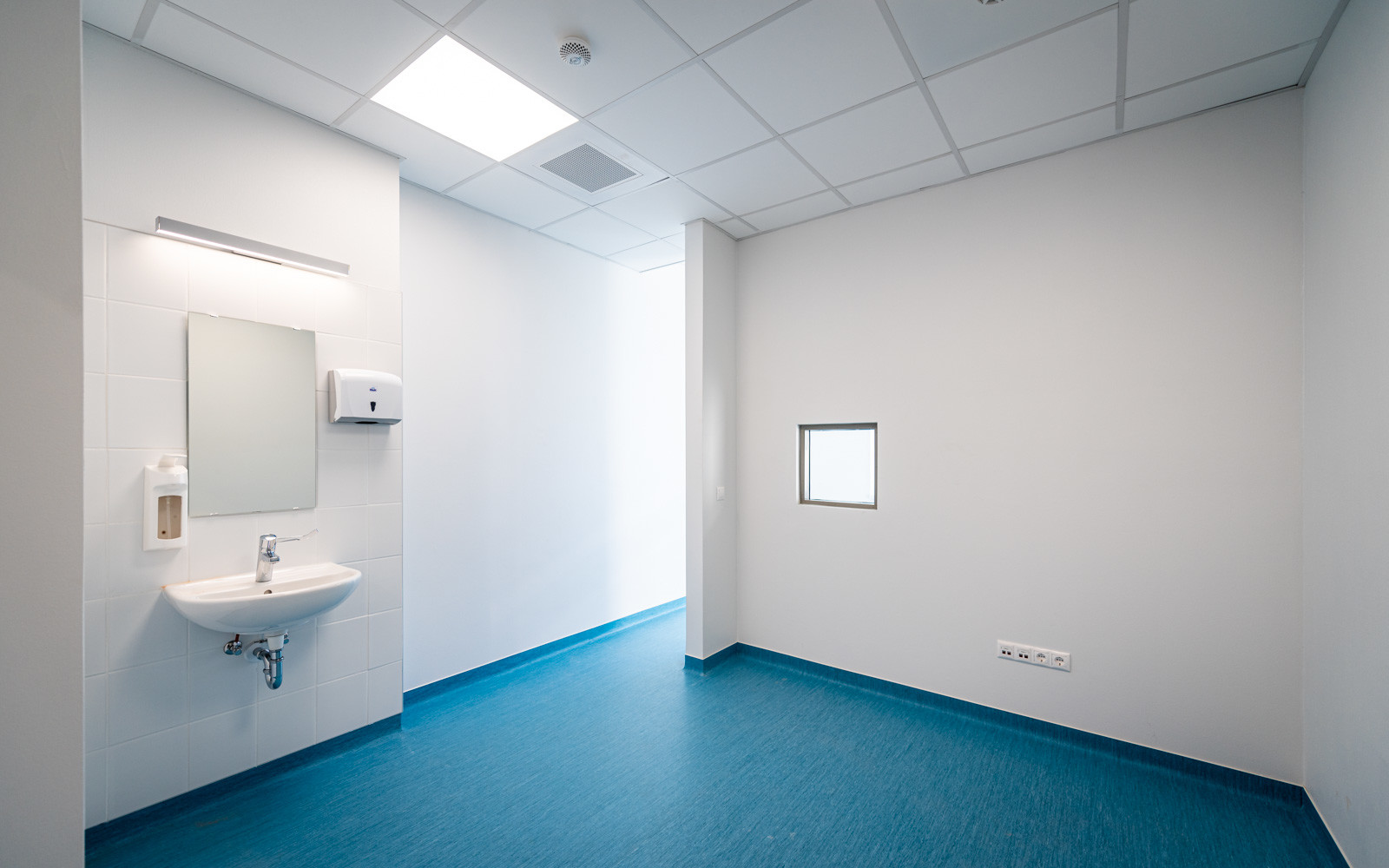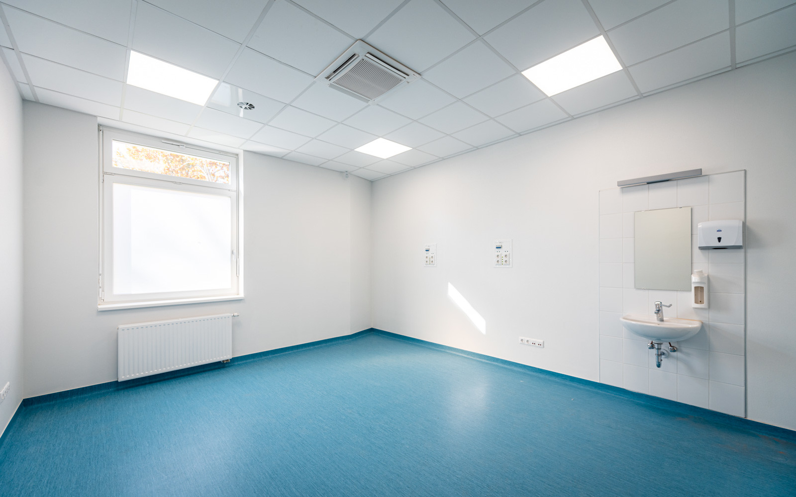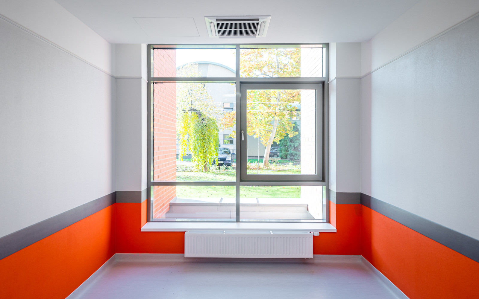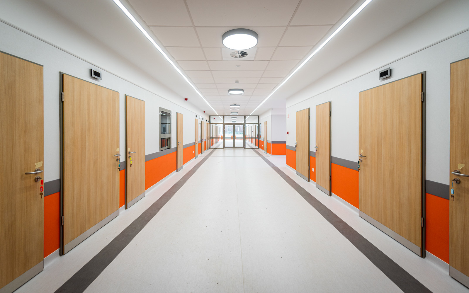 Az L alakot formáló épületet a Bajcsy Zsilinszky Kórház- és Rendelőintézet Maglódi úti központjában építették fel.