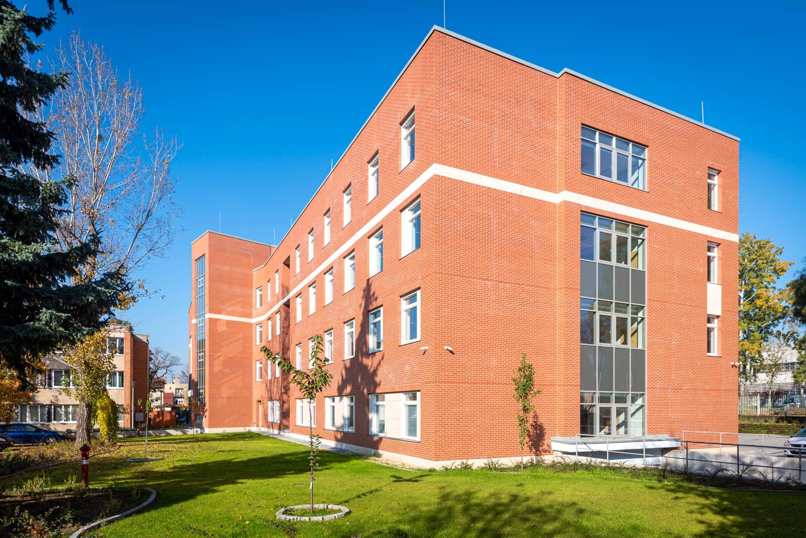 Az új épület a Bajcsy Kórház területén a C épület és a mosoda között, egy földszinttel, három emelettel és egy pinceszinttel jött létre. Utóbbiban egy mélygarázs épült ki, mely 50 parkolóhelyet biztosít.