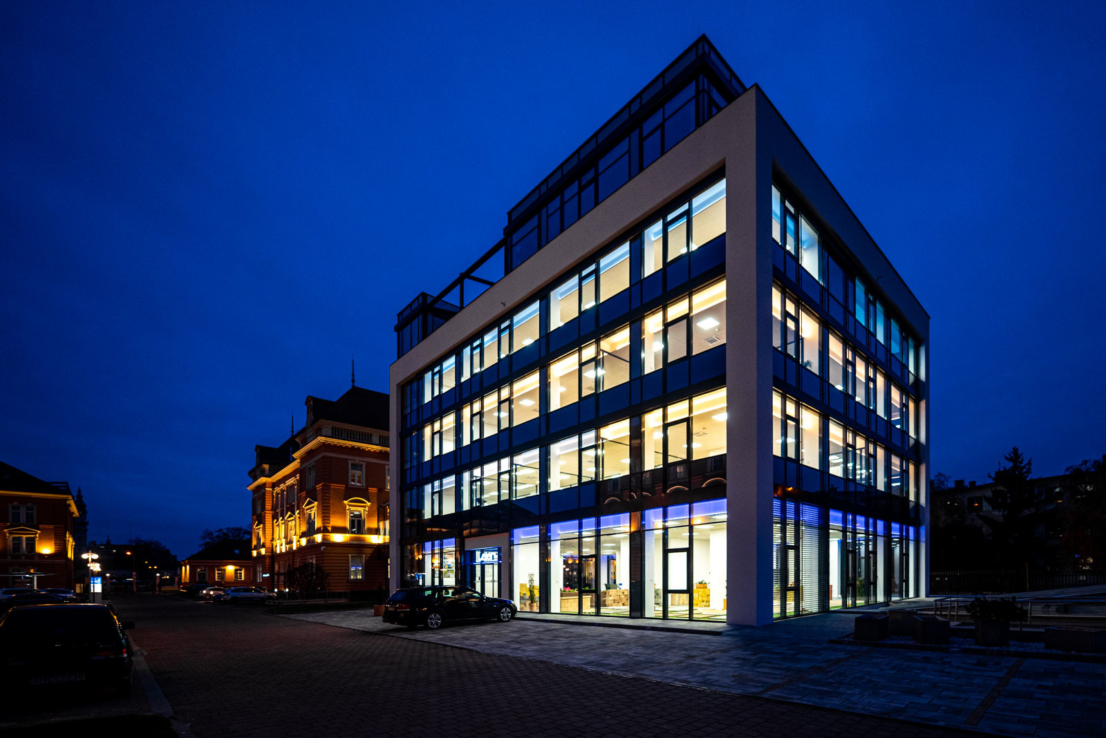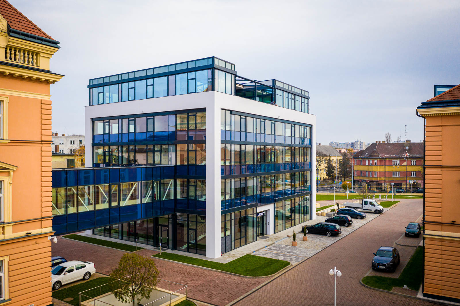 Az új irodaépülettel vált teljessé a győri Leier City Center 2006-ban kezdődött felújítási programja. Meghatározó szempont volt, hogy az új épület ne a több mint 100 éves épületek „másolata” legyen, hanem egy teljesen új és modern irodaházat hozzanak létre, mely a nagy üvegfelületek miatt szó szerint tükrözi és kontrasztba állítja a múltbéli és új építészeti megoldásokat.