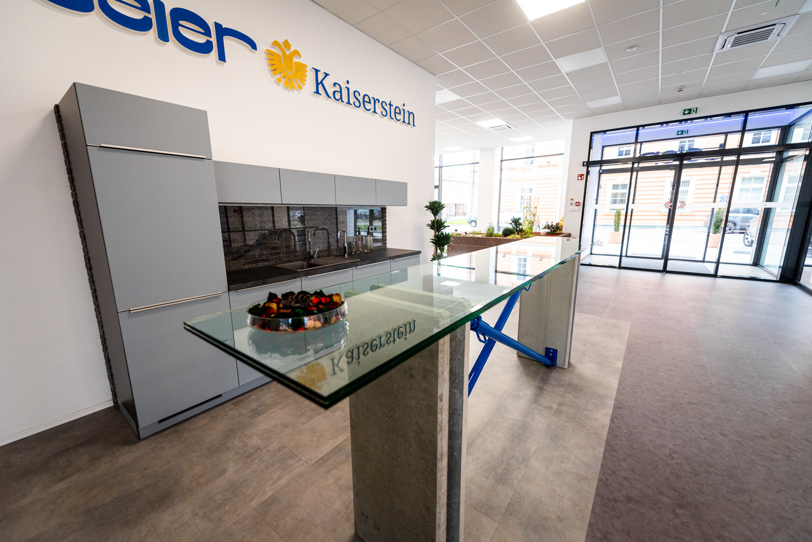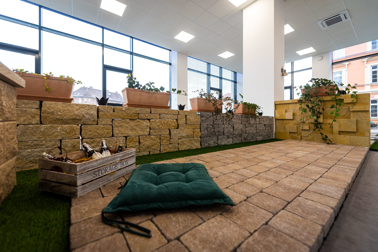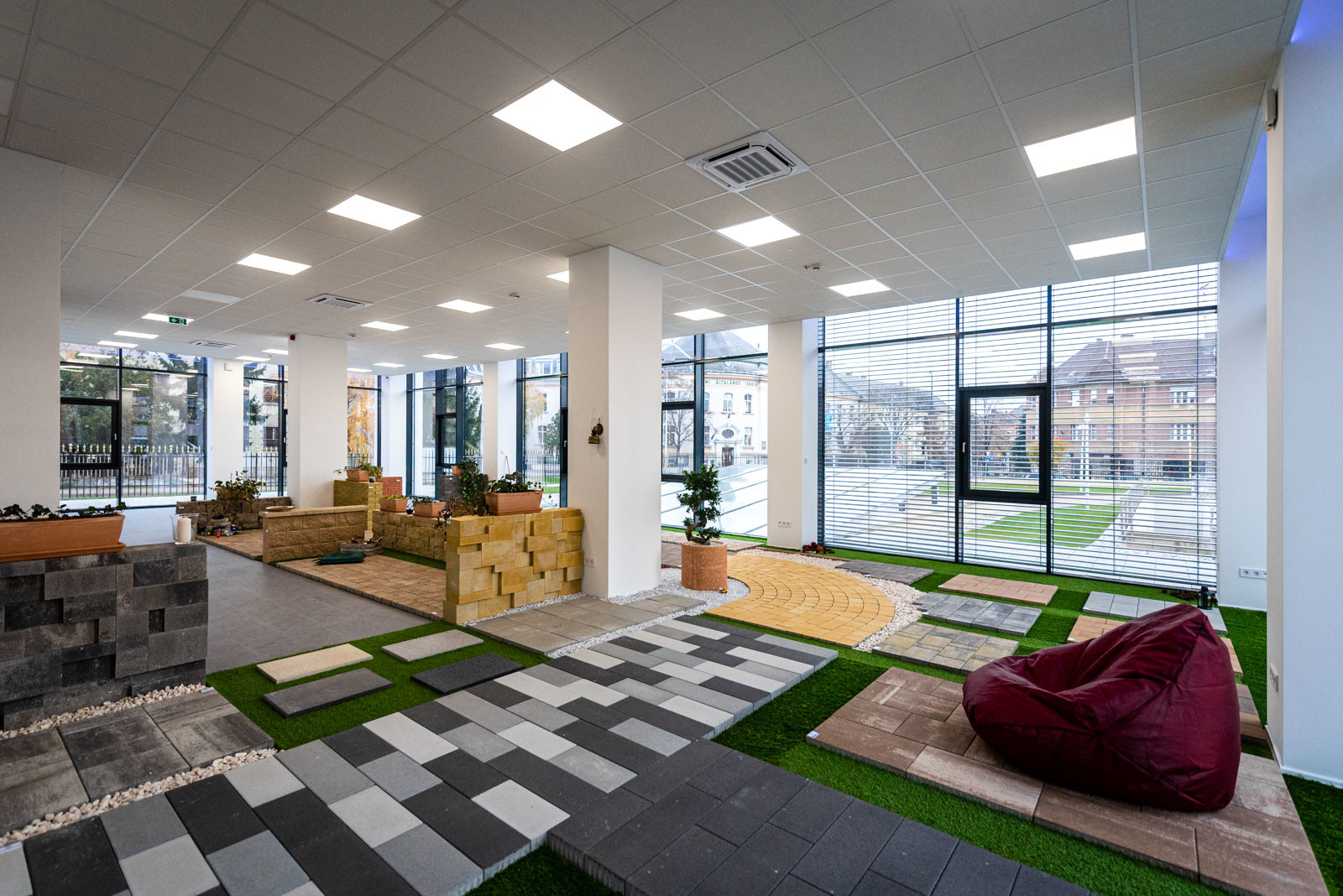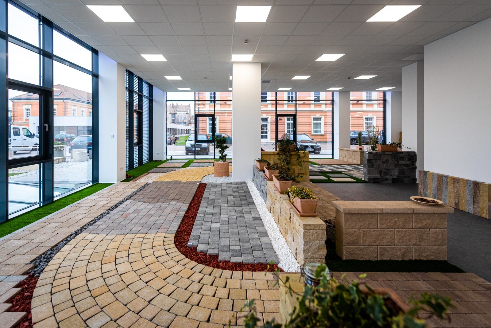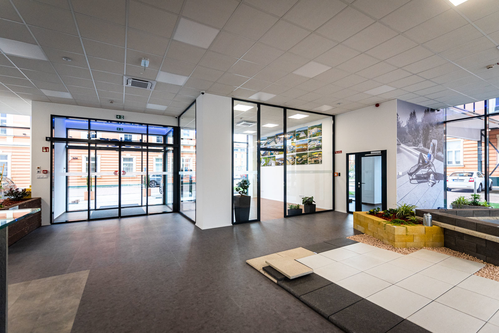 A földszinti részen található a Leier Kaiserstein Galéria, ahol prémium kertépítési termékek színesítik a teret. A Galéria megnyitásával lehetőség nyílik az ügyfeleket nem csupán irodai környezetben, hanem egy kellemes hangulatú, színes mintakertben fogadni.