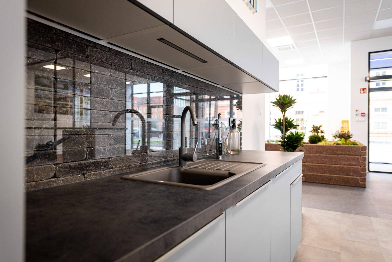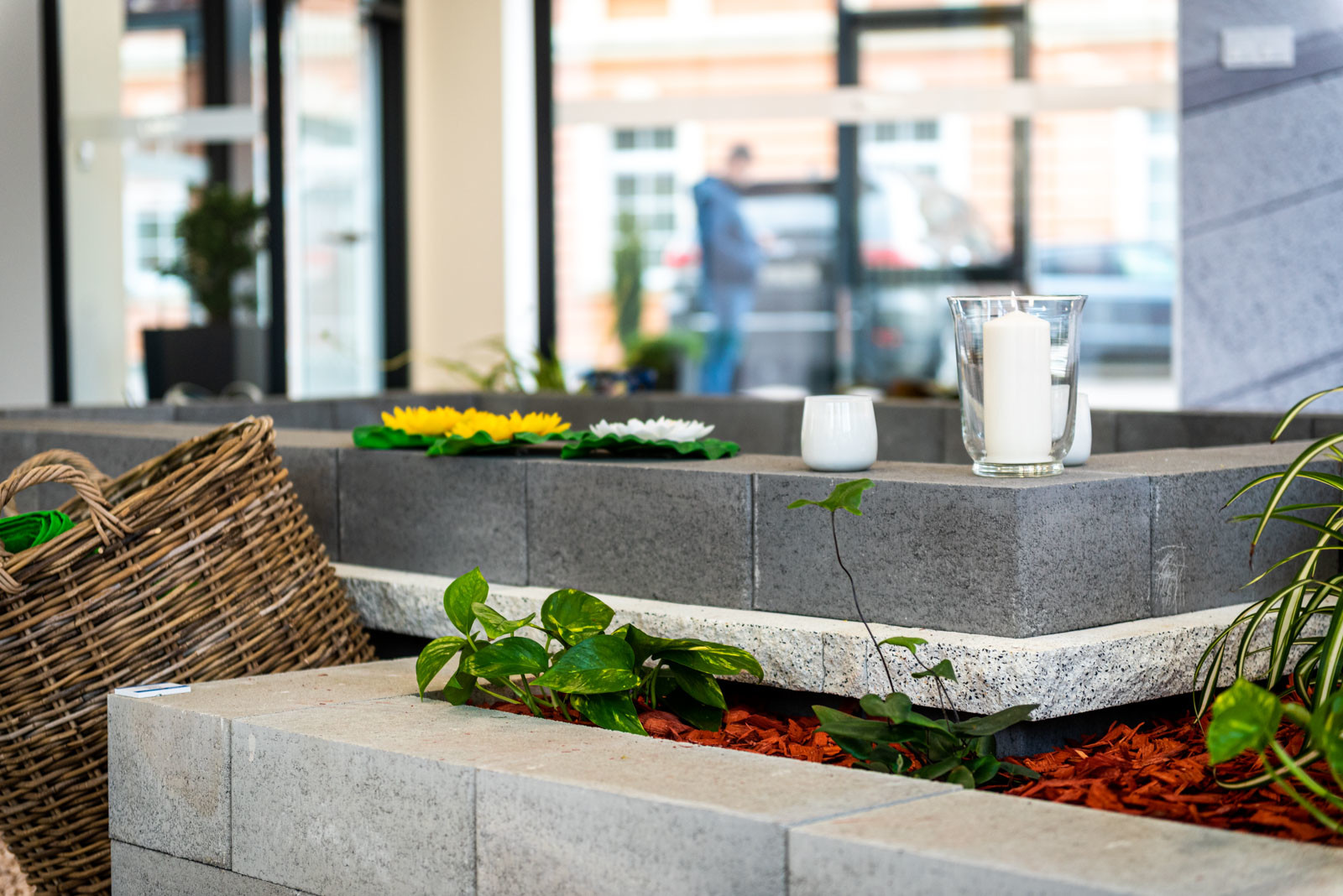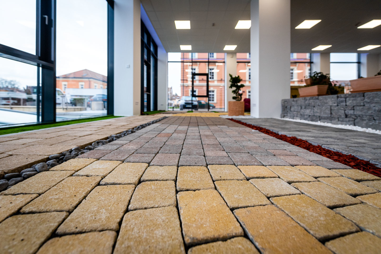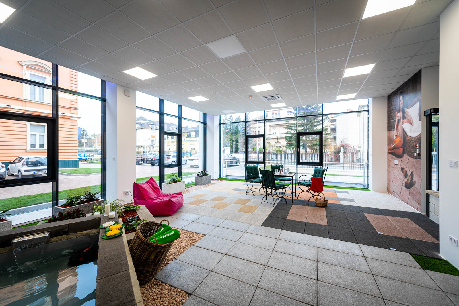 A földszinti részen található a Leier Kaiserstein Galéria, ahol prémium kertépítési termékek színesítik a teret. A Galéria megnyitásával lehetőség nyílik az ügyfeleket nem csupán irodai környezetben, hanem egy kellemes hangulatú, színes mintakertben fogadni.