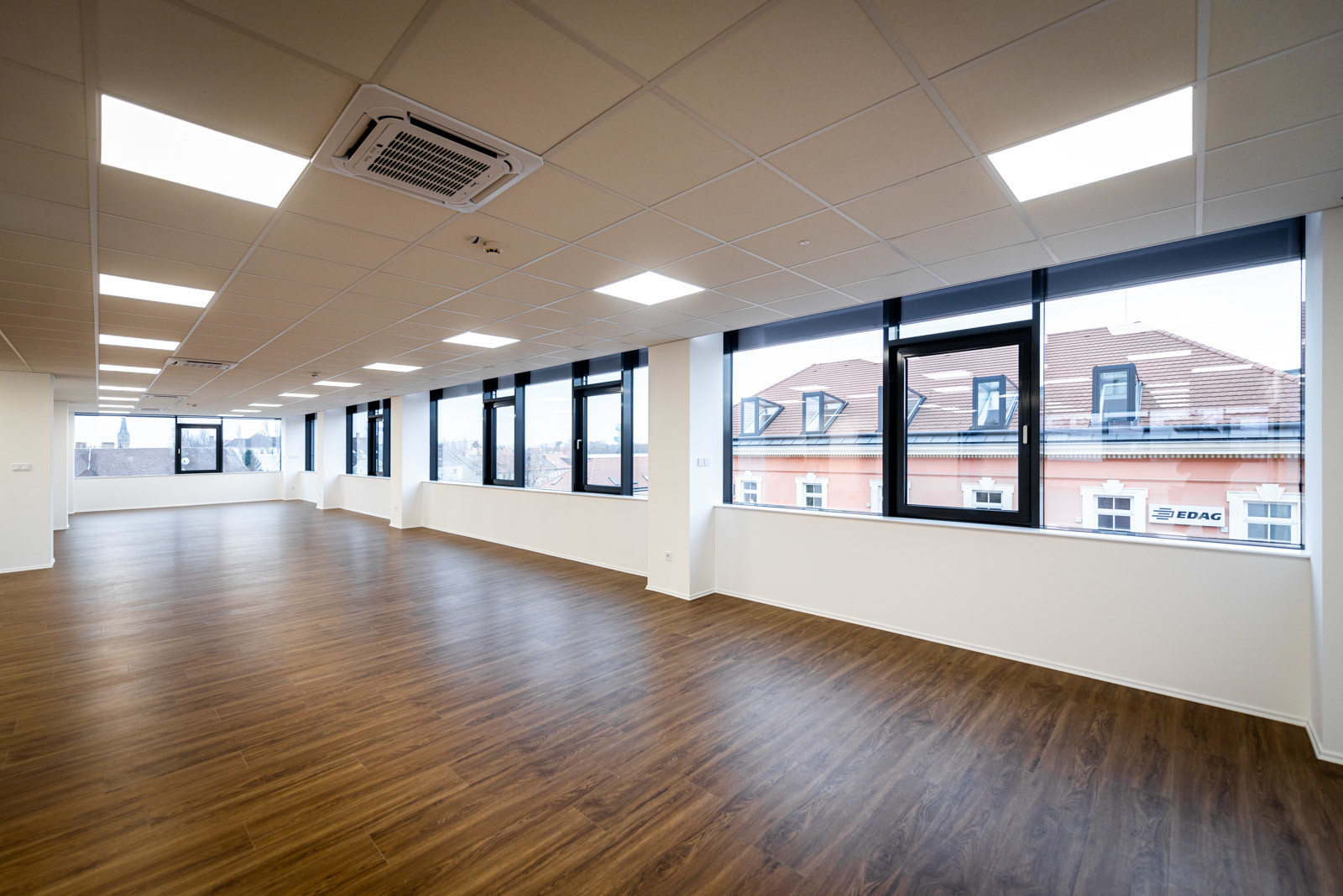 Az előregyártás új innovációja, a korszerű klímafödém biztosítja, hogy a külső borításként használt üvegfelületek ellenére állandó, kiegyensúlyozott hőmérséklet legyen minden helyiségben.