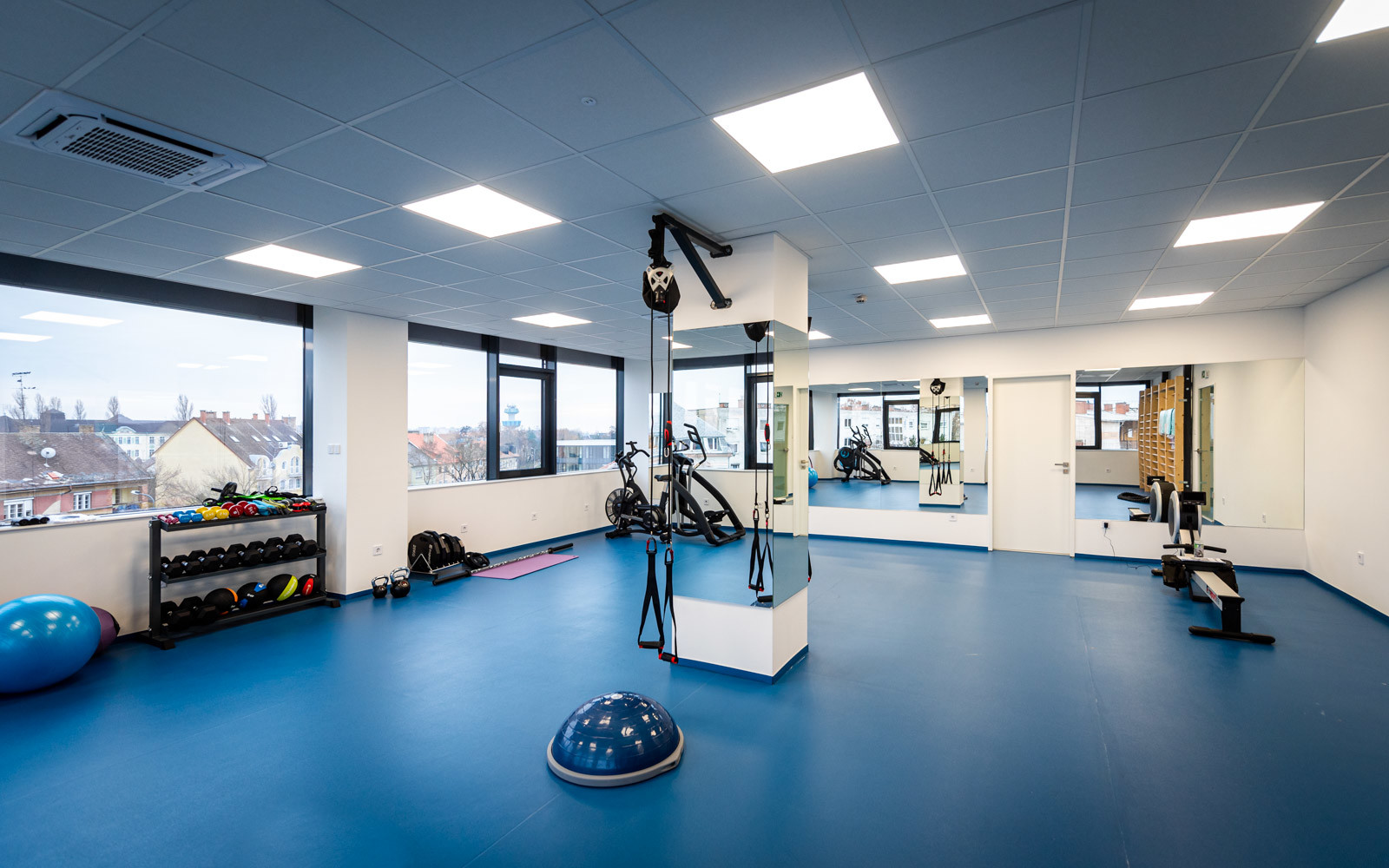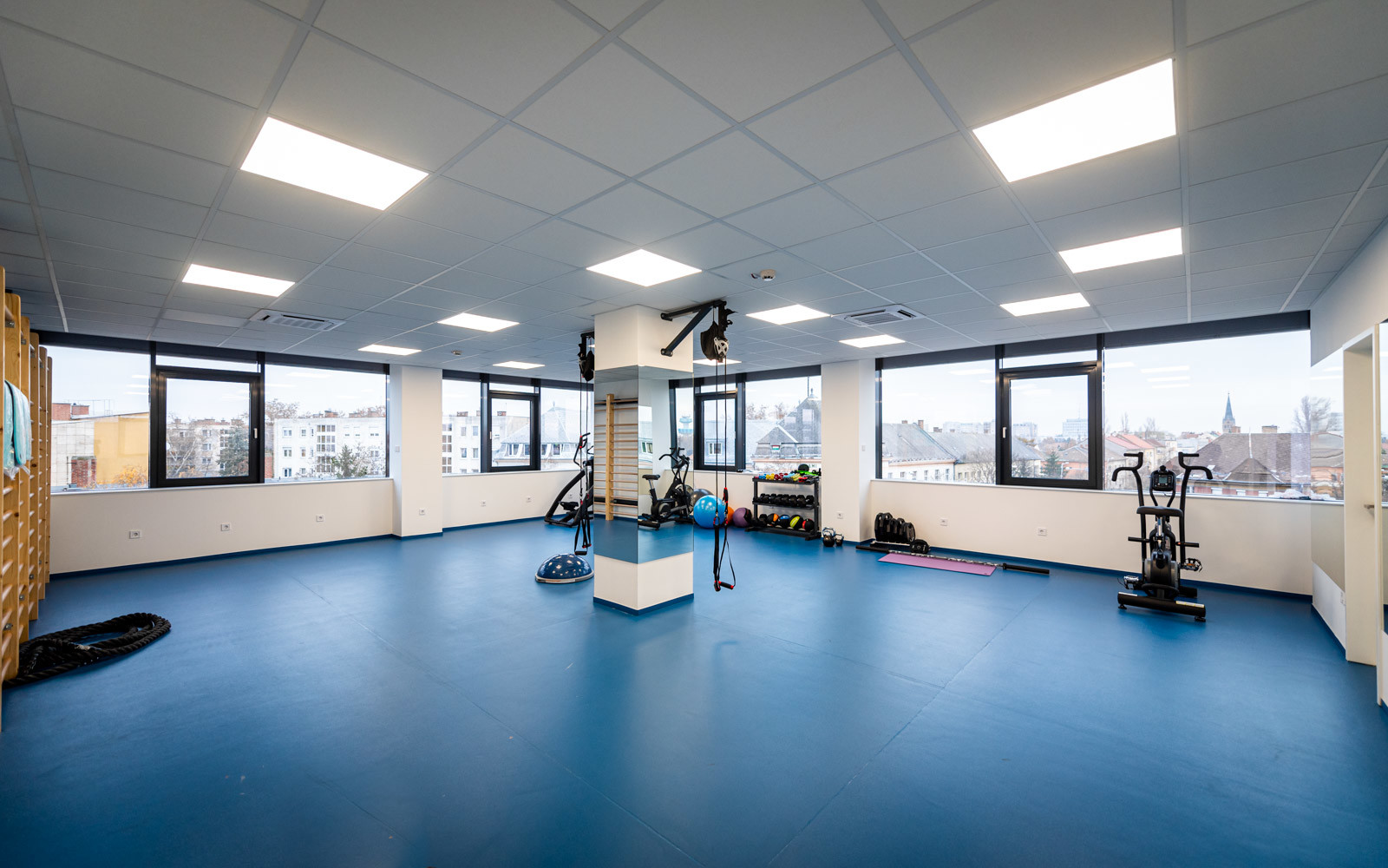 A munkaállomásokon kívül a 3. emeleten kialakítottak egy panorámás rendezvénytermet, illetve egy dolgozók számára létesített konditermet is.