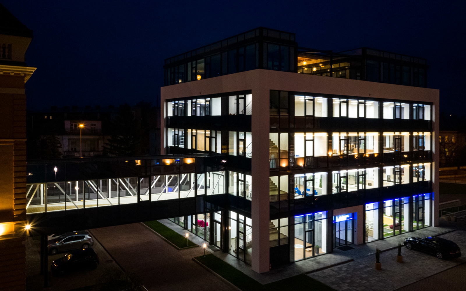Az új irodaépület összesen 5 szintet foglal magába, melyben különböző funkciójú irodák kaptak helyet.