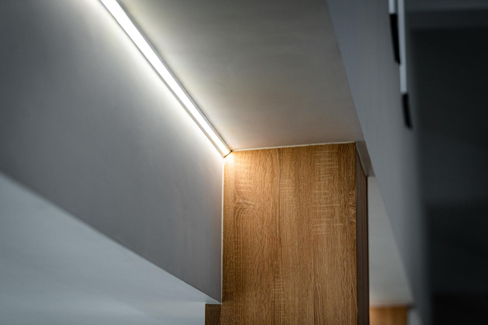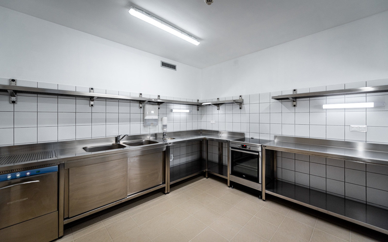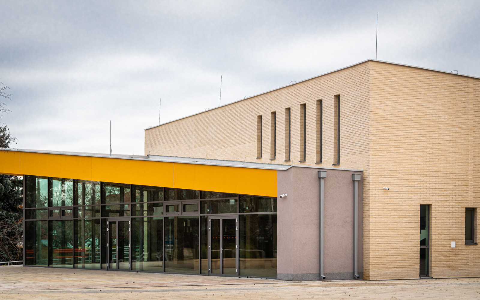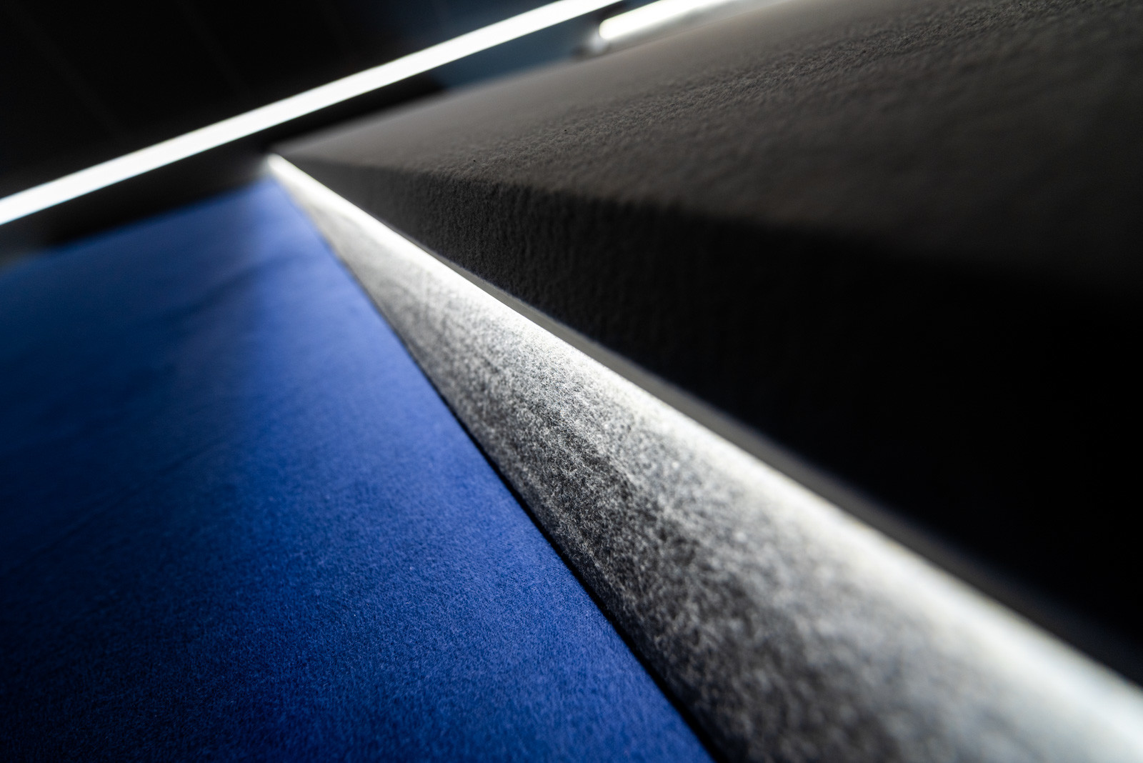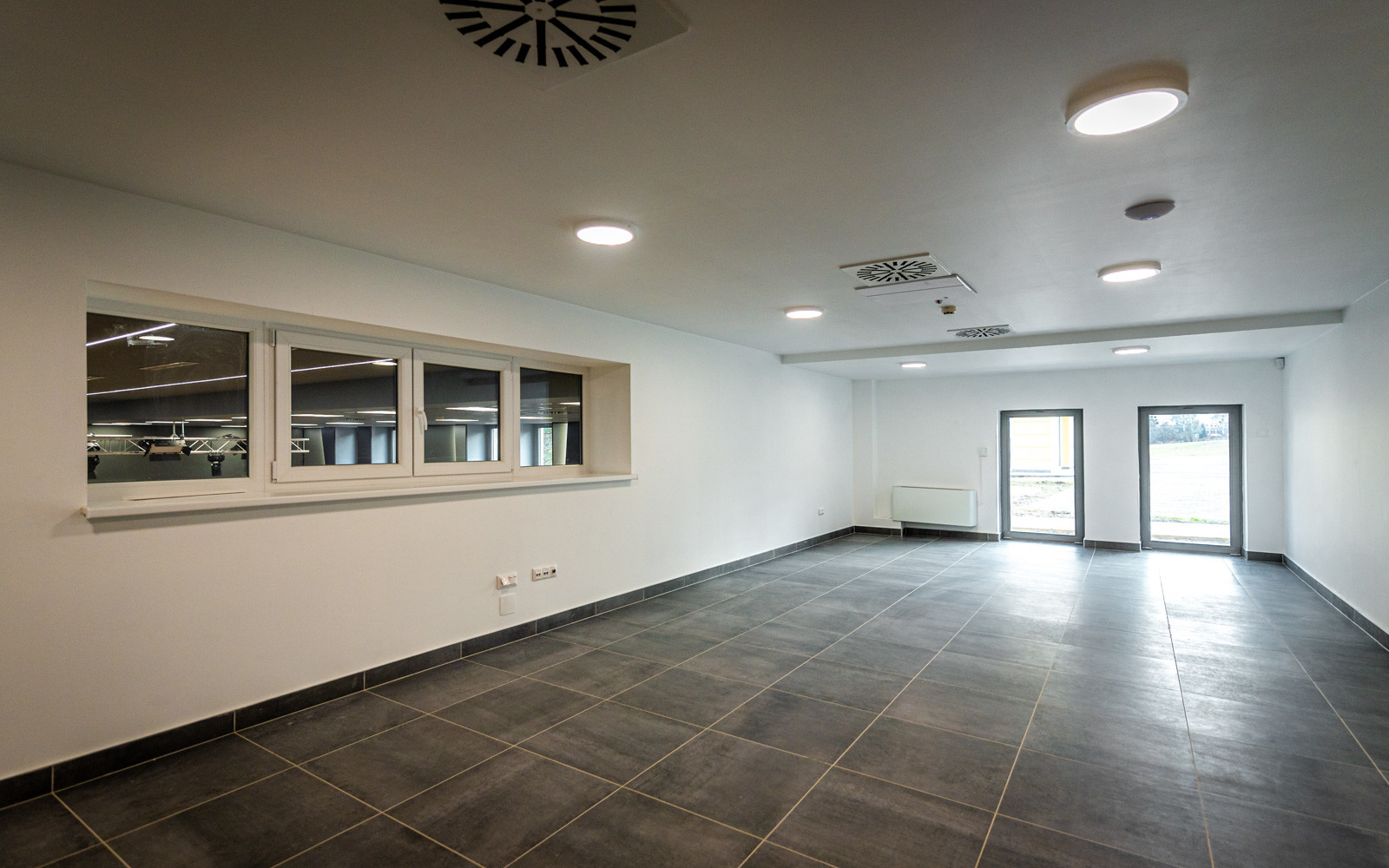 A szakember szerint a rendezvényhelyiség belső kialakítása mindeneképp említést érdemel. „Ez egy akusztikus oldalfalakkal határolt tér lett, ahol az akusztikus falat különböző dőlésszögű síkokkal bontottuk meg függőleges, díszítő LED világítással megbolondítva, kárpit borítással fedve a falakat.”