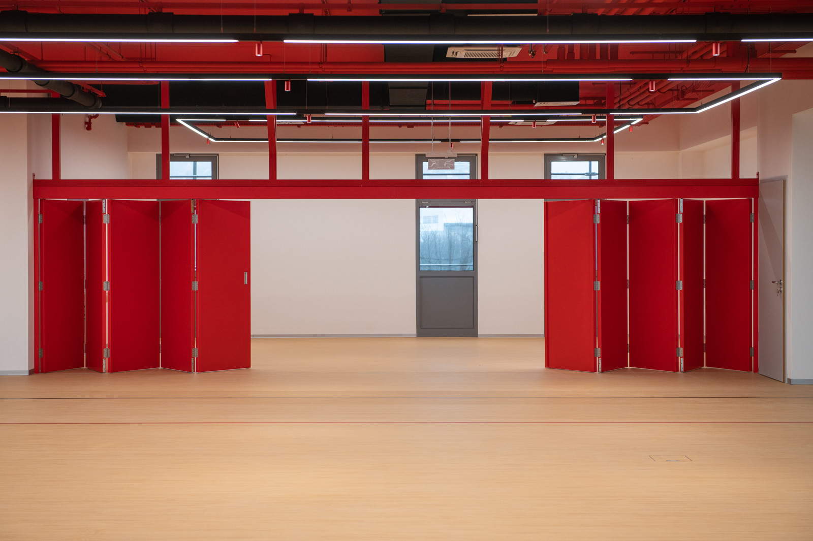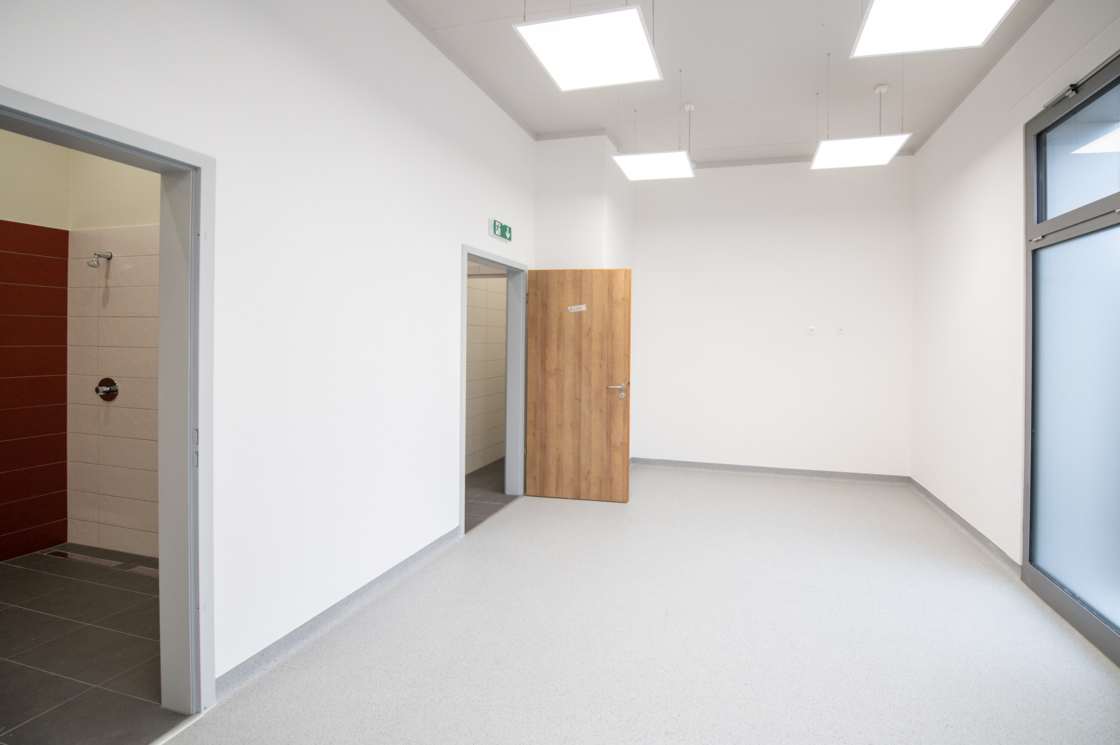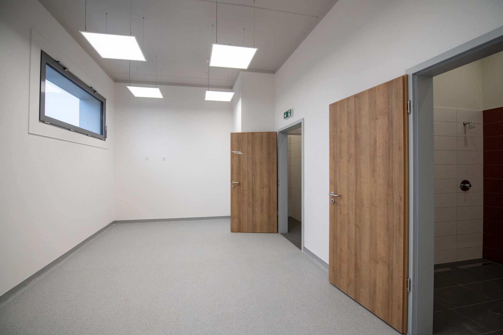 Dakó Attila az elkészült épület funkcióiról és azok elhelyezkedéséről osztott meg részleteket. „Az épület két fő egységre tagolódik, a fogadóépületre és az öltözőépületre. A fogadóépület - nevéből adódóan - elsősorban az ide érkező sportolókat, kísérőket, személyzetet fogadja, így a földszinten találhatóak az ezen funkció kiszolgálására szükséges helyiségek, mint például az előtér, a büfé és a klubterem. Ezek mindenki számára nyitott területek. Az épület többi részét viszont csak az itt dolgozók vagy az edzők látogathatják. A lépcsőházon keresztül közelíthető meg a fogadóépület első emeletén lévő rehabilitációs és bemelegítő terem, valamint a lépcsőháznak helyet adó nyaktag köti össze a fogadóépületet az öltözőépülettel. Utóbbi értelemszerűen elsősorban a vizesblokkokkal ellátott öltözőknek ad helyet, de ugyanitt található minden egyéb, a sportolók és az edzők munkájához köthető helyiség, úgy, mint gyógytorna, orvosi- és masszázsszoba, teakonyha és irodák.”