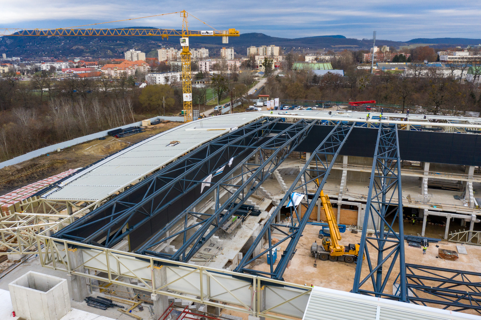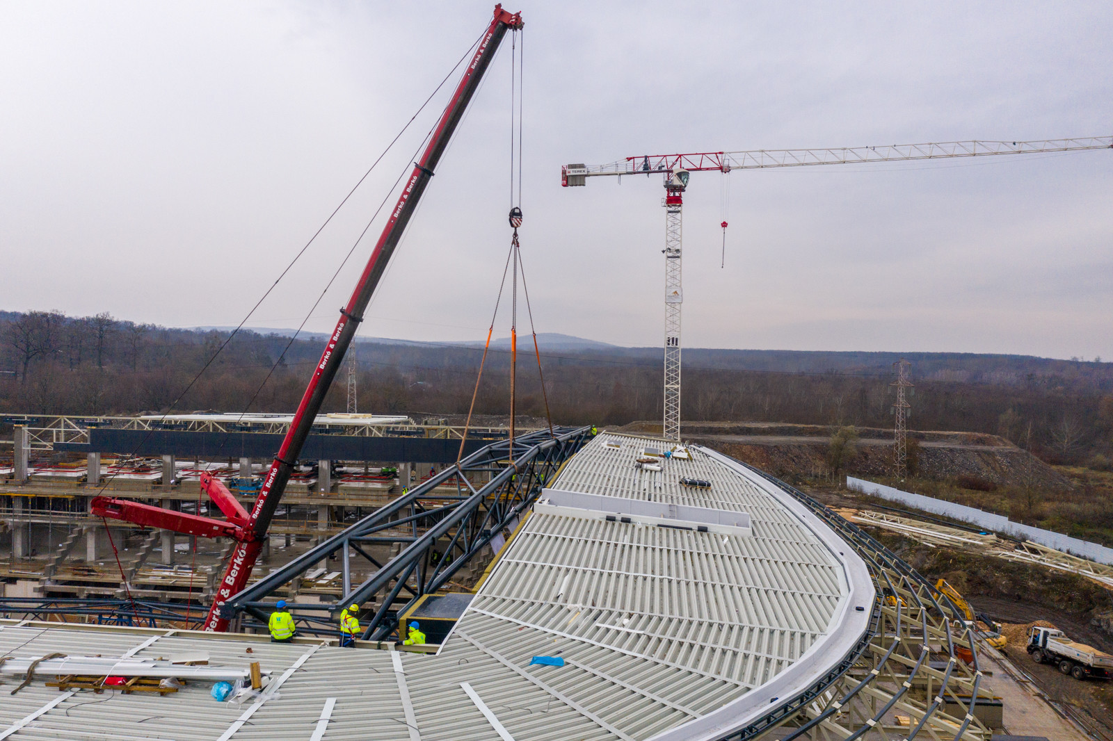 – ismertette a szakember. A főtartó szerkezettel párhuzamosan pedig készülnek a kiszolgáló létesítmények lefedésének acélszerkezetei is.