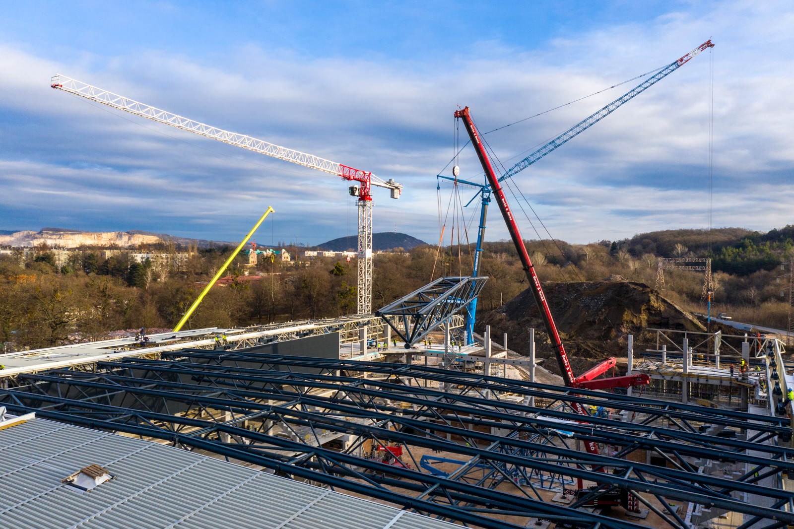 "Nagy fesztávú és nagy elemsúlyú elemeket építünk be a szerkezet méreteihez képest szűk munkaterületen, ezért darukombinációkat kell alkalmazni az acél megfelelő helyi érkeztetéséhez és az acélszerkezet végleges helyére emeléséhez”