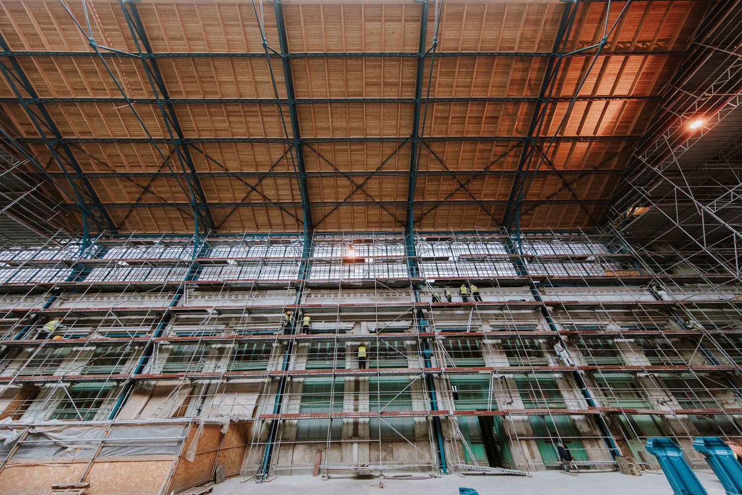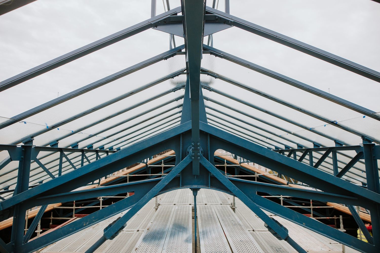 Lapunk információi szerint a szakemberek már a teljes térállványt átforgatták, továbbá folyamatosan készül az új tetőszerkezet, melynek különböző fázisai, így: