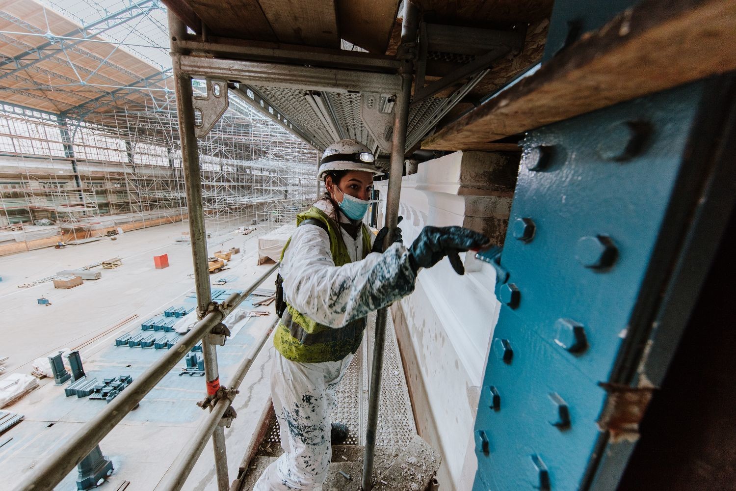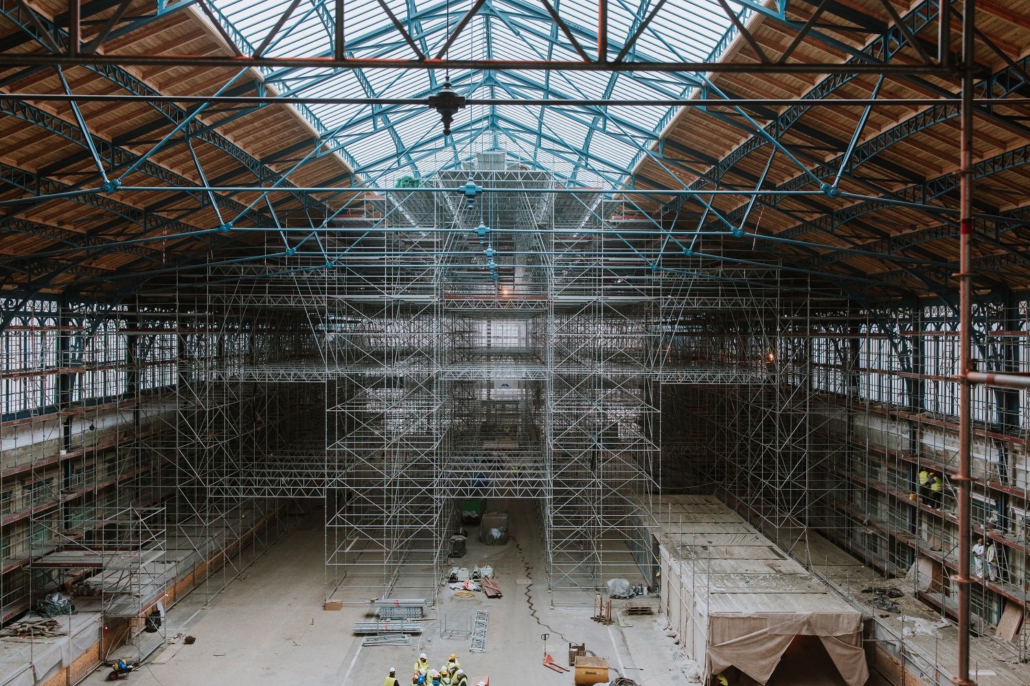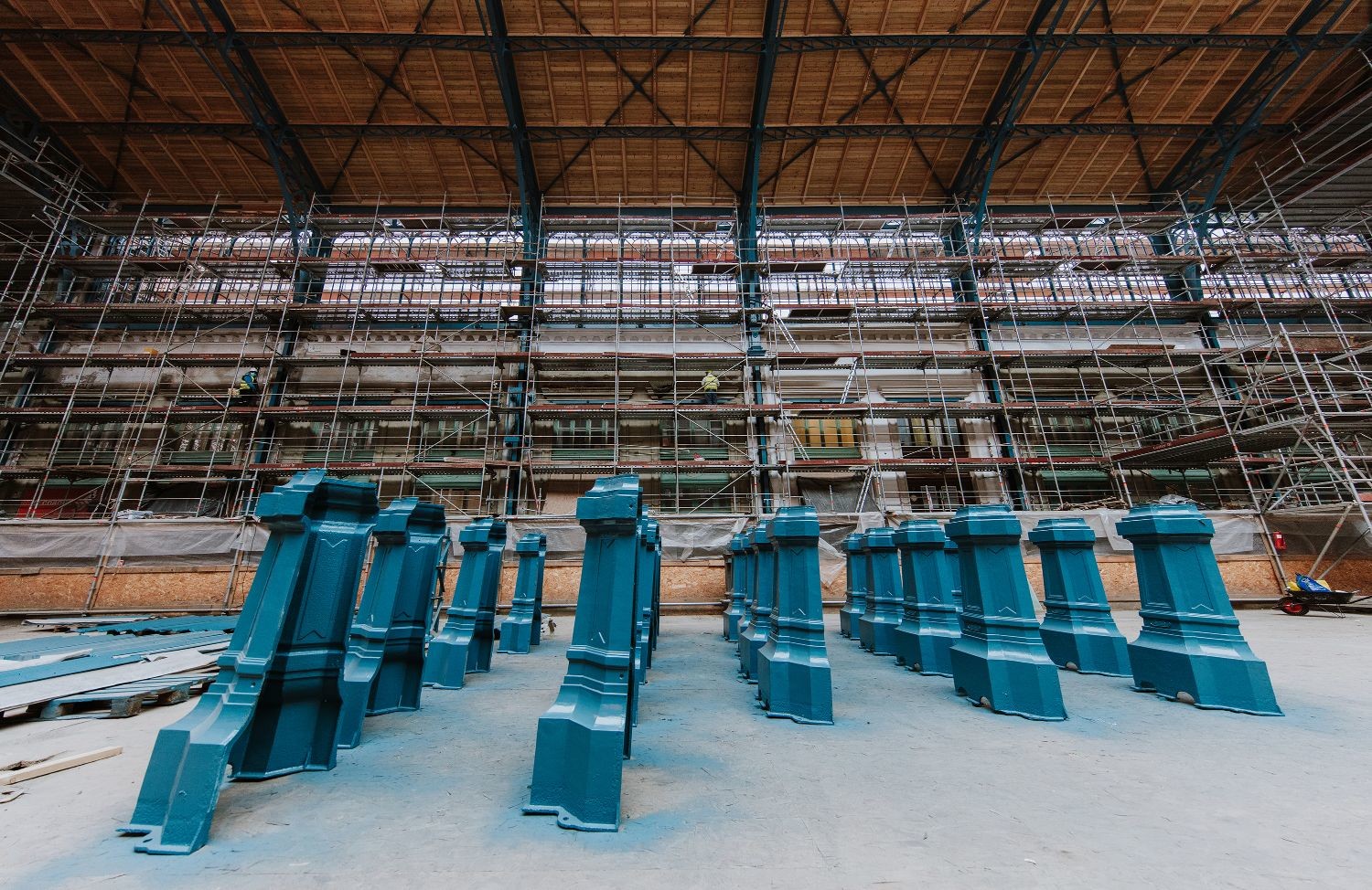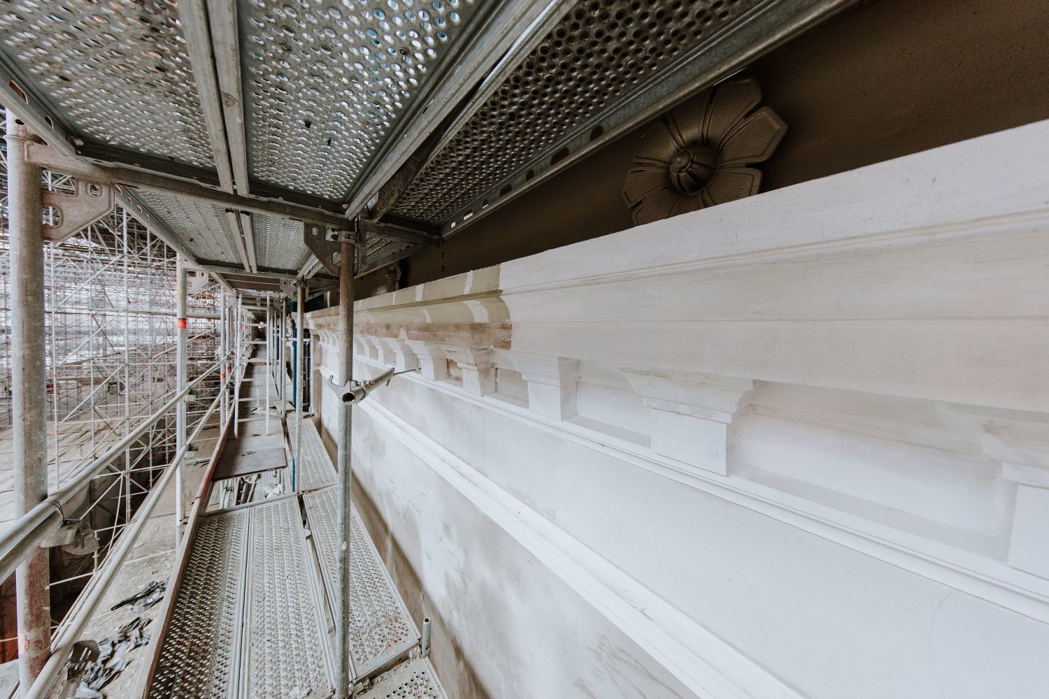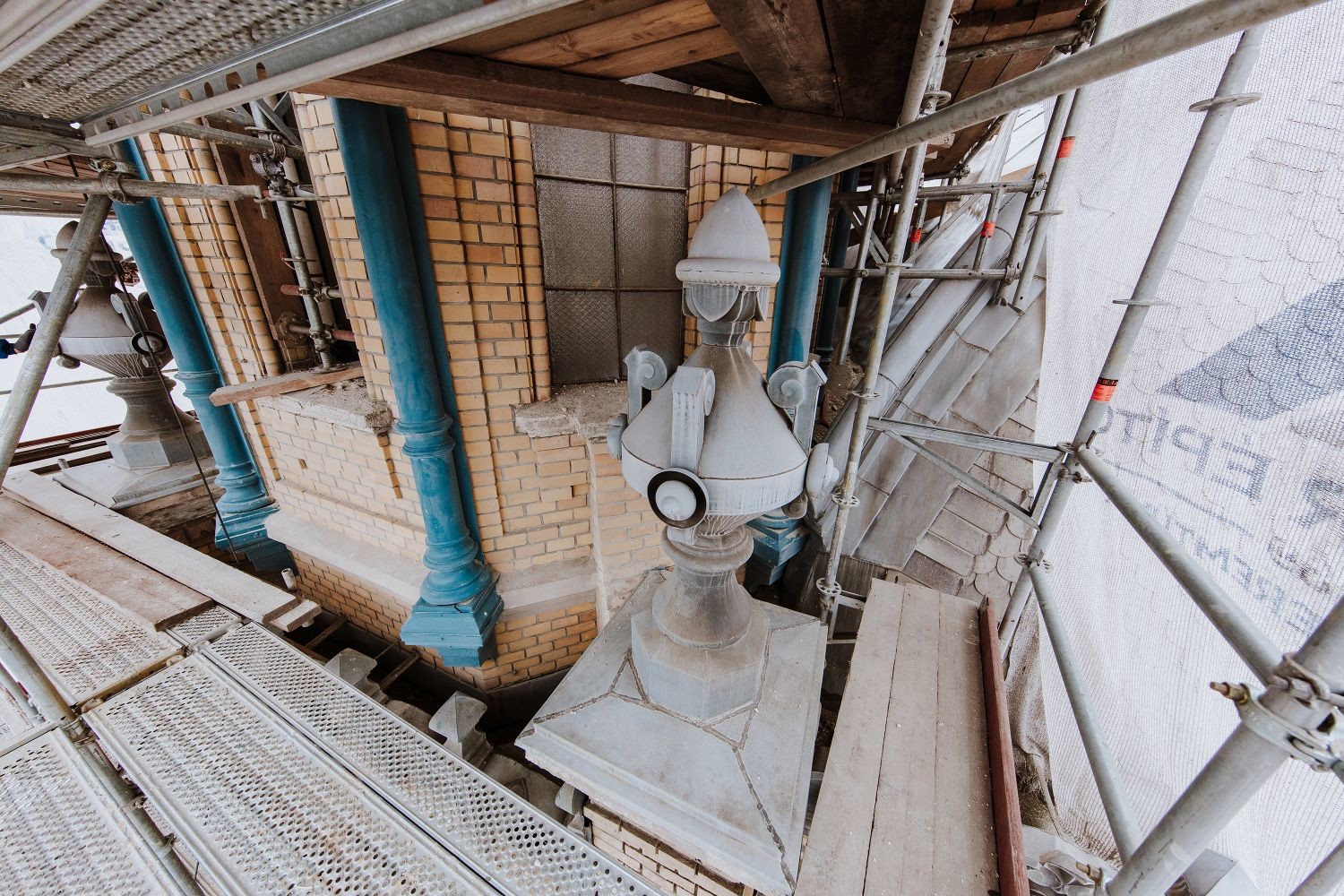 Befejezés előtt áll továbbá az új üvegek tartószerkezetének elhelyezése, melyet az új üvegtáblák beépítése követ majd. Mindemellett készül az acél tartószerkezet és a díszítőelemek festése, a belső főpárkány felújítása, valamint díszítőelemek elhelyezése is. A díszműbádogos-elemek és az öntvénydíszek pedig műhelymunka keretében készülnek