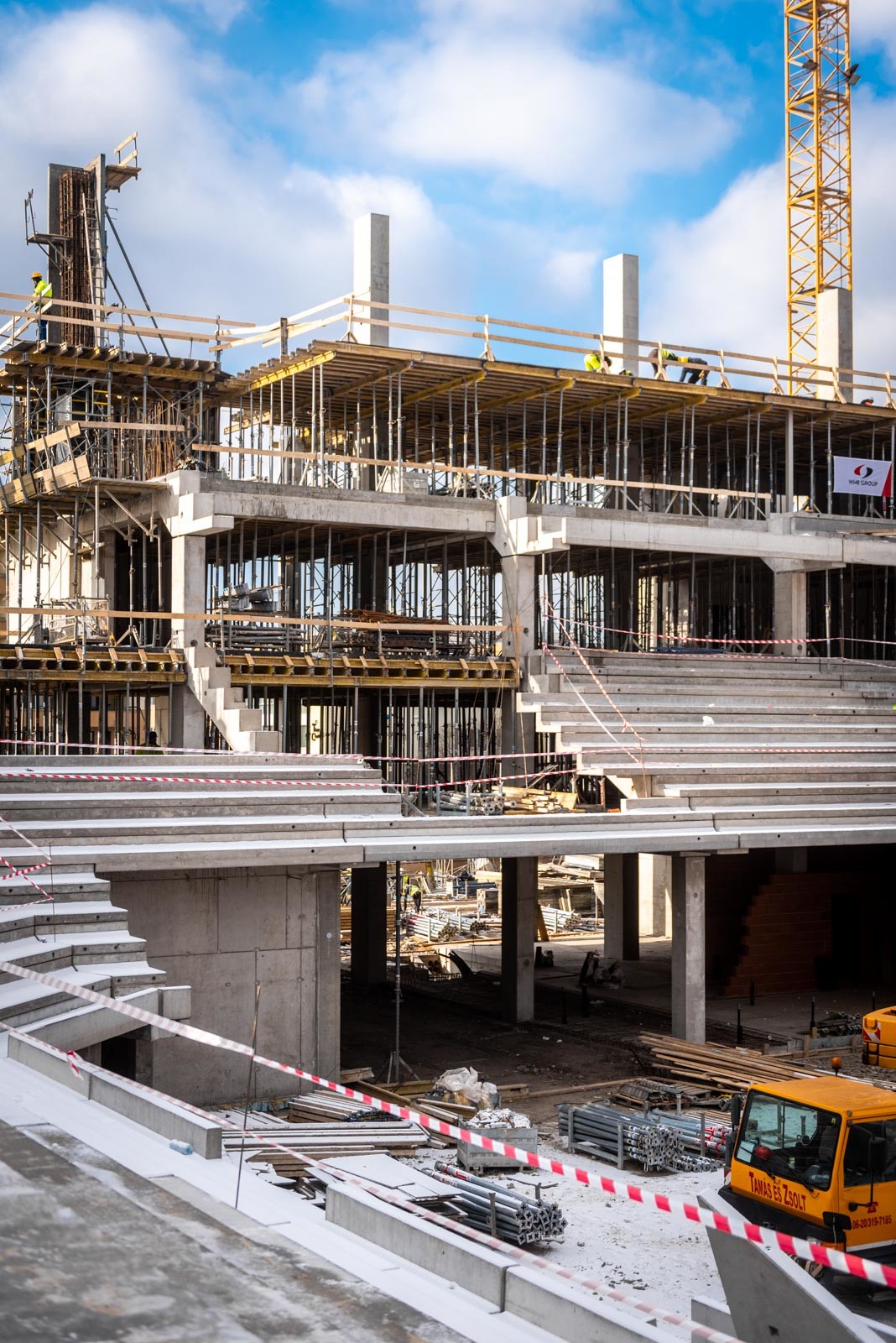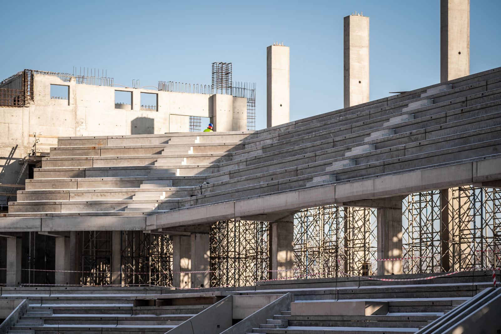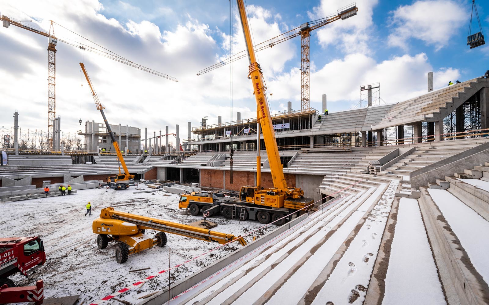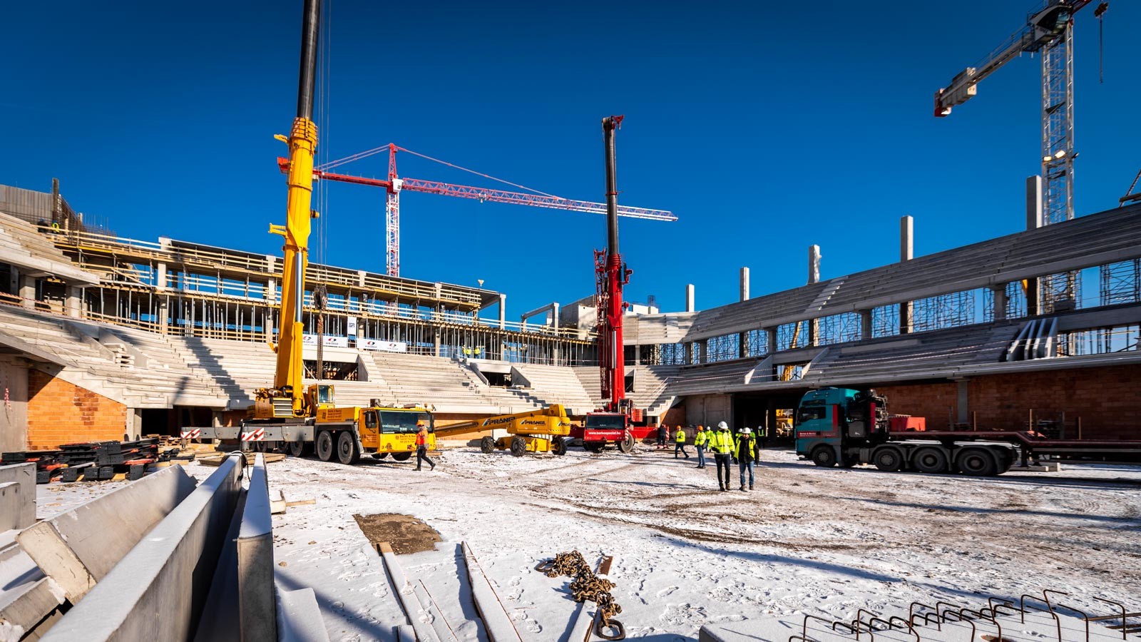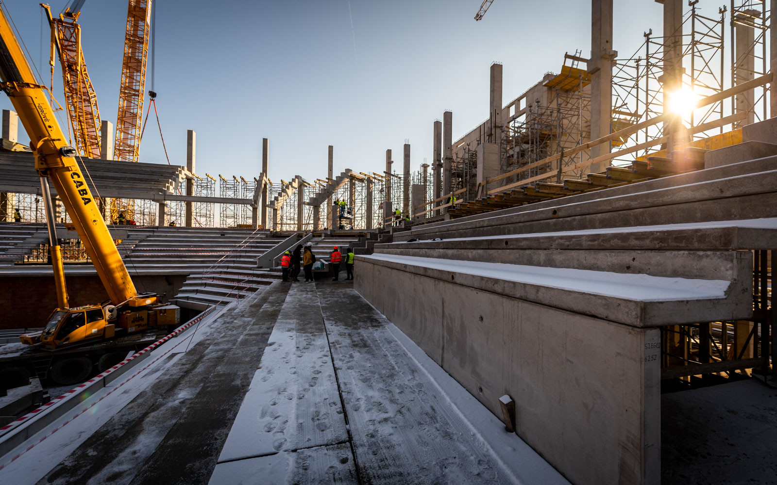 Január 18-án hétfőn különleges munkafázishoz érkezett a Szegedi Multifunkcionális Sportcsarnok kivitelezési munkája. A kivitelezést végző WEST HUNGÁRIA BAU Kft. szakemberei 22 méter magasságban beemelték az első főtartót, amely a 29 méter magas kézilabdacsarnok tetejét fogja tartani. A maradék 9 főtartót pedig ezt követően folyamatosan emelik be a helyére.