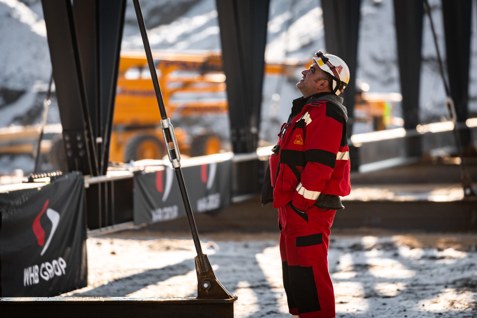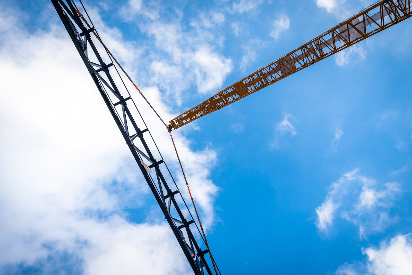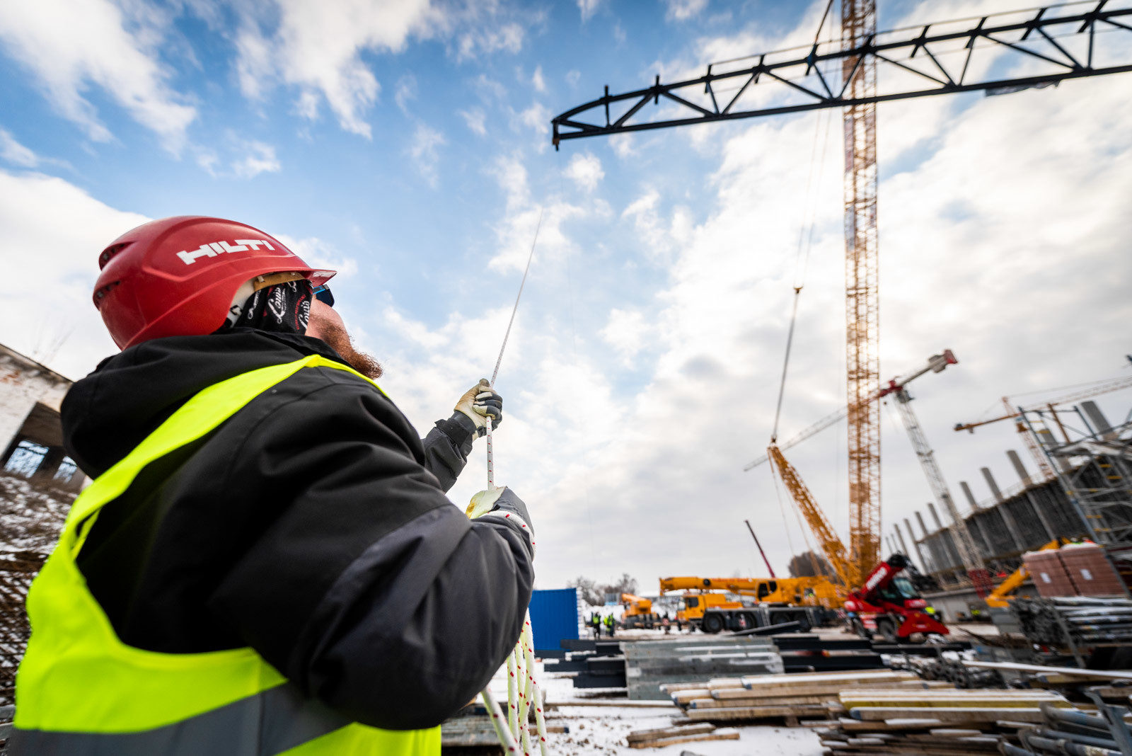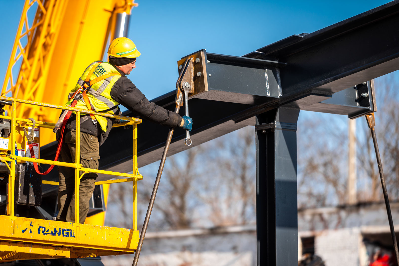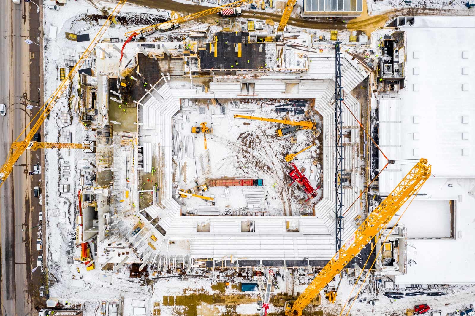 Az építkezés egyik leglátványosabb része zajlik, rendkívül összehangolt csapatmunkával.