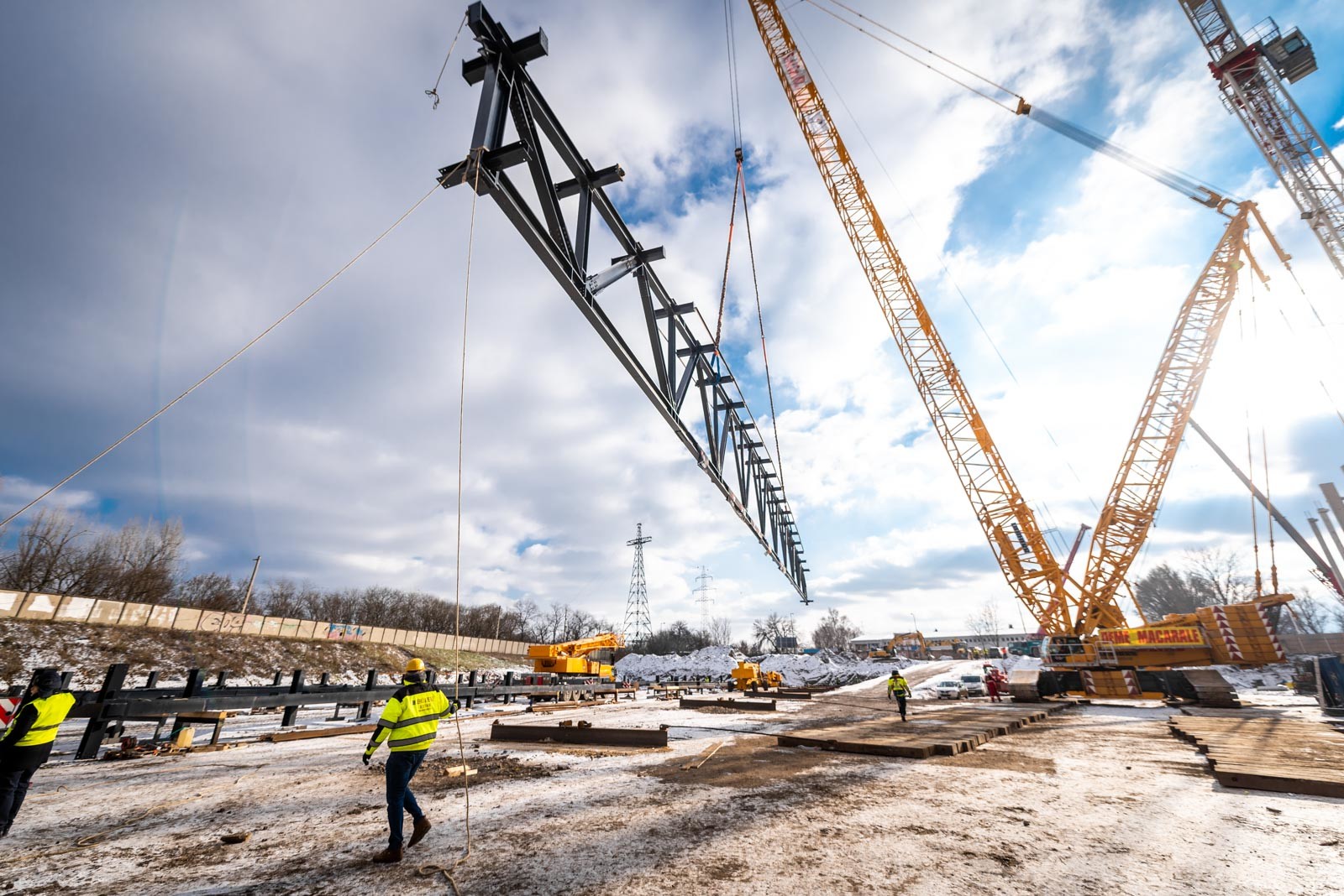 A hazai viszonylatban is egyedülálló, mintegy 78 m hosszú és 77 tonna súlyú elem beemelését nagy érdeklődés övezte: