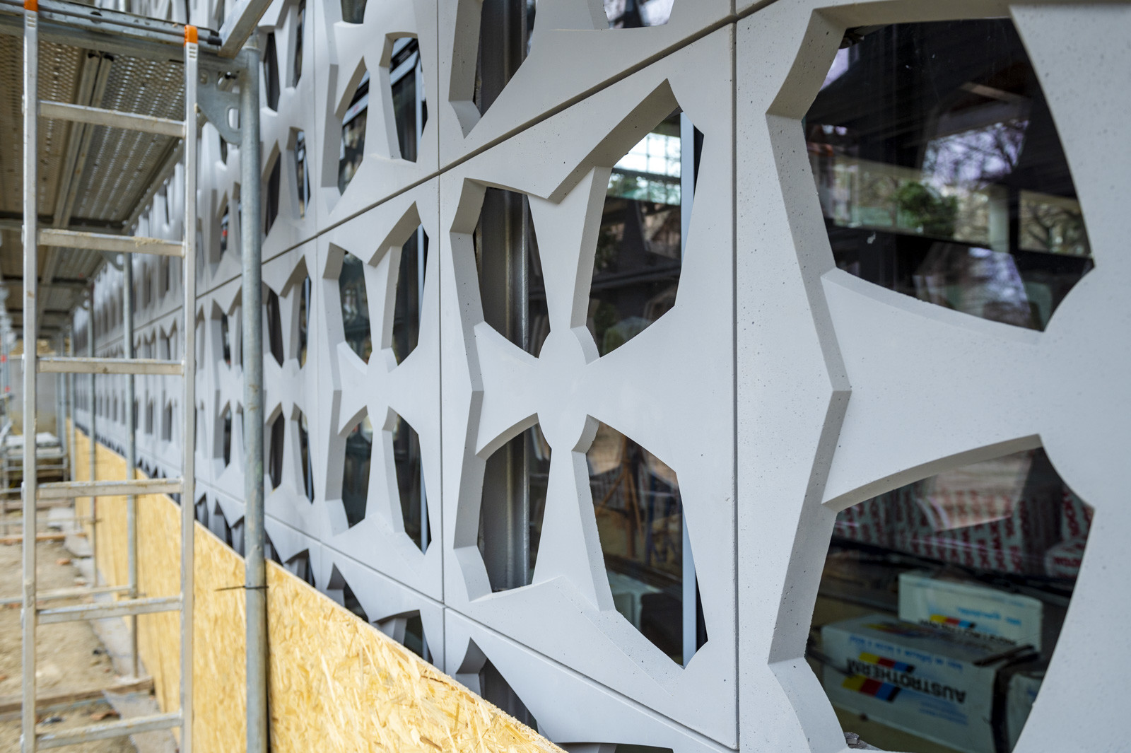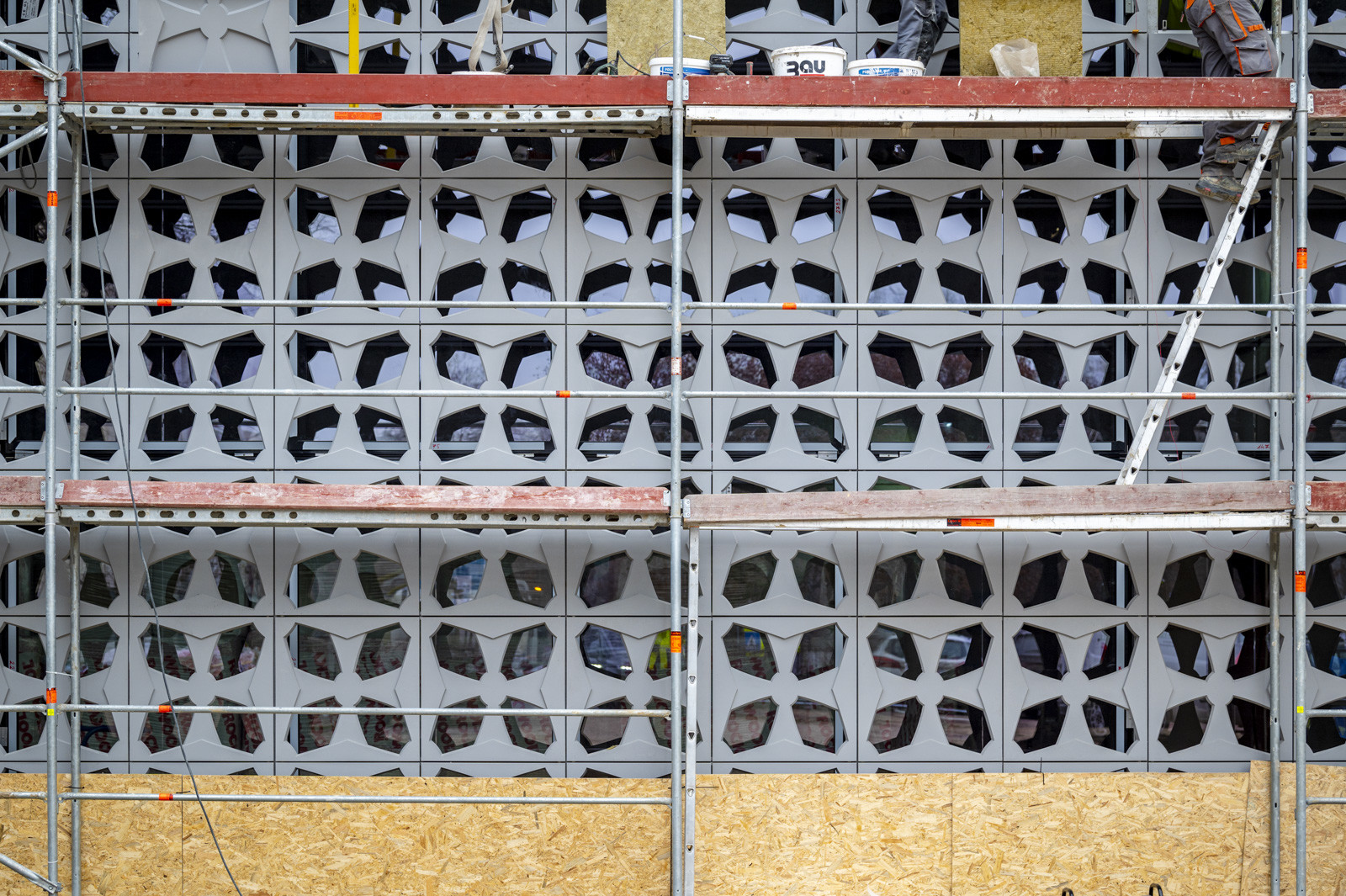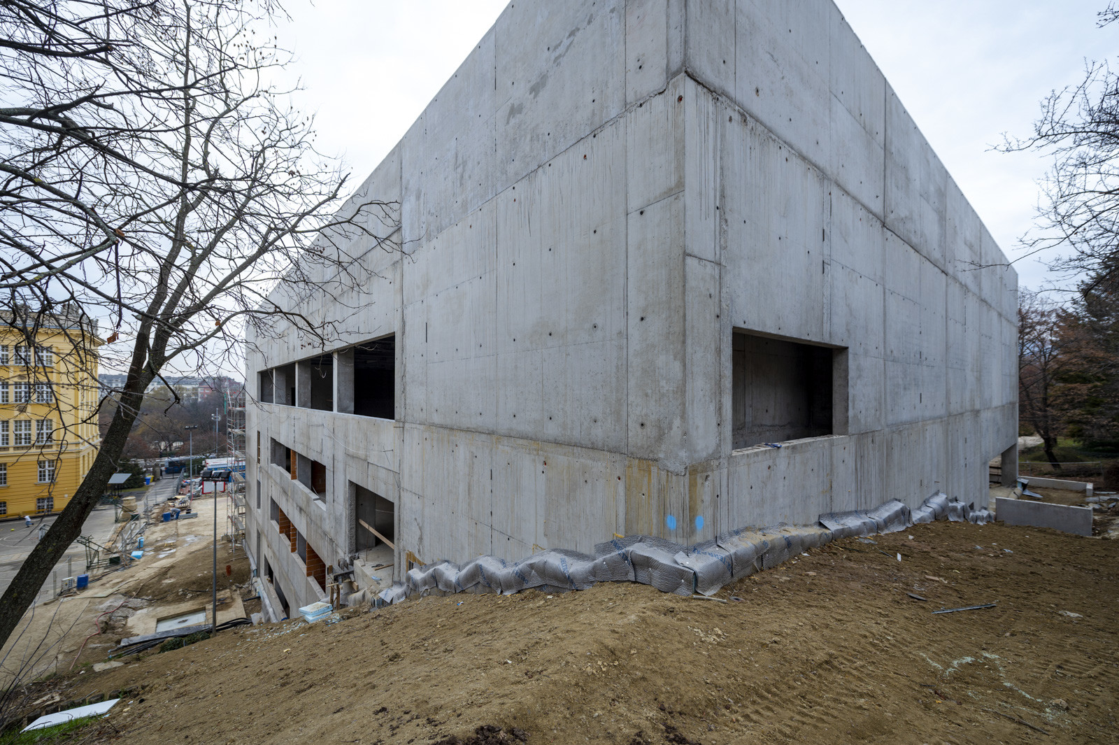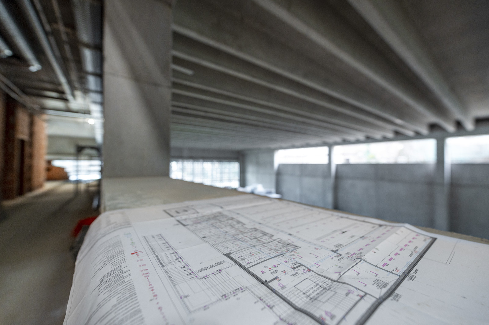 Jelenleg többek között a hőszigetelési munkák zajlanak, szerelik a homlokzati alumínium nyílászárókat és a finombeton homlokzat burkolatát, emellett a belső gépészeti és elektromos alapszereléseket is elvégzik. Rövidesen kezdődhetnek a tetőszigetelési munkák, az aljzatbetonozások, illetve a hő- és hangszigetelések fektetése.