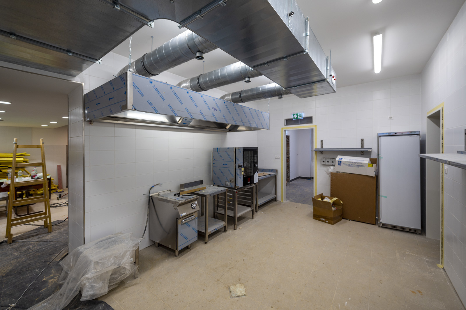 Az első emeleten a régi orvosi szobák helyén új tanári szobákat alakítottak ki. Az étterem egyedi mintás terrazzó burkolatot kapott. Az ebédlő álmennyezetének átalakítása során megtartják a régi kazettás megjelenést és a stukkós díszítését. A folyosó mozaik lap burkolatait és műkő lábazatait pótolják. Rövidesen megkezdik a könyvtár bútorozását és falburkolatainak kialakítását, illetve az ebédlő terrazzó burkolatainak csiszolását.