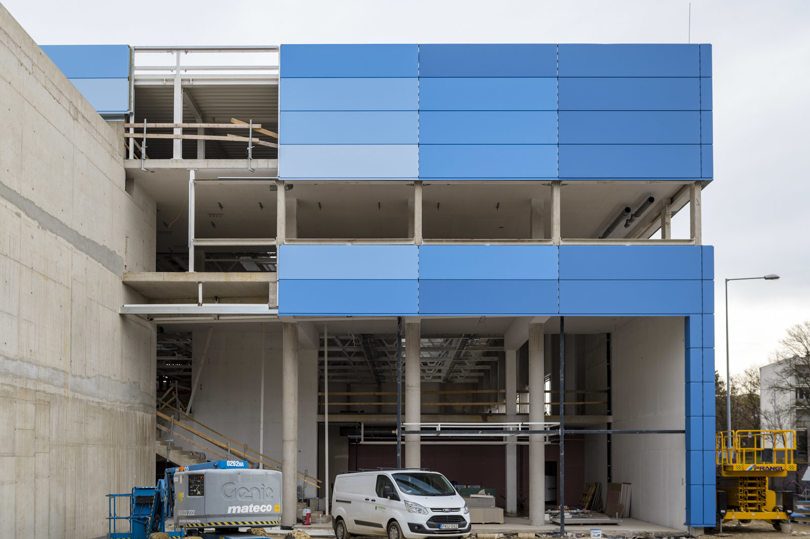 Az eseményen elhangzott, hogy megkezdődött a homlokzati panelek elhelyezése, így az épület külső megjelenése már körvonalazódik.