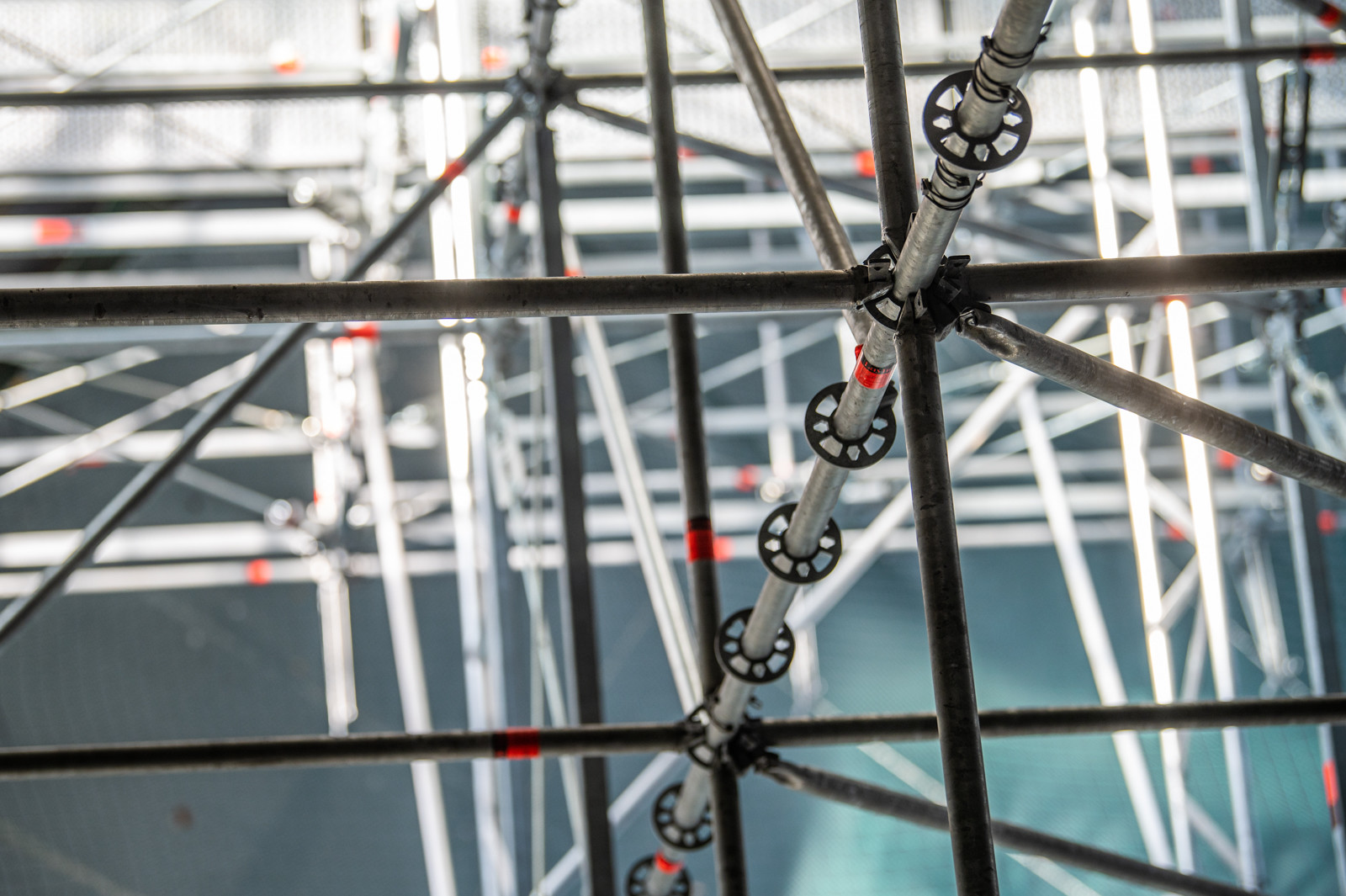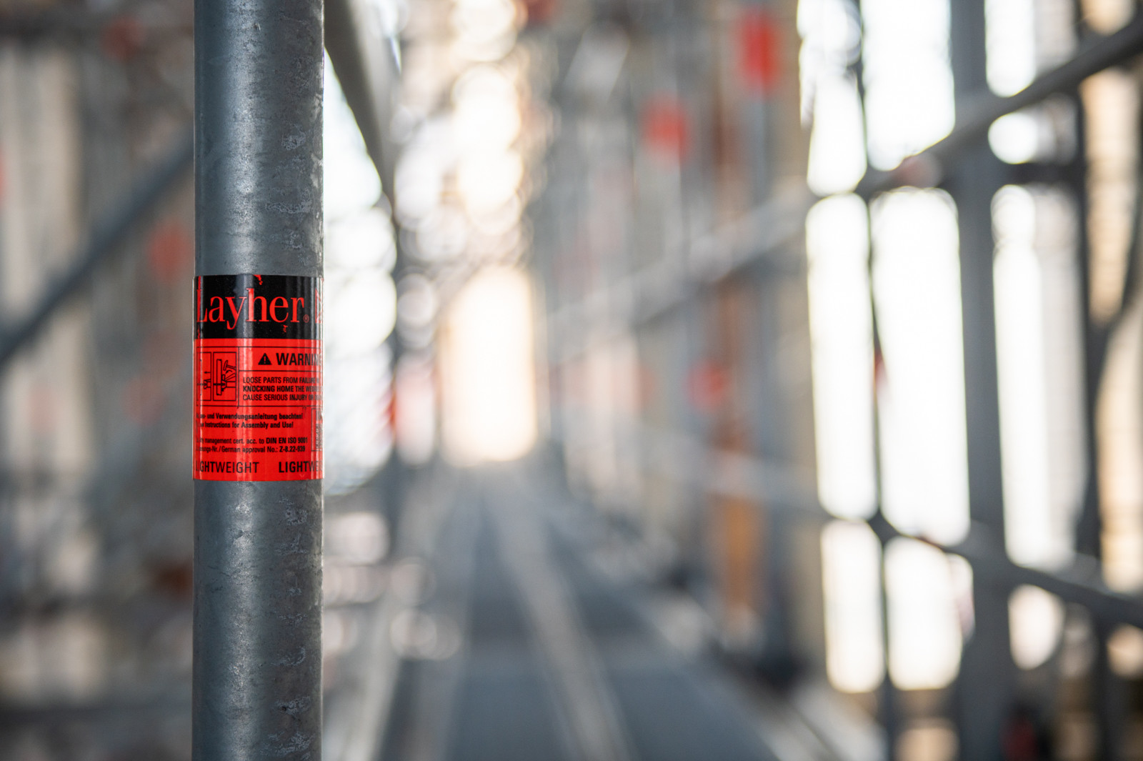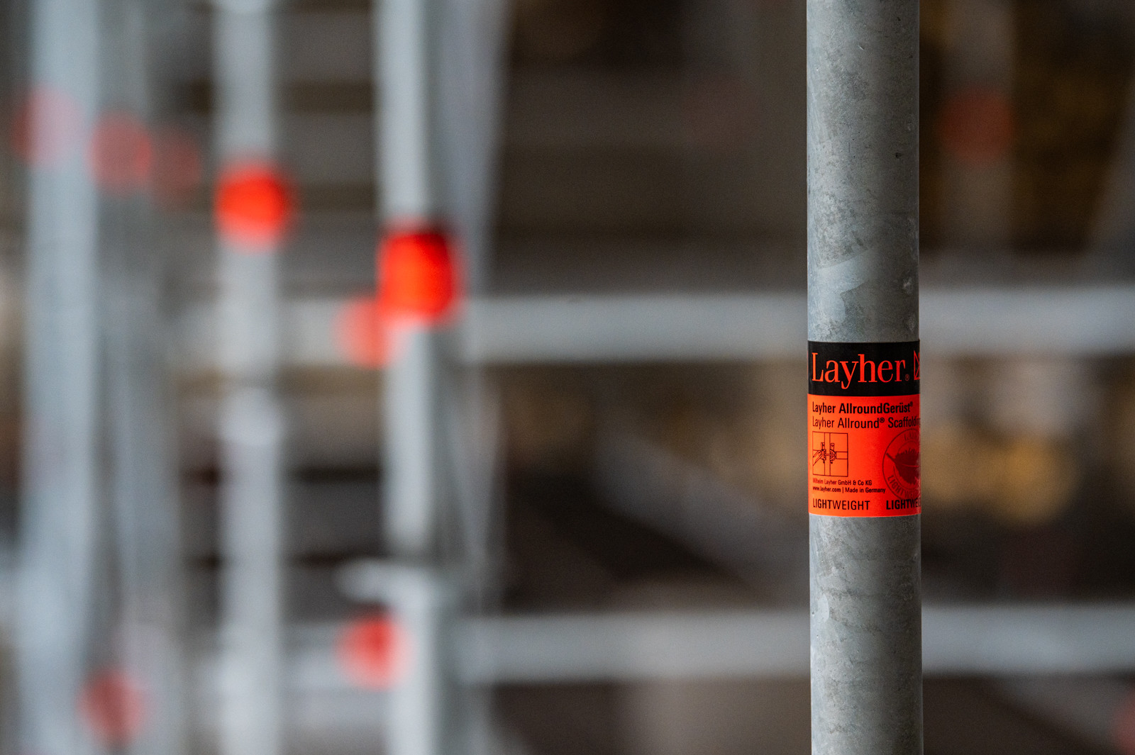 Az egyedülálló szerkezet koncepciójának megtervezése mellett kihívást jelentett annak megvalósítása a megfelelő rögzítésekkel - hiszen a szerkezet integrálva része marad a végső állványszerkezetnek -, illetve az is, hogy hogyan kerül az a végső helyére. A Layher szakemberei a kivitelezőkkel és állványozókkal karöltve