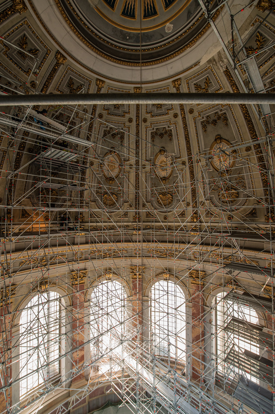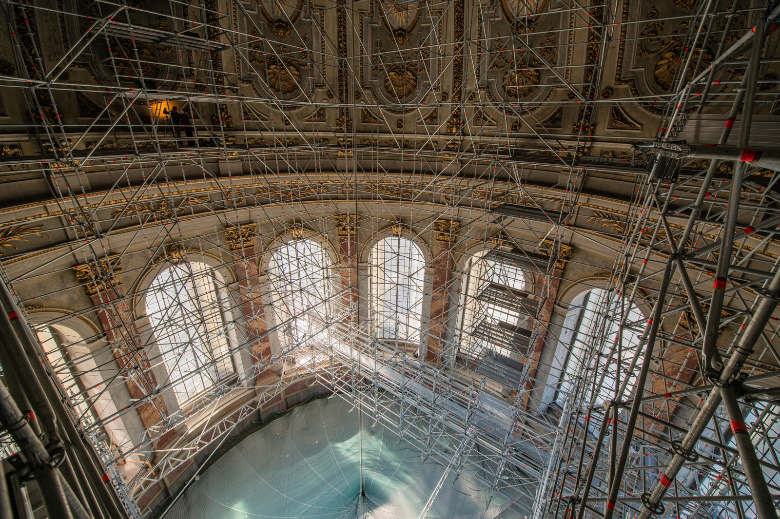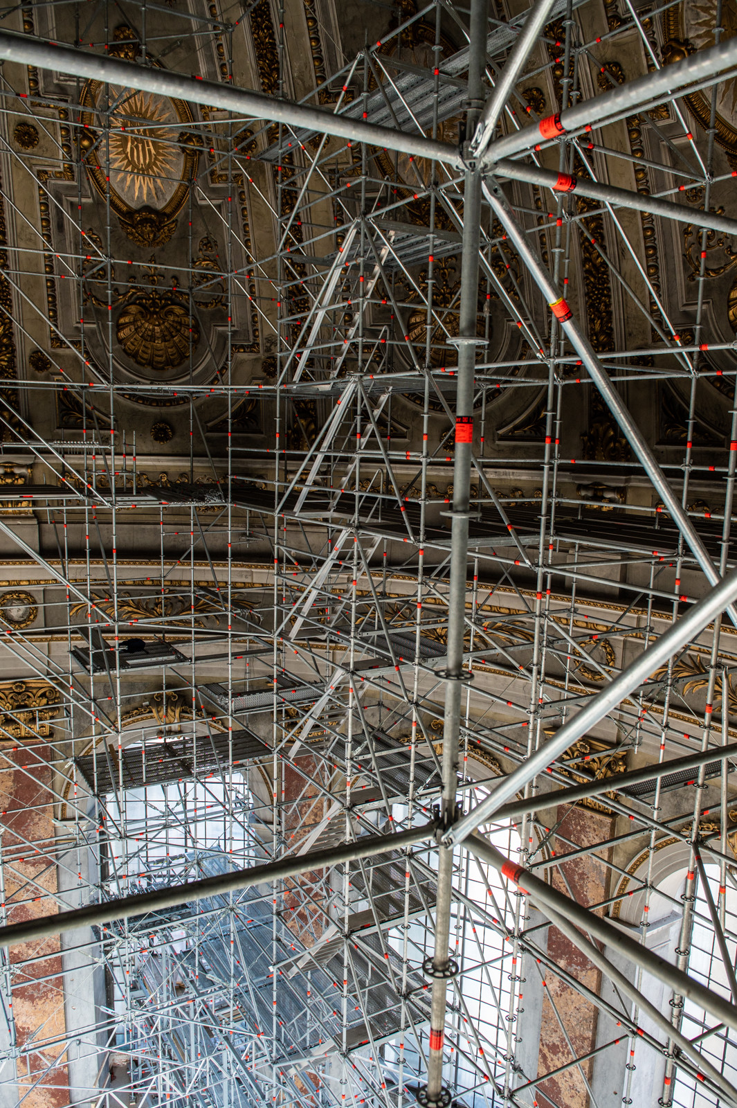 Szem előtt tartották azt az igényt, miszerint a kupola alatti teret megtartsák az egyházi életnek. Így olyan megoldást kellett találni, ahol az állvány nem földről indul. Mivel templomok esetén ez gyakori feladat, a Layher erre korábban már számtalan, statikailag is helytálló megoldást dolgozott ki.