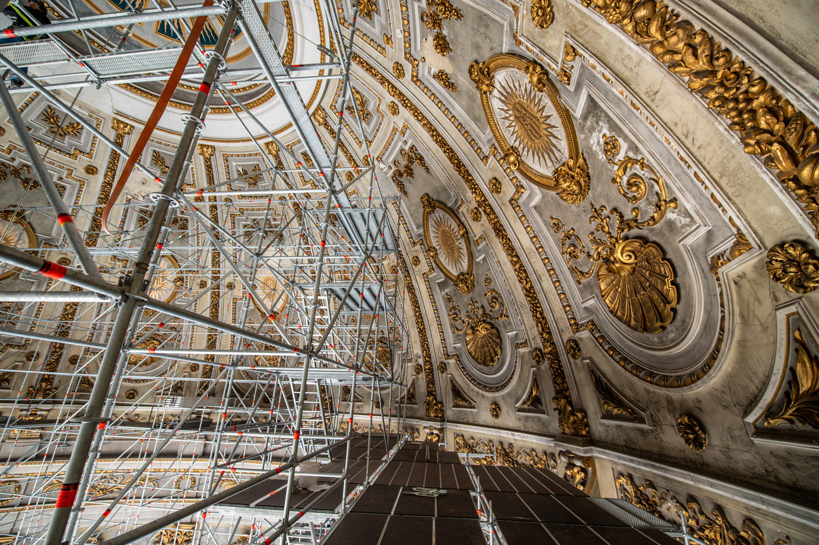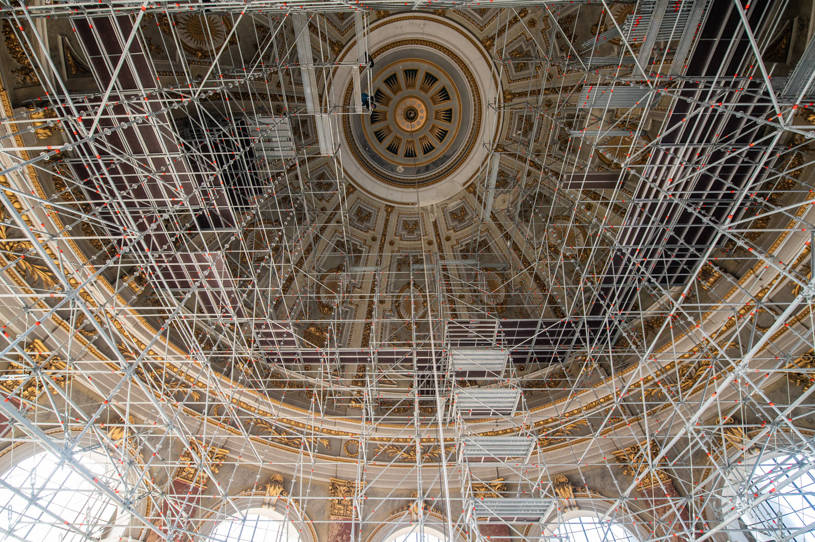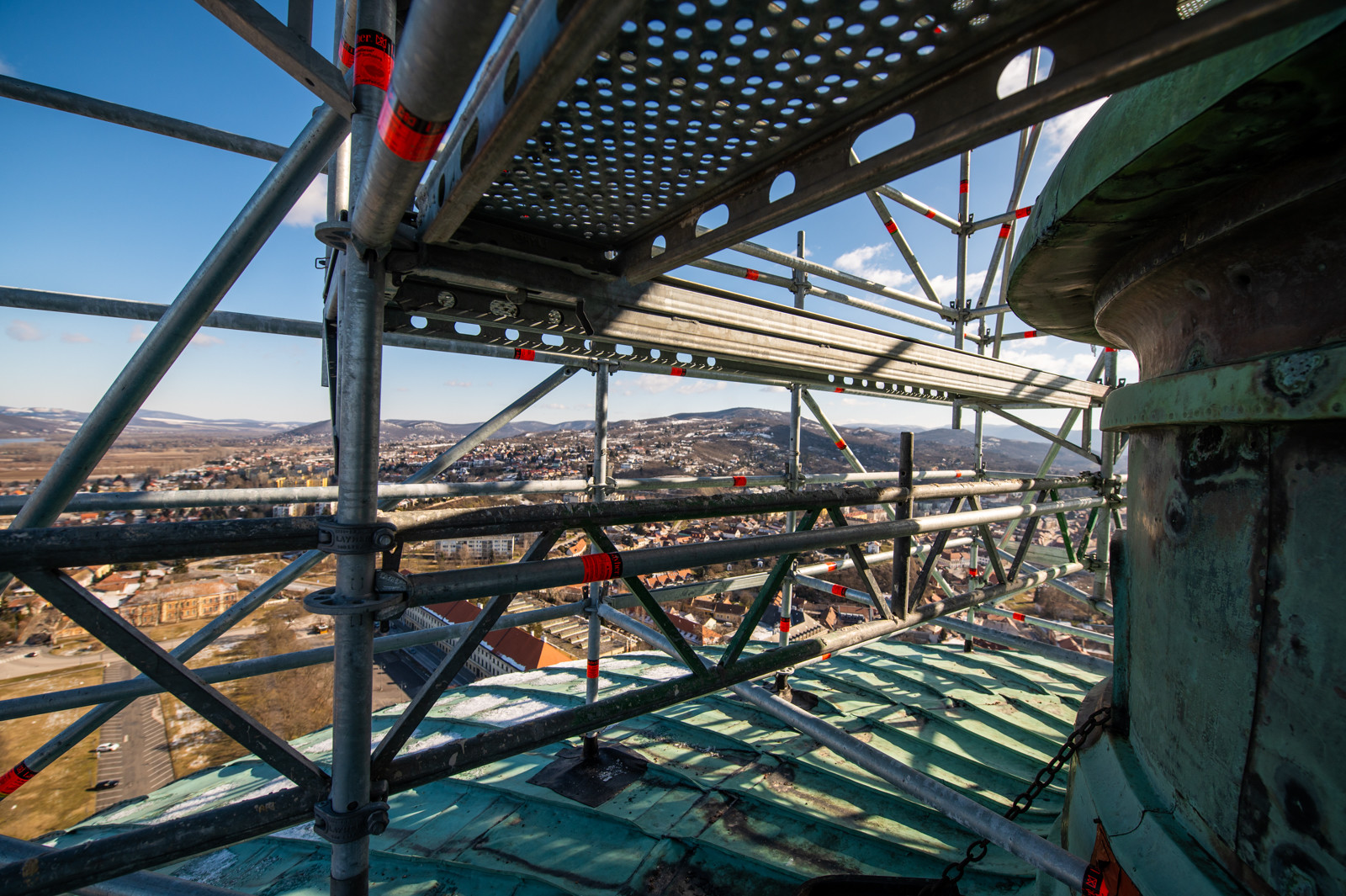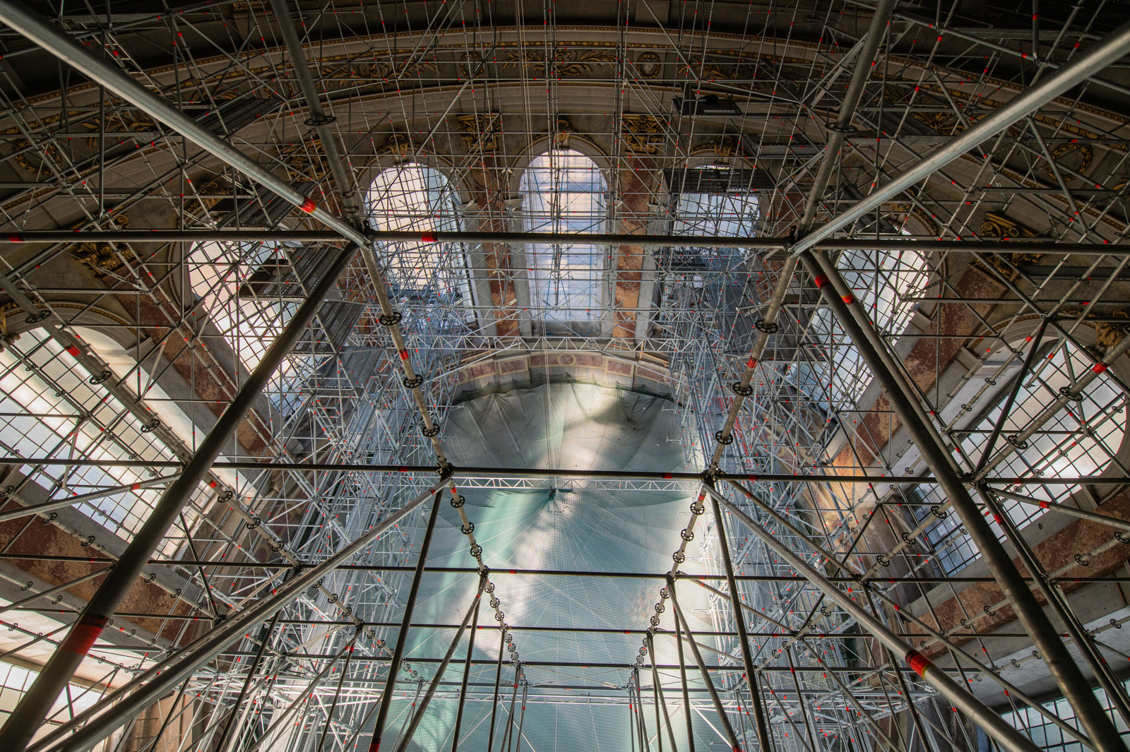 A főszékesegyház a munkák alatt látogatható marad, egyedül a tavaly ősszel kezdődött kupola külső-belső felújításához szükséges belső állvány felállításának idejére korlátozzák a templomi tér használatát. A világon is egyedülálló állványozási megoldást felvonultató Layher két műszaki szakembere, Pruzsinszki Gusztáv állványtervező építőmérnök és Tóth Patrik műszaki vezető tájékoztatta lapunkat a munkálatok részleteiről.