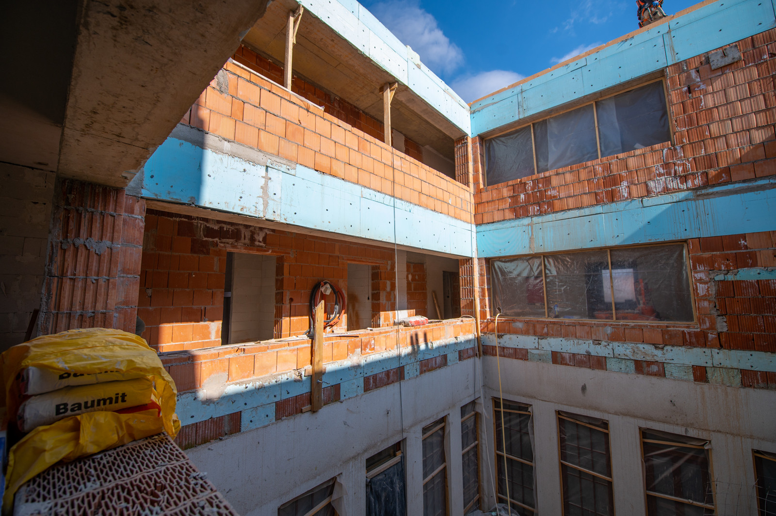 A kivitelező részéről Nagy Kálmán, létesítményfelelős arról tájékoztatta lapunkat, hogy a munkák 2020 szeptember végén indultak a bontási folyamatokkal. Ez követően a rendháznál – mely eredetileg is egy szinteltolásos épület - ez épület egyik felére egy, a másik felére két teljes értékű szint kerül ráépítésre az eddigi egy szintes tetőtérbeépítés helyett. Itt már lezajlott a szerkezetépítés, jelenleg a gépész és elektromos alapszerelés, valamint az építőmesteri, szakipari és ácsmunkák vannak folyamatban. Ennél az épületnél az alaprajz is nagy mértékben változik, valamint új elektromos és gépészeti rendszereket kap az épület.