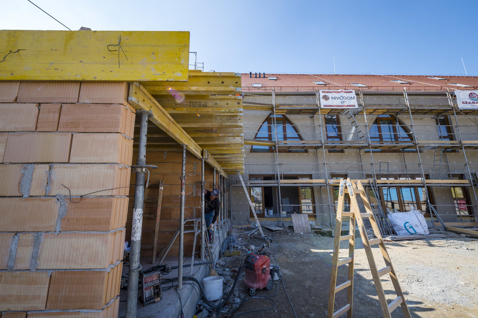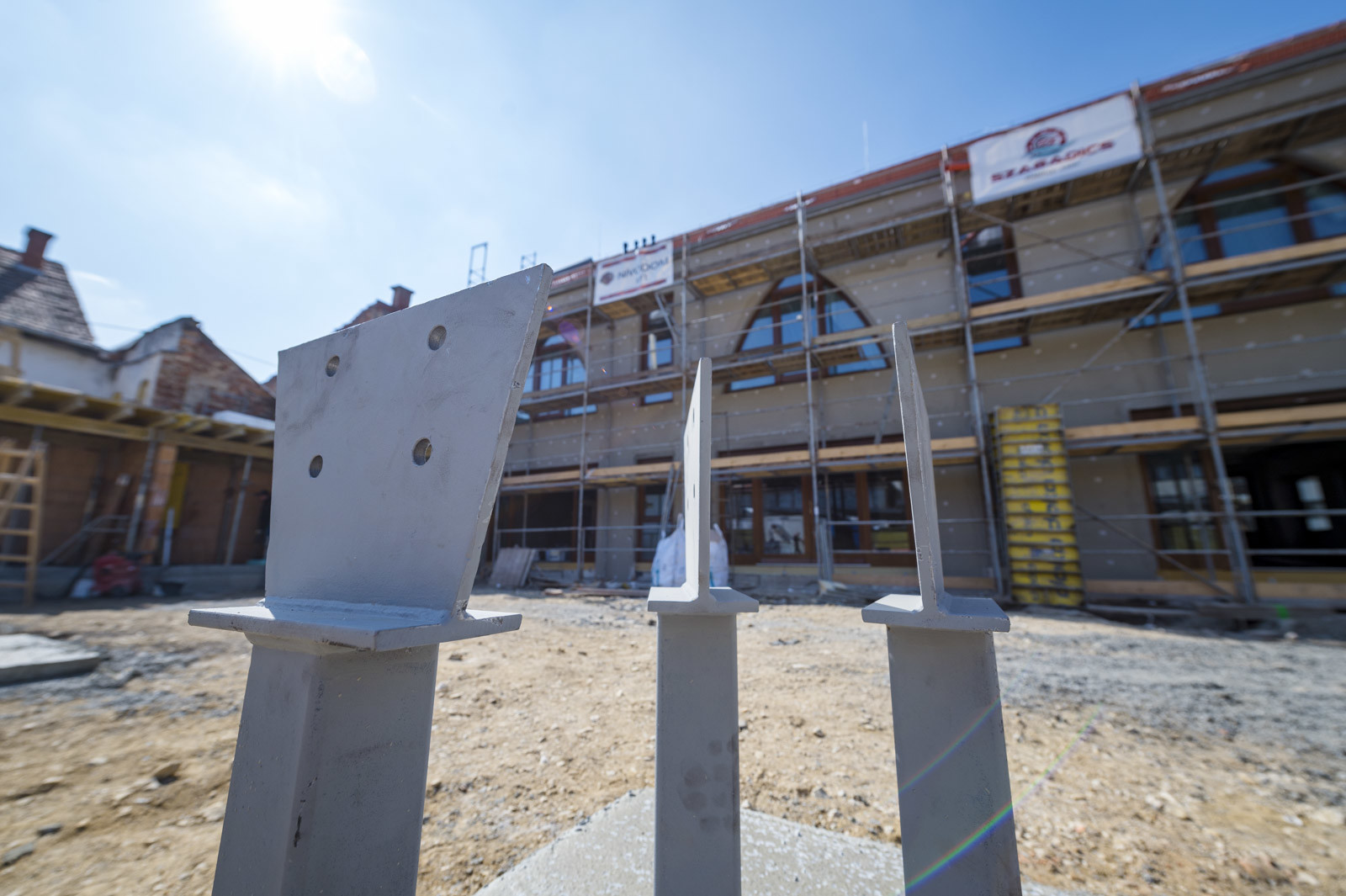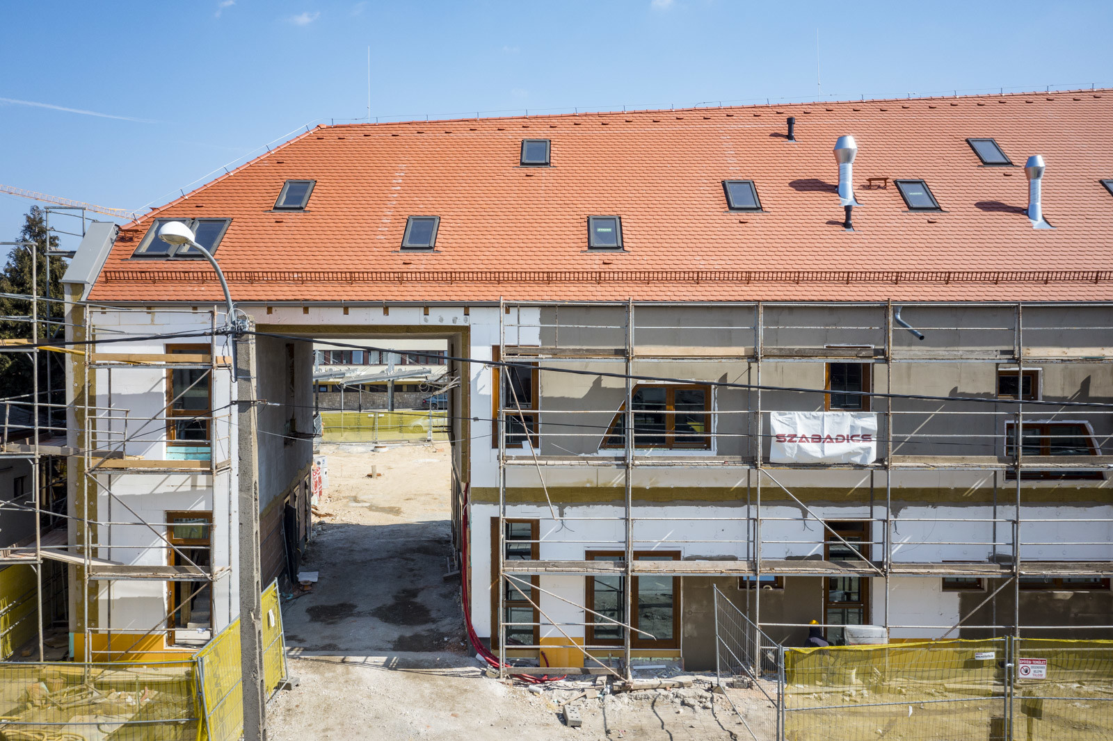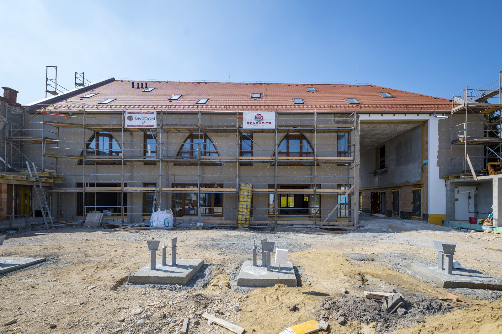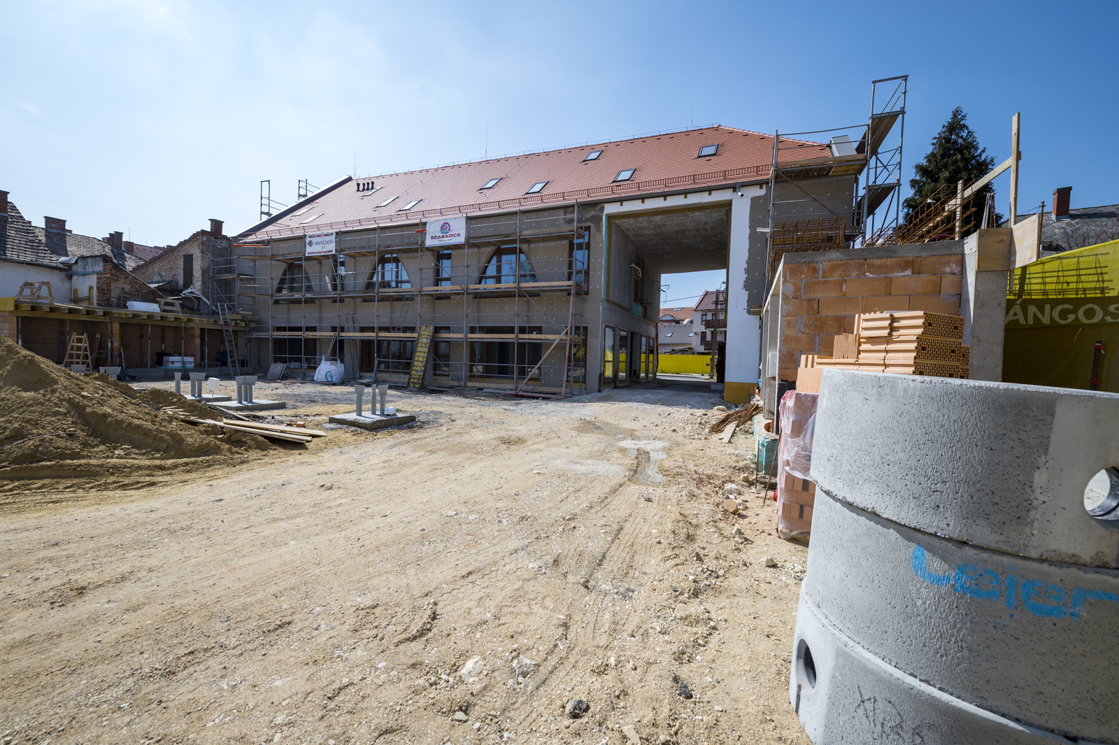 „Jelenleg a pajta épületrész alapozásánál tartunk, és készítjük a térburkolat alatti alépítményt is. Ezenkívül folyamatban van a homlokzati nyílászárók beépítése, illetve a hús- és hentesáru épület szerkezetépítése”
