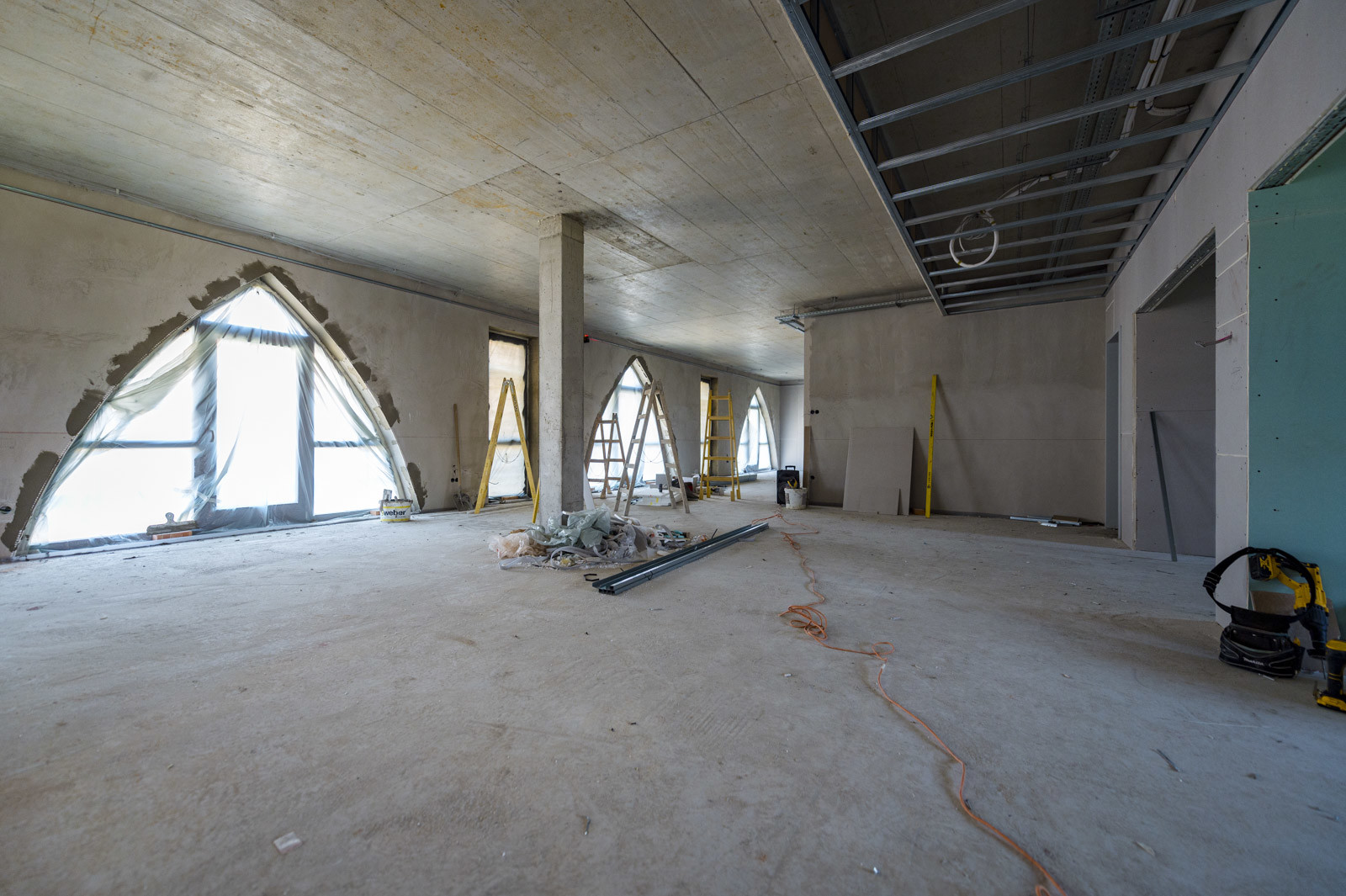 „Ezután következnek majd a belső festési munkák, valamint a burkolás; hideg burkolatokat és homlokzati klinker burkolatokat készítünk, emellett kiépítjük az álmennyezeteket, valamint elhelyezzük a pajta épületrész ragasztott fatartóit is.”