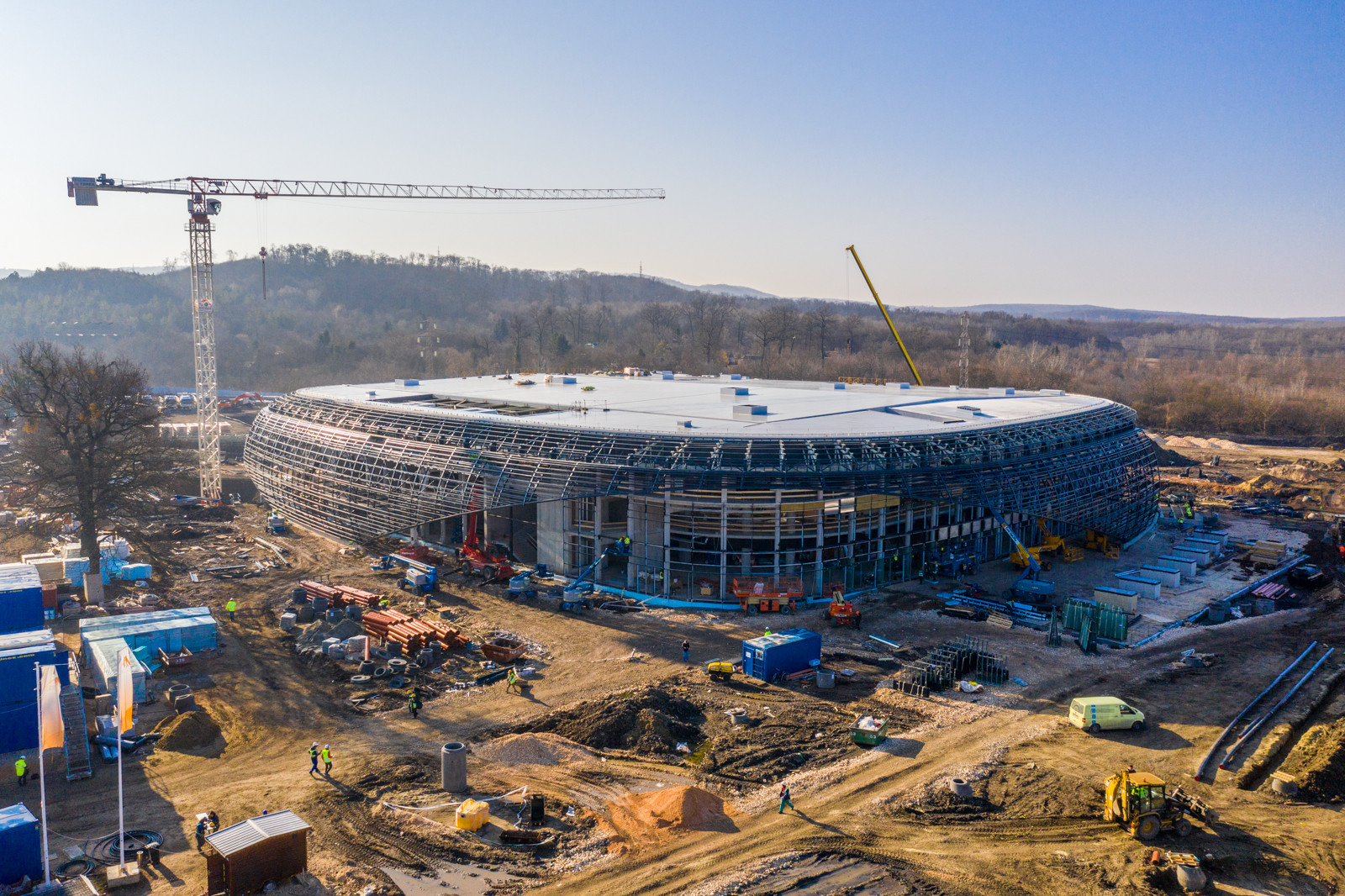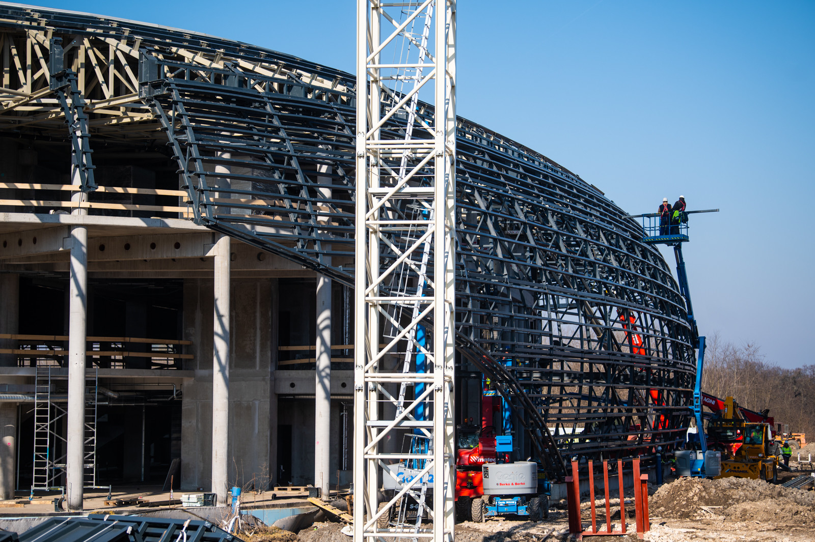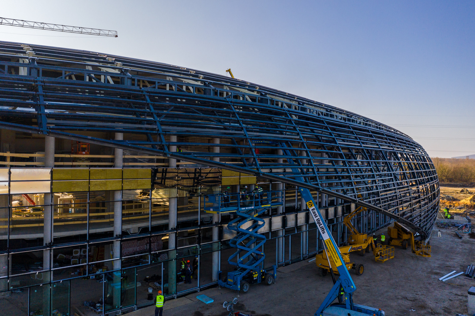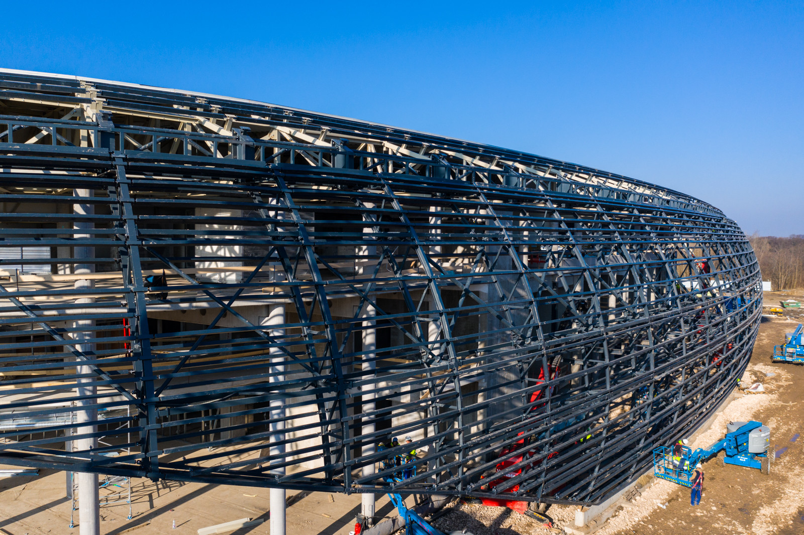 Az acélszerkezet szerelése 2020 augusztusában kezdődött és előreláthatólag 2021 áprilisában fejeződik be. A csarnok acélszerkezete több nagyobb építési egységből áll, melynek gyártása és helyszíni szerelése tervezetten halad. A helyszínen a következő acélszerkezeti részekből tevődik össze az épület: