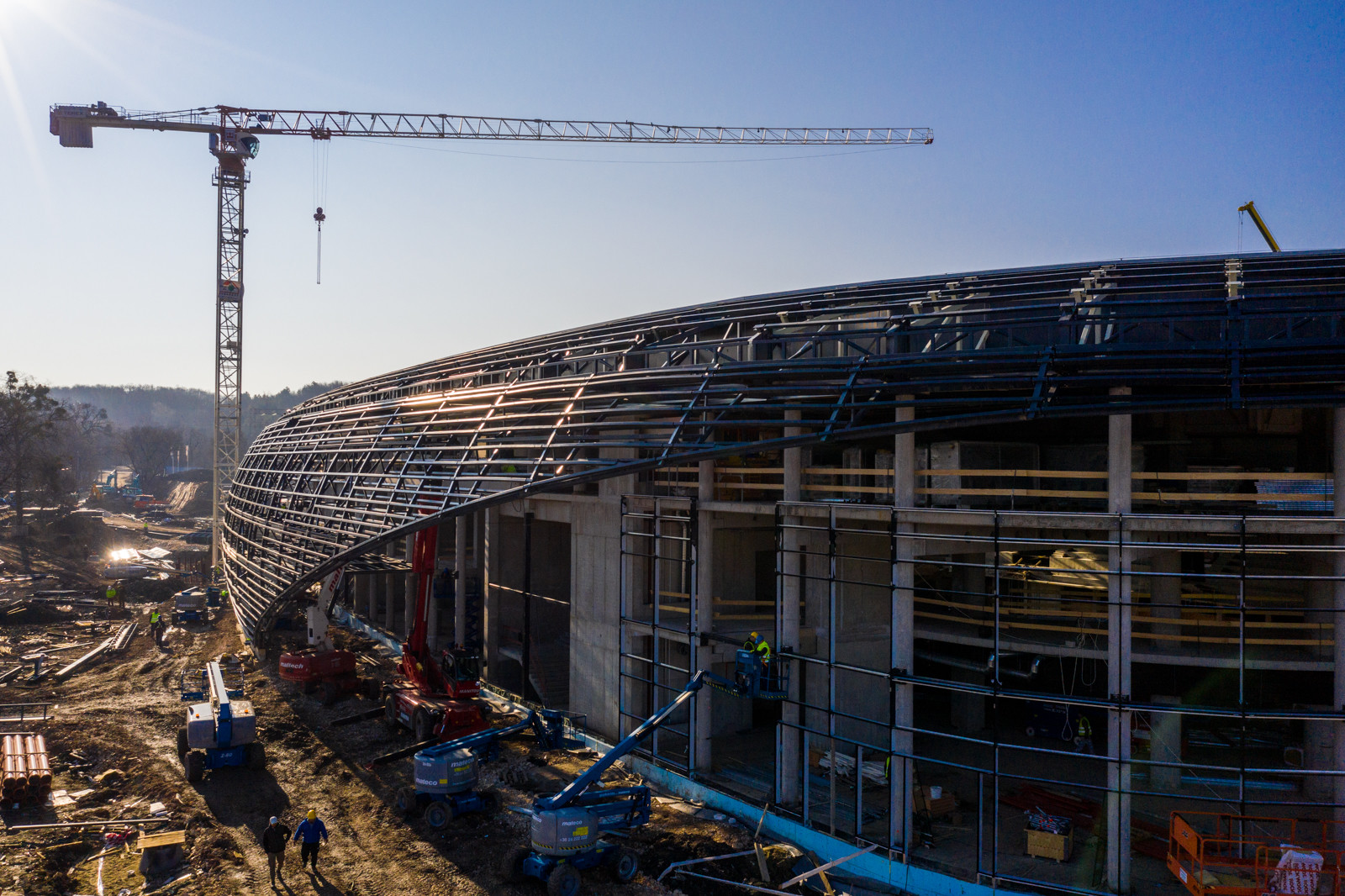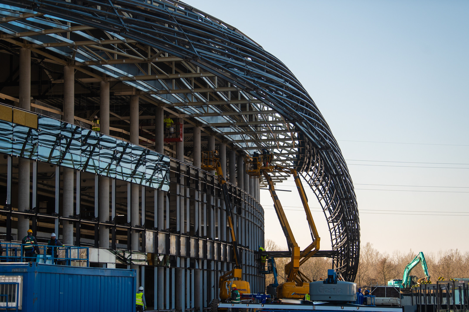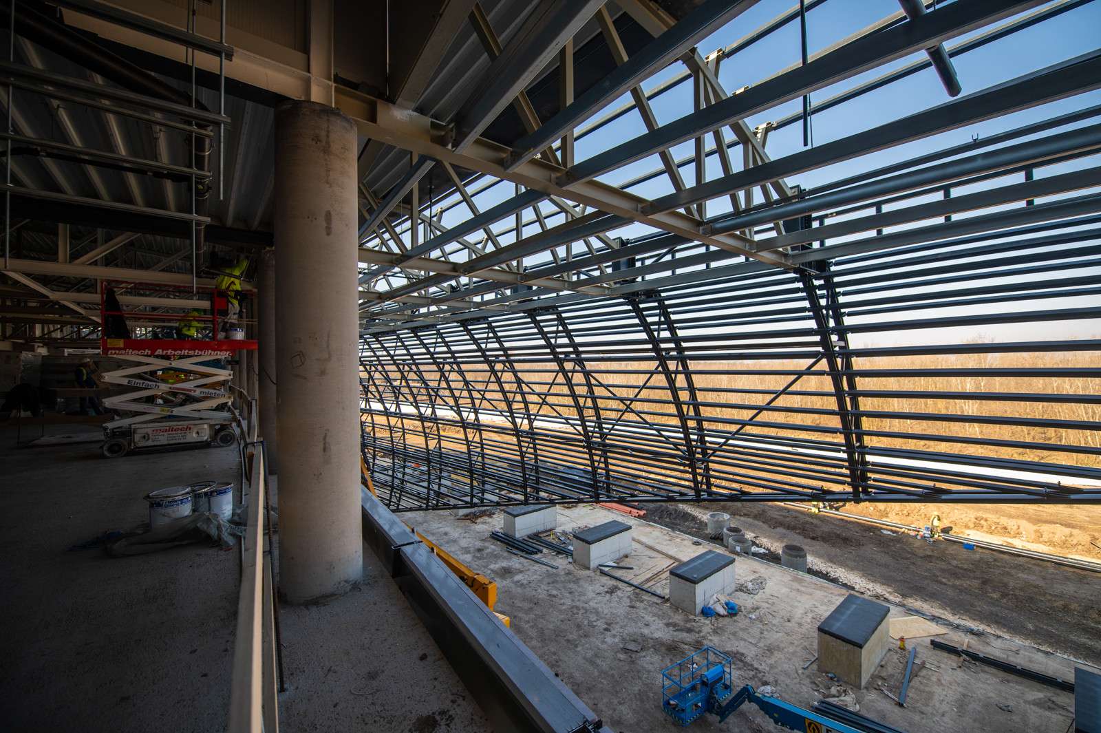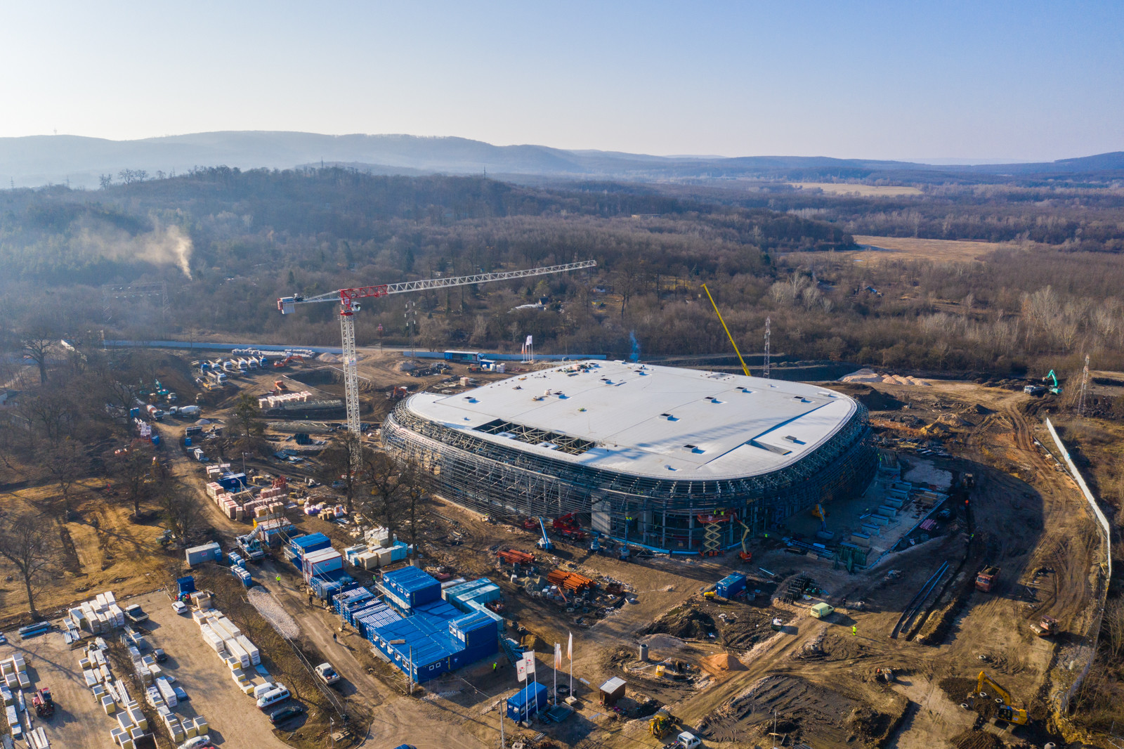 Az acélszerkezet szerelése 2020 augusztusában kezdődött és előreláthatólag 2021 áprilisában fejeződik be. A csarnok acélszerkezete több nagyobb építési egységből áll, melynek gyártása és helyszíni szerelése tervezetten halad. A helyszínen a következő acélszerkezeti részekből tevődik össze az épület: