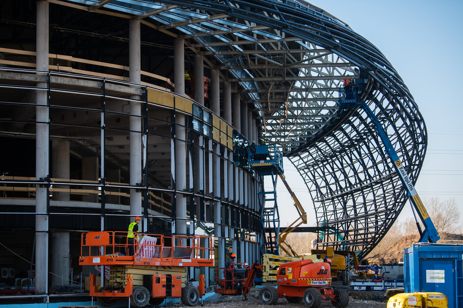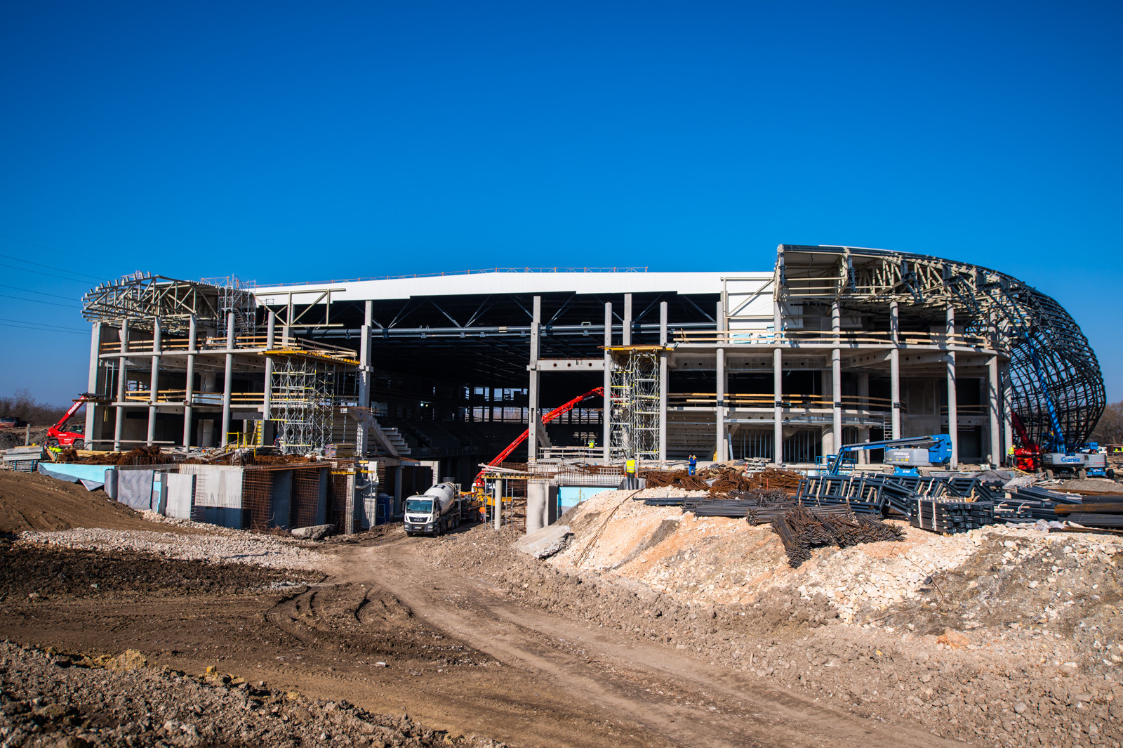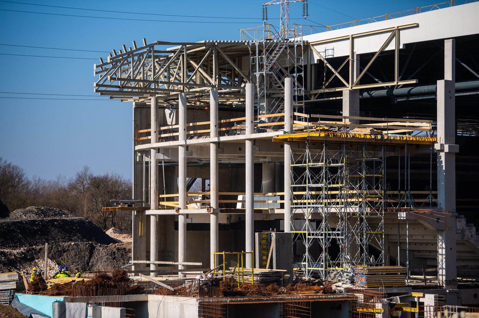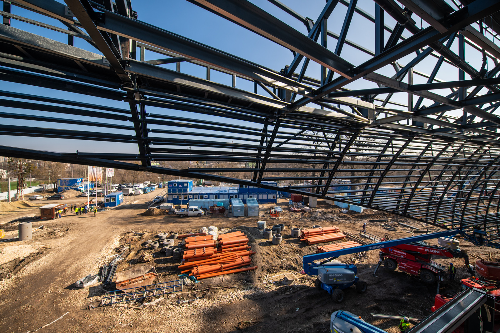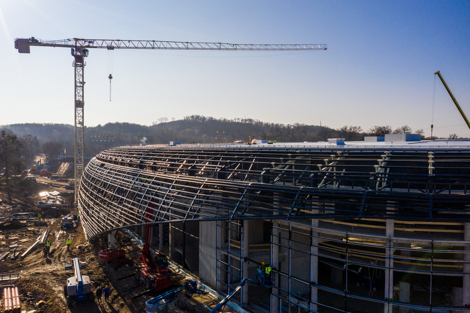 Az acélszerkezet szerelése 2020 augusztusában kezdődött és előreláthatólag 2021 áprilisában fejeződik be. A csarnok acélszerkezete több nagyobb építési egységből áll, melynek gyártása és helyszíni szerelése tervezetten halad. A helyszínen a következő acélszerkezeti részekből tevődik össze az épület: