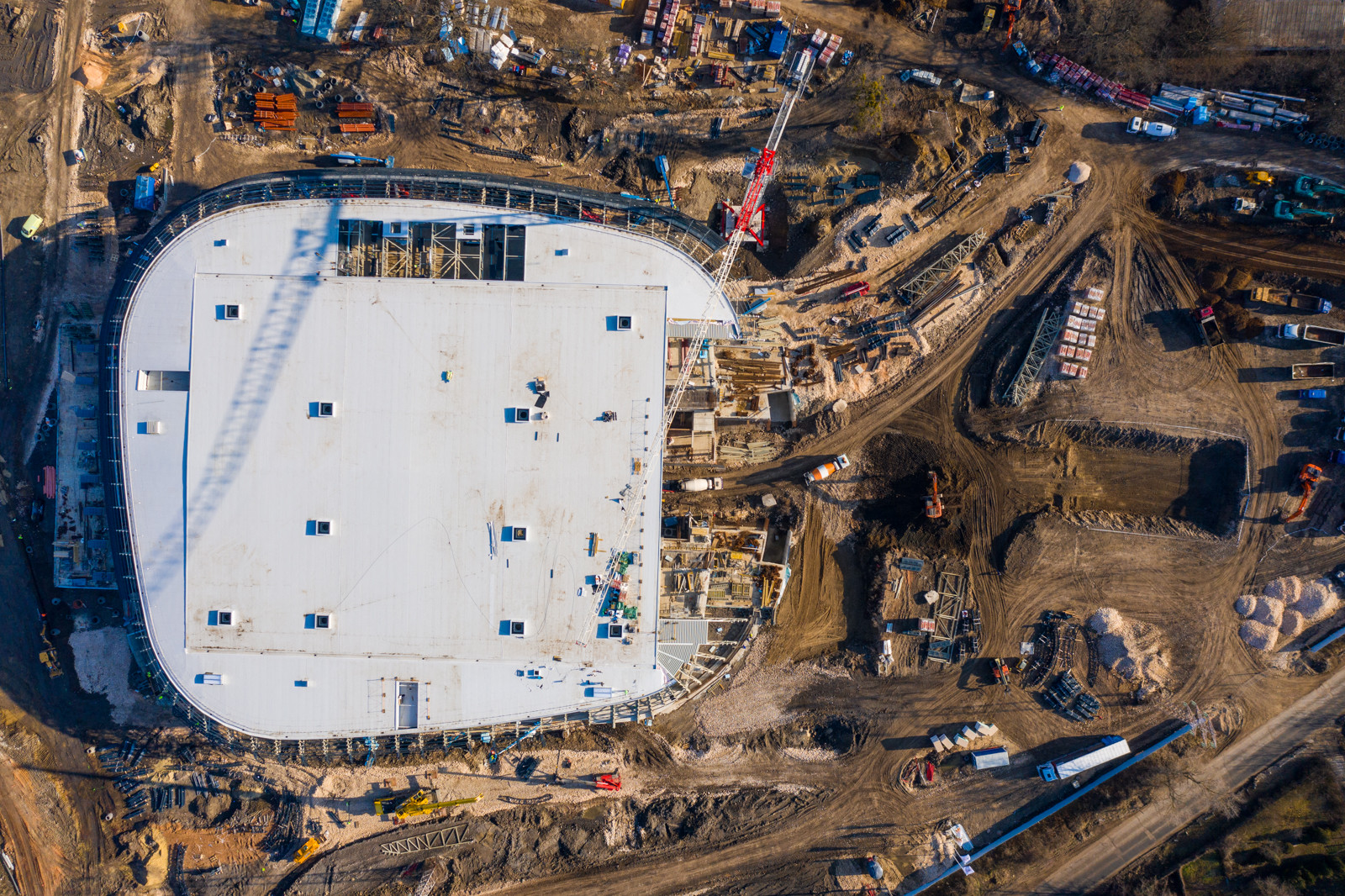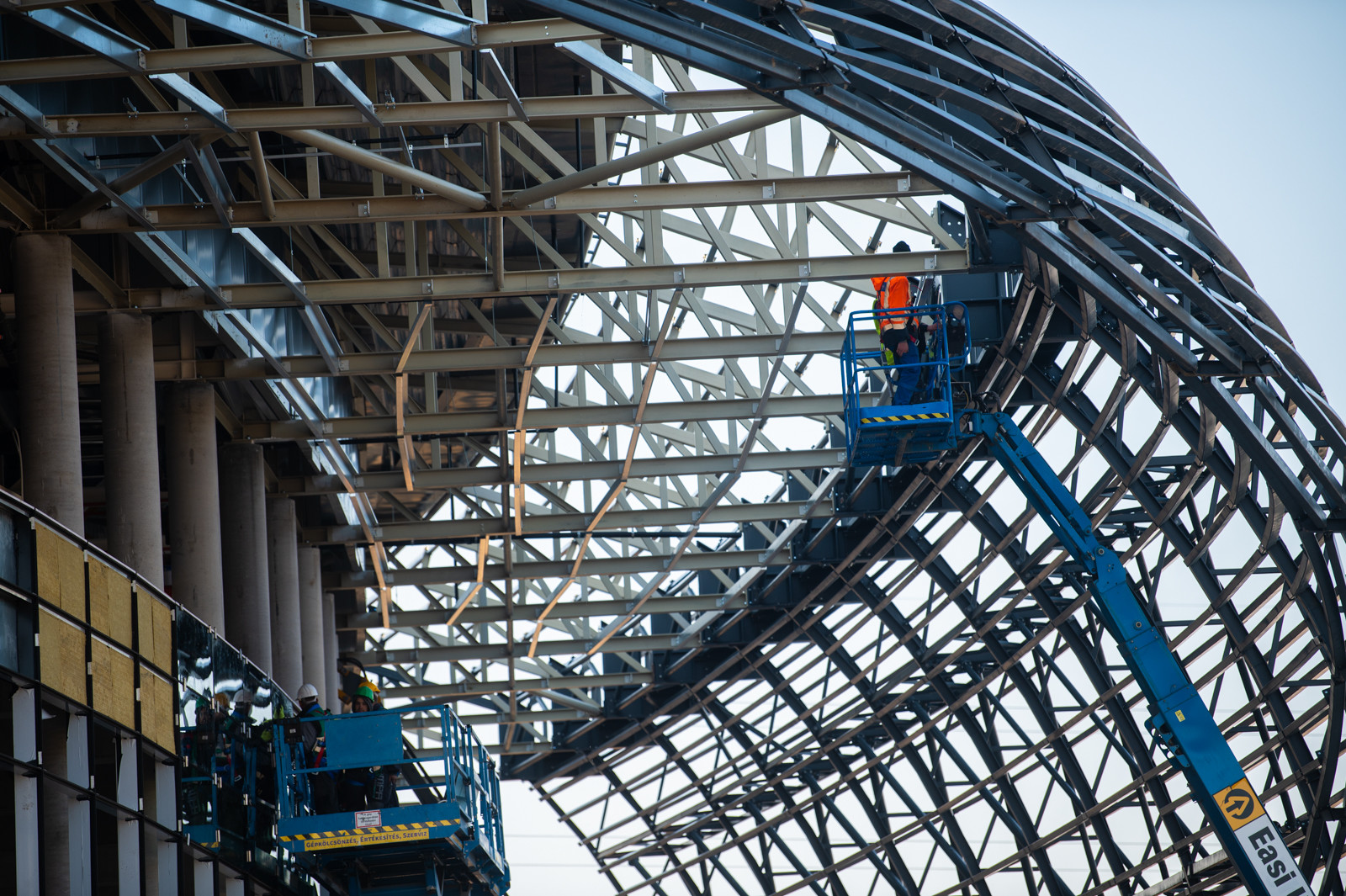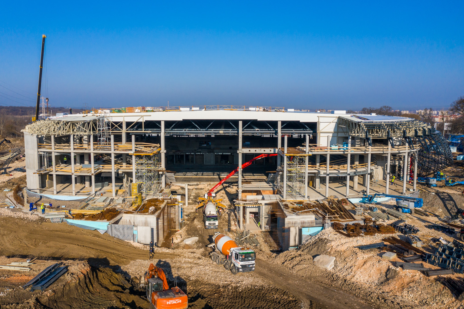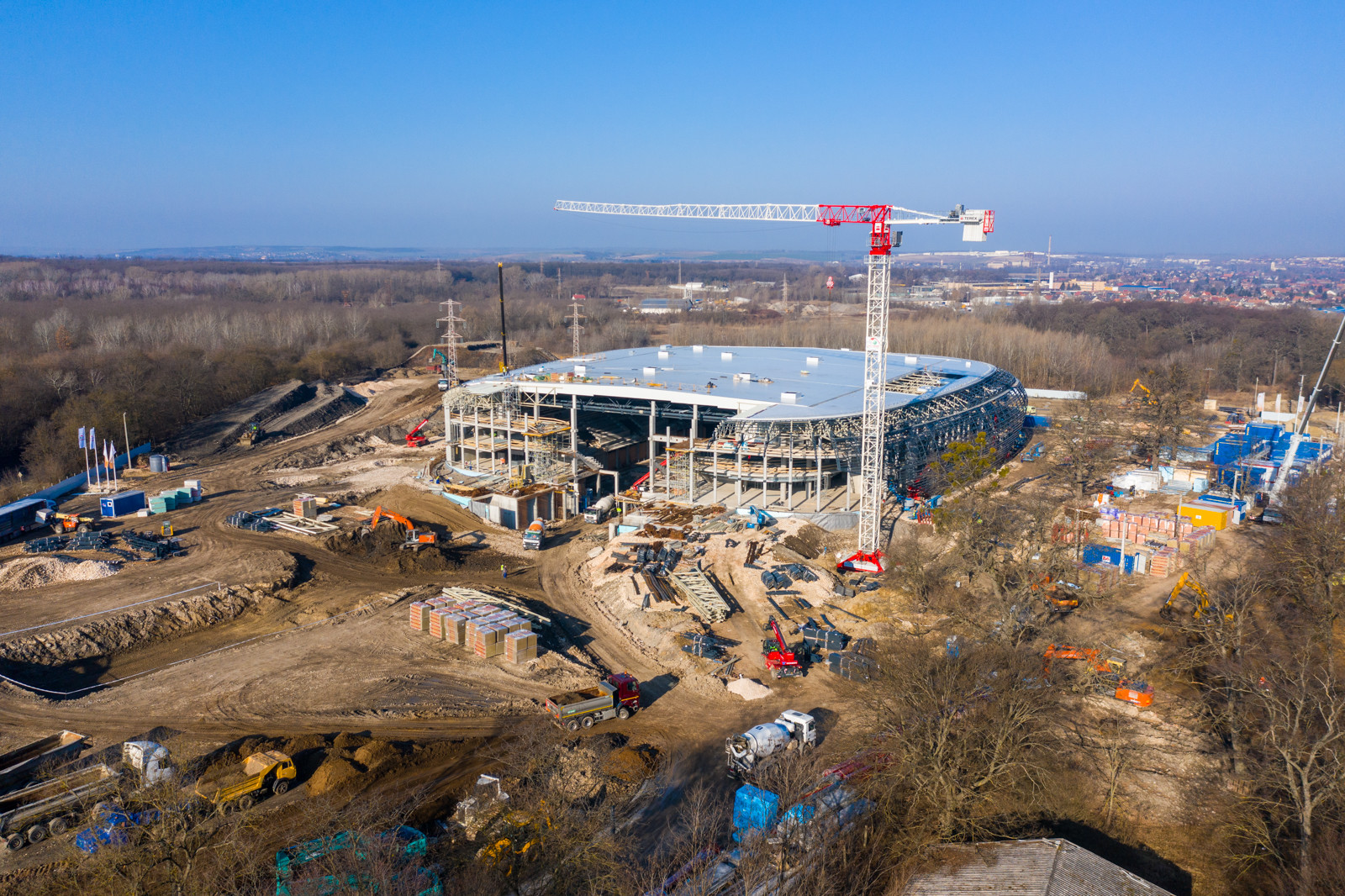 Az acélszerkezet szerelése 2020 augusztusában kezdődött és előreláthatólag 2021 áprilisában fejeződik be. A csarnok acélszerkezete több nagyobb építési egységből áll, melynek gyártása és helyszíni szerelése tervezetten halad. A helyszínen a következő acélszerkezeti részekből tevődik össze az épület: