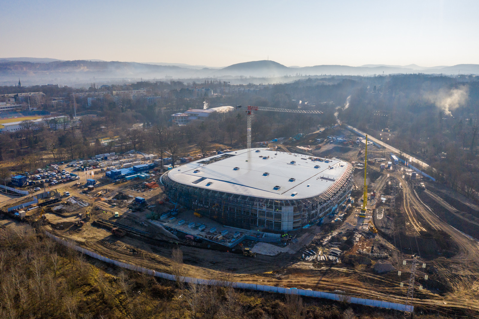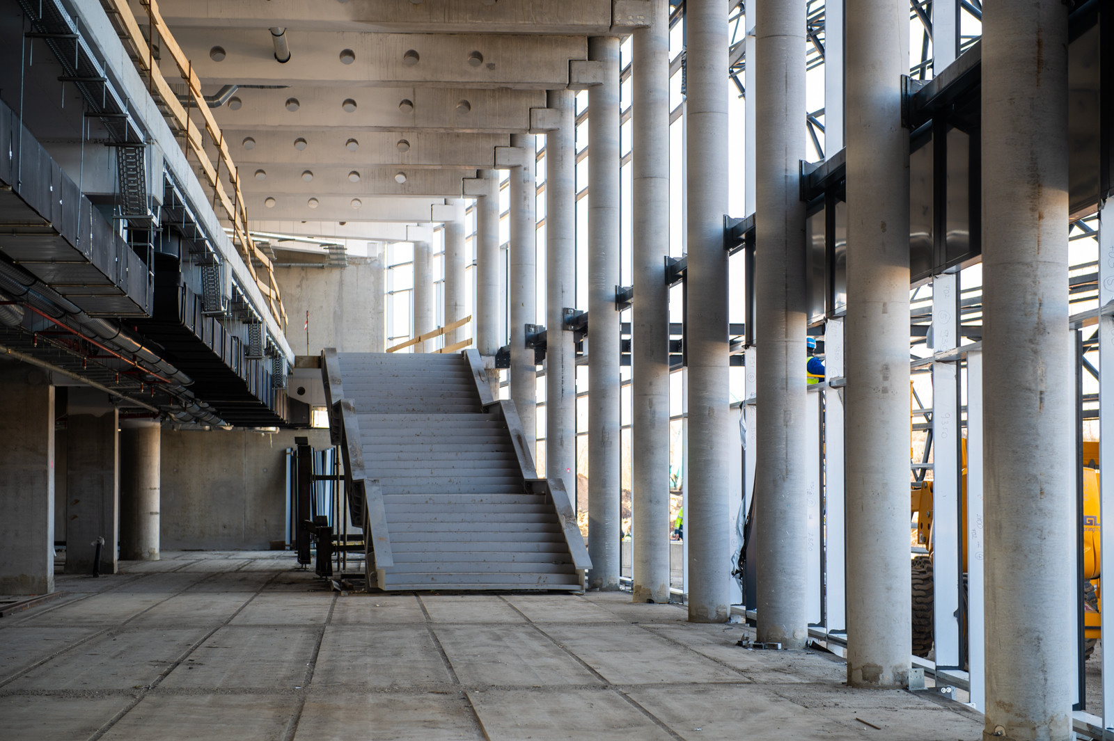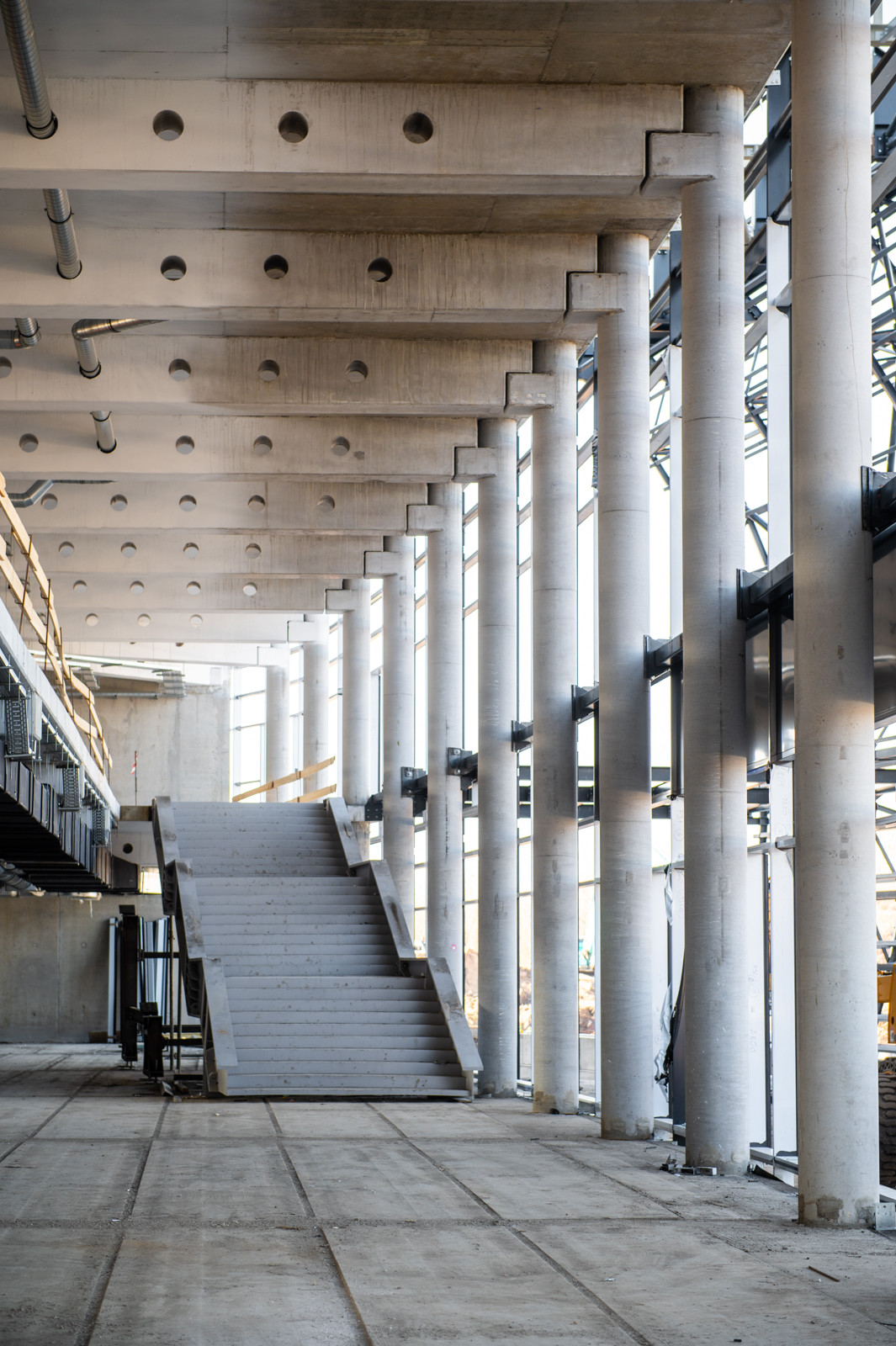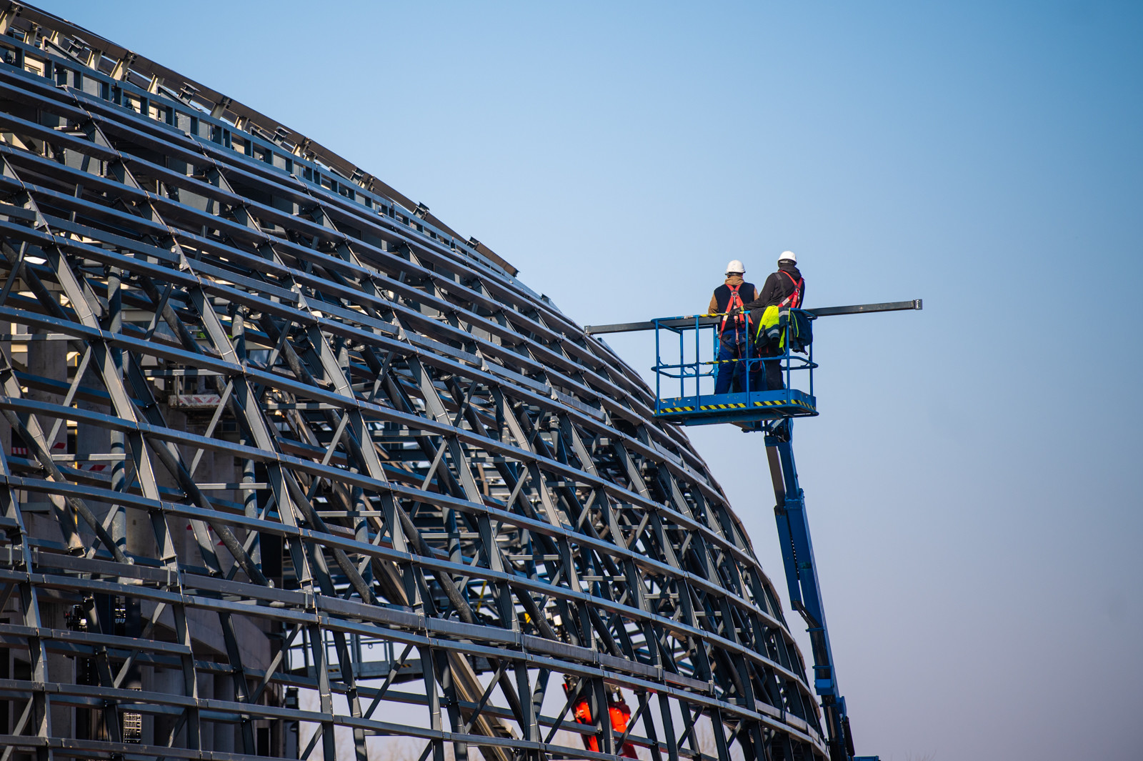Az acélszerkezet szerelése 2020 augusztusában kezdődött és előreláthatólag 2021 áprilisában fejeződik be. A csarnok acélszerkezete több nagyobb építési egységből áll, melynek gyártása és helyszíni szerelése tervezetten halad. A helyszínen a következő acélszerkezeti részekből tevődik össze az épület:
