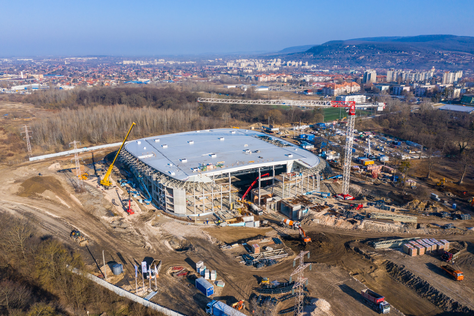 A Tatabányai Multifunkciós Csarnok építése kapcsán lapunk legutóbb már arról számolhatott be, hogy elérte az 50 százalékos műszaki készültséget a létesítmény. Az Épkar Zrt. és Fejér-B.Á.L. Zrt. konzorciumában létrejövő komplexum 18,5 milliárd forintból valósul meg.