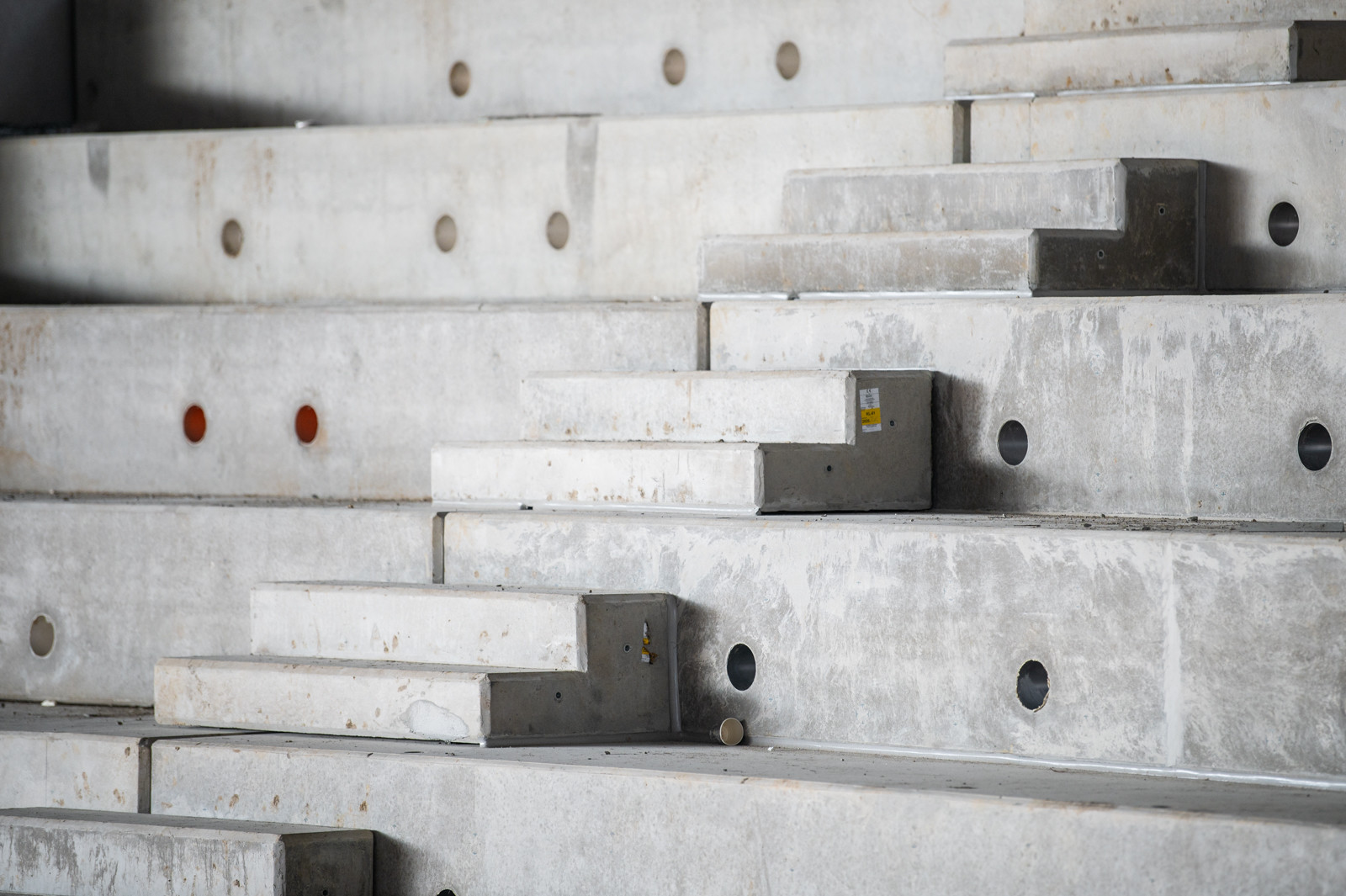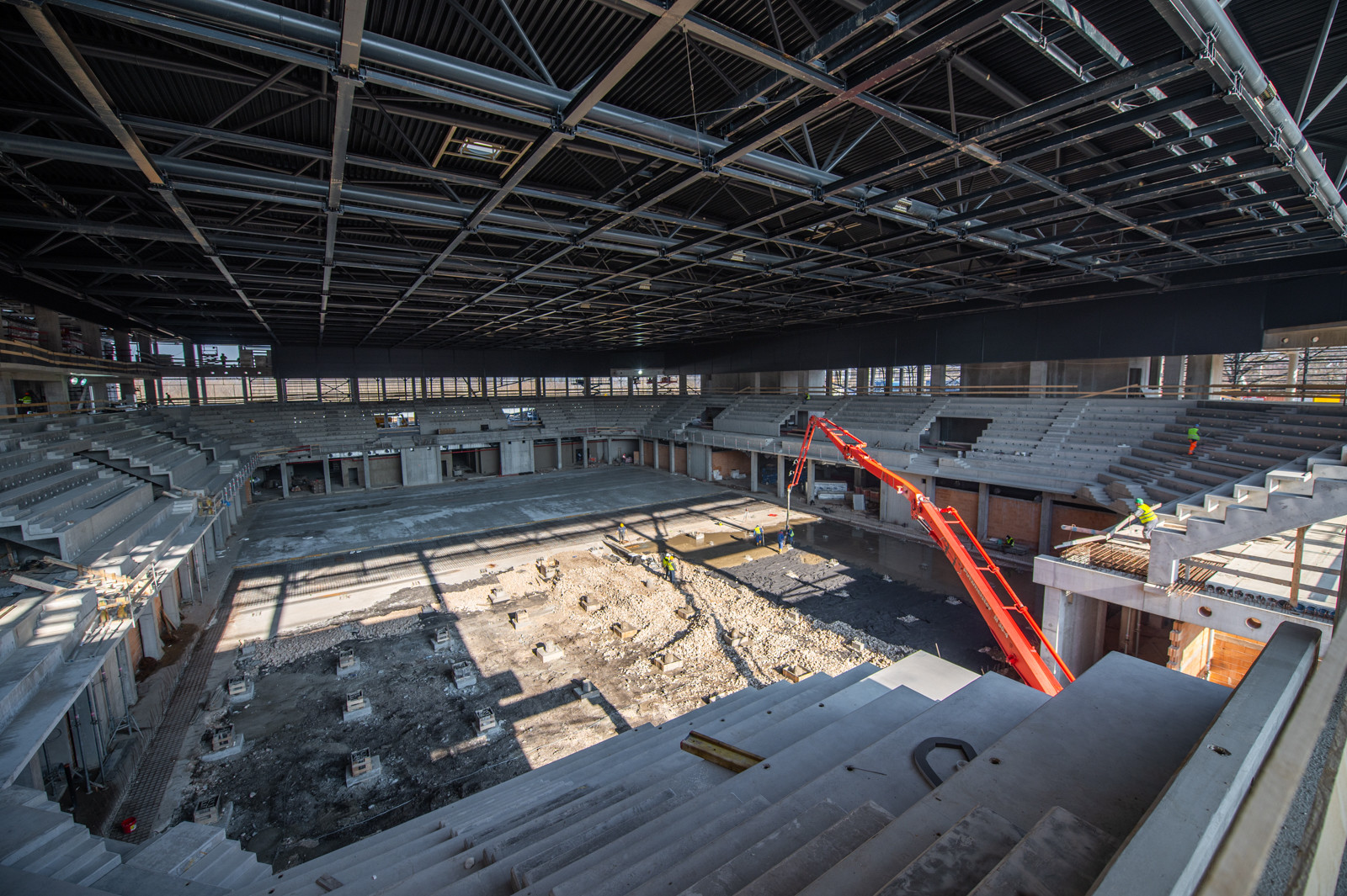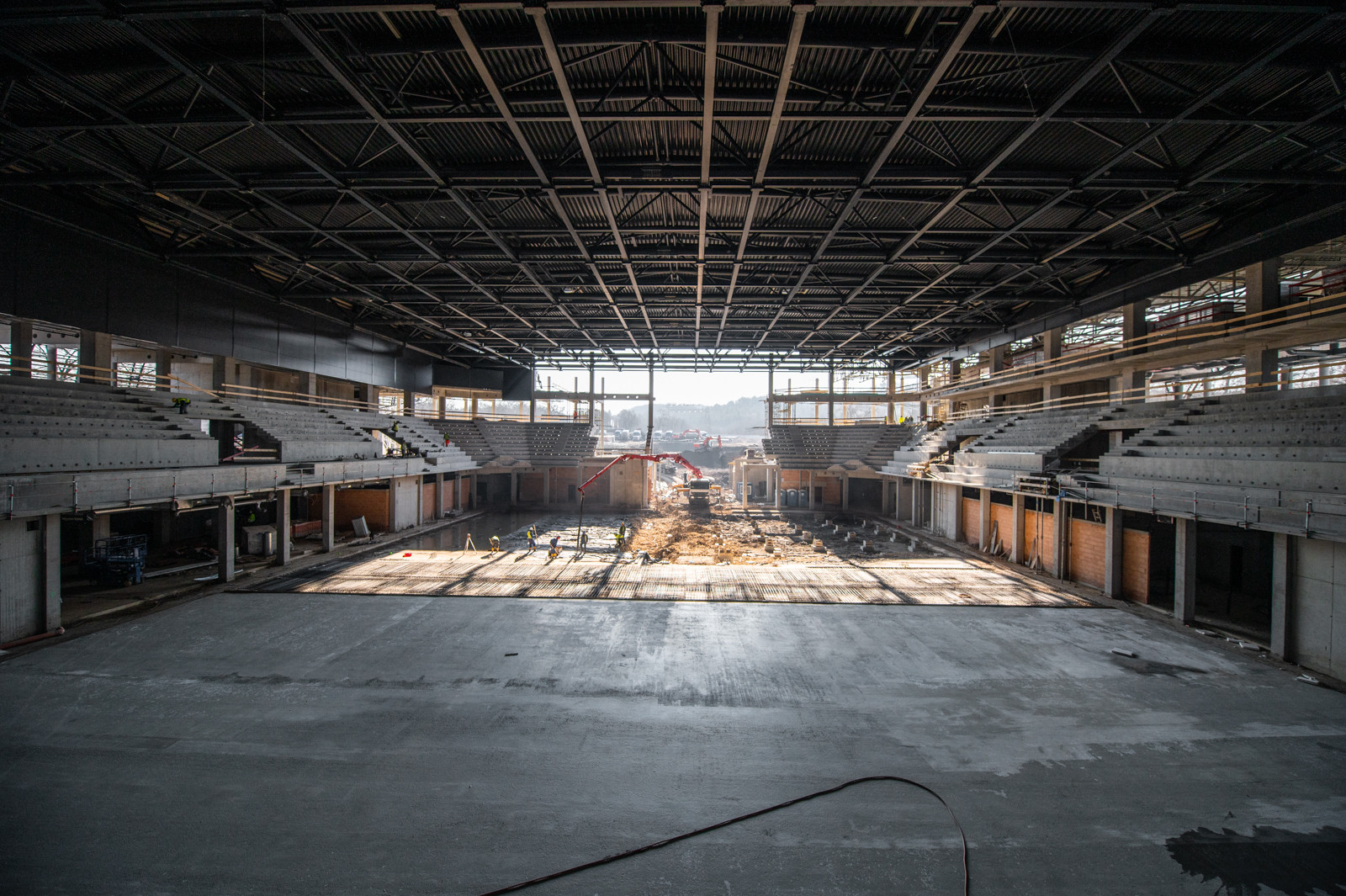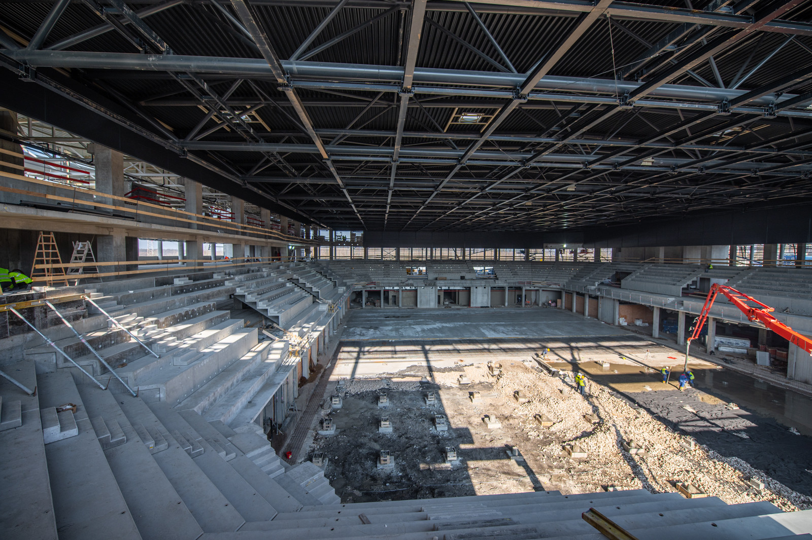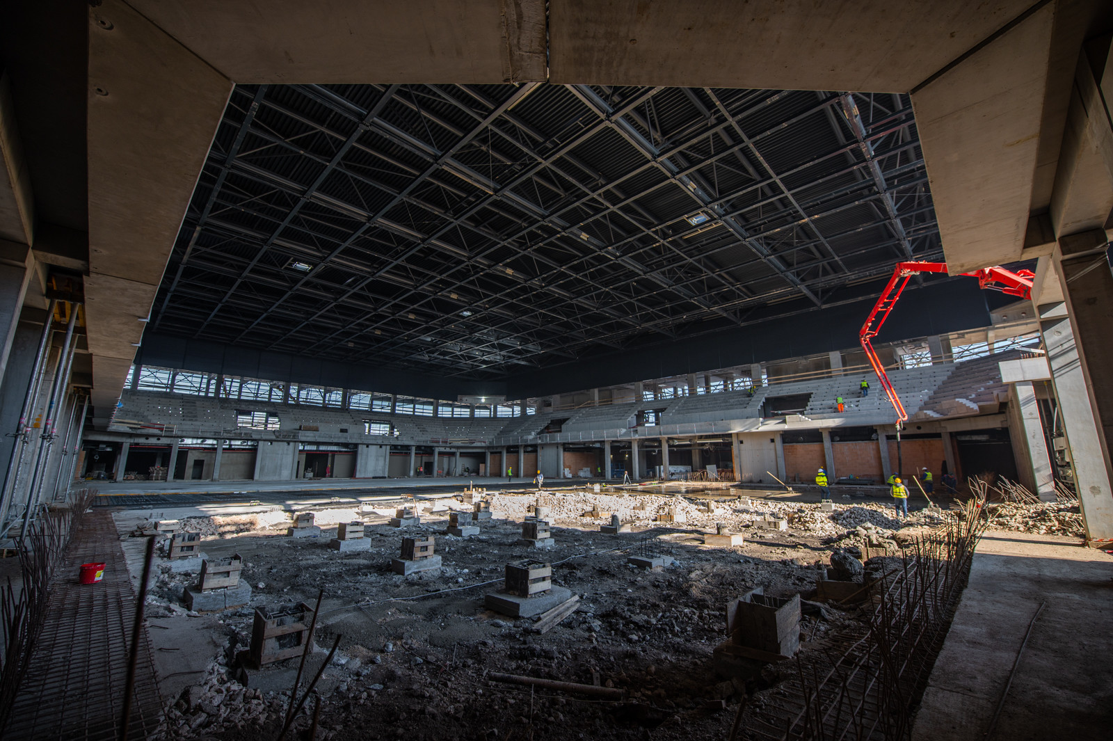 A főtartók elhelyezését követően beépítésre kerültek a vasbeton lelátó-, és hozzá kapcsolódó lépcsőelemek, mellyel a küzdőtér is megkapja végleges formáját.
