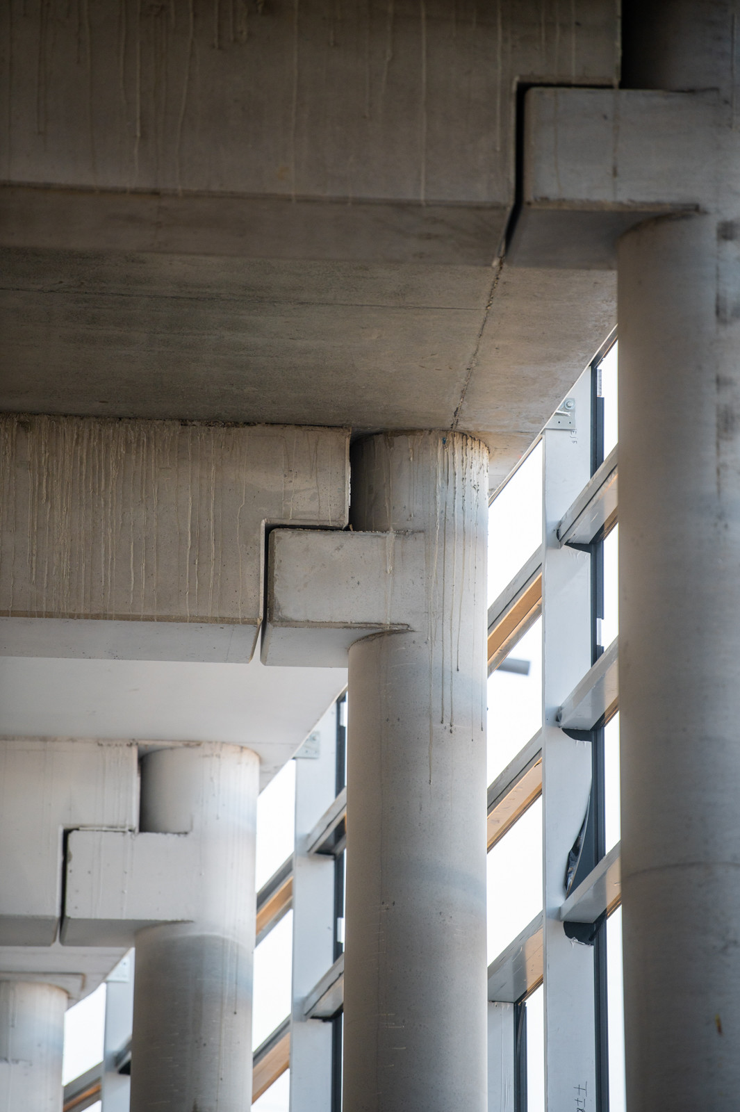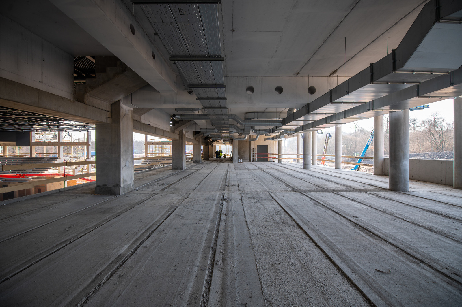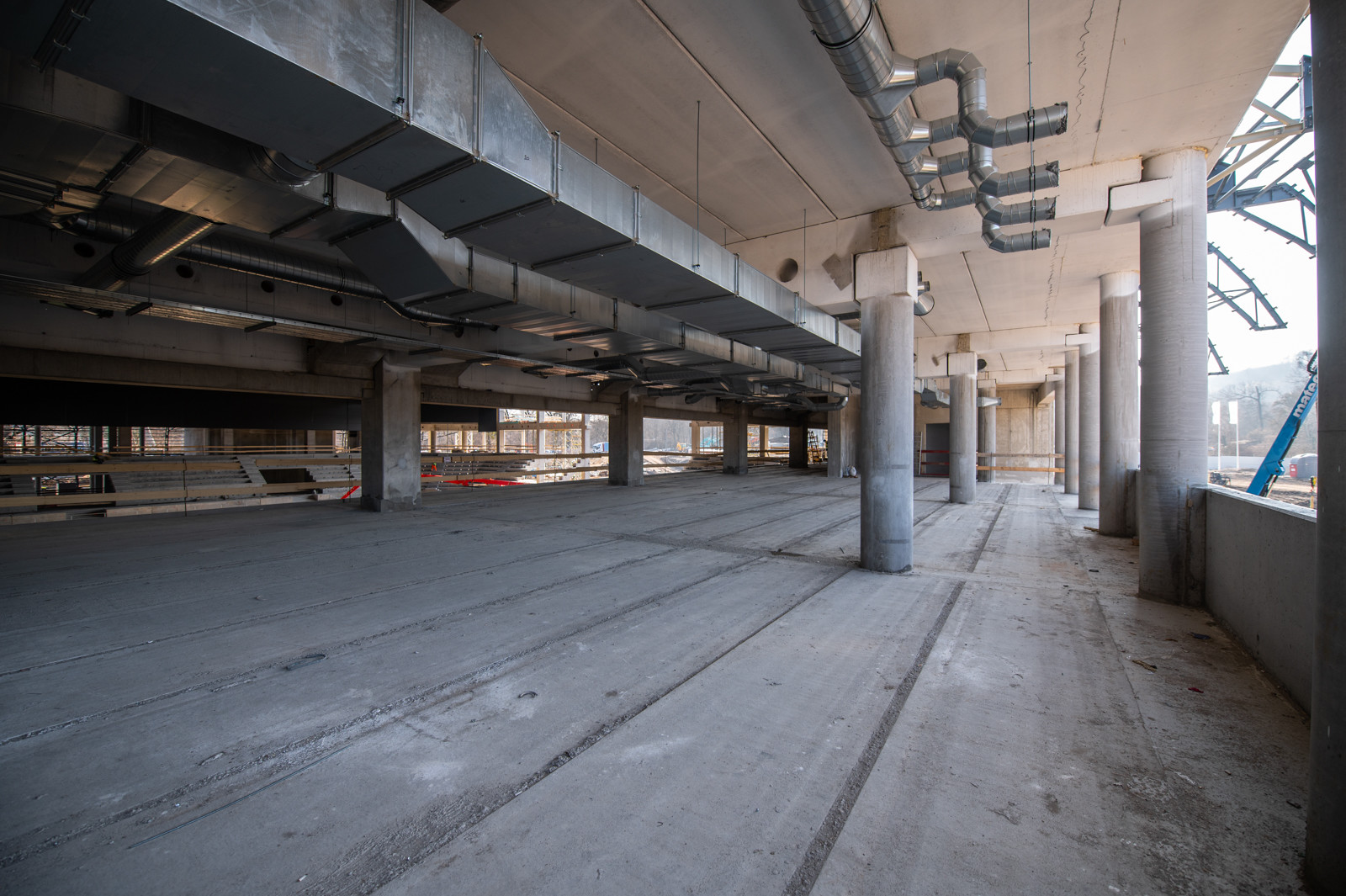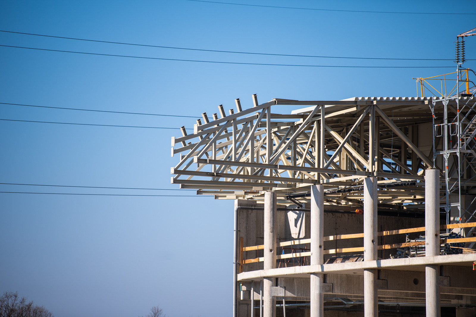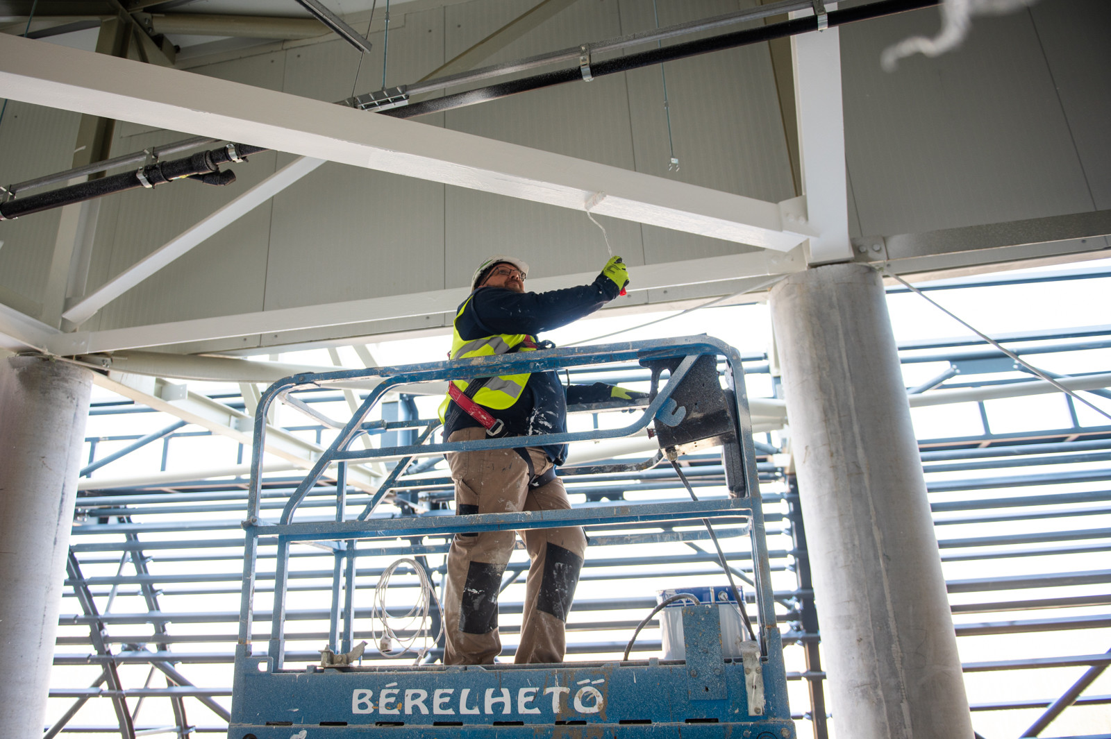 A szerkezetépítéssel párhuzamosan zajlanak az épületvillamossági, gépészeti alapszerelési munkálatok, illetve a több mint 3 ezer négyzetméter felületű impozáns függönyfal beépítés is. A következő hetekben az épület bezárására kerül sor, mellyel párhuzamosan a tetőszerkezet hő-és vízszigetelése is befejeződik.