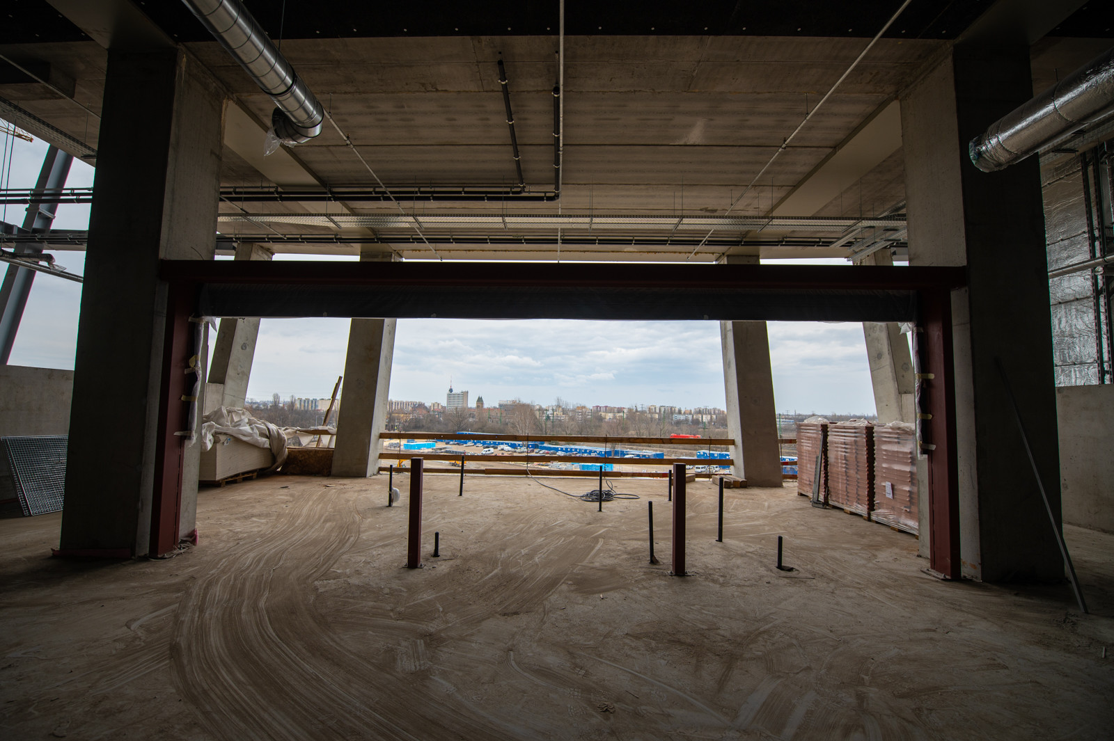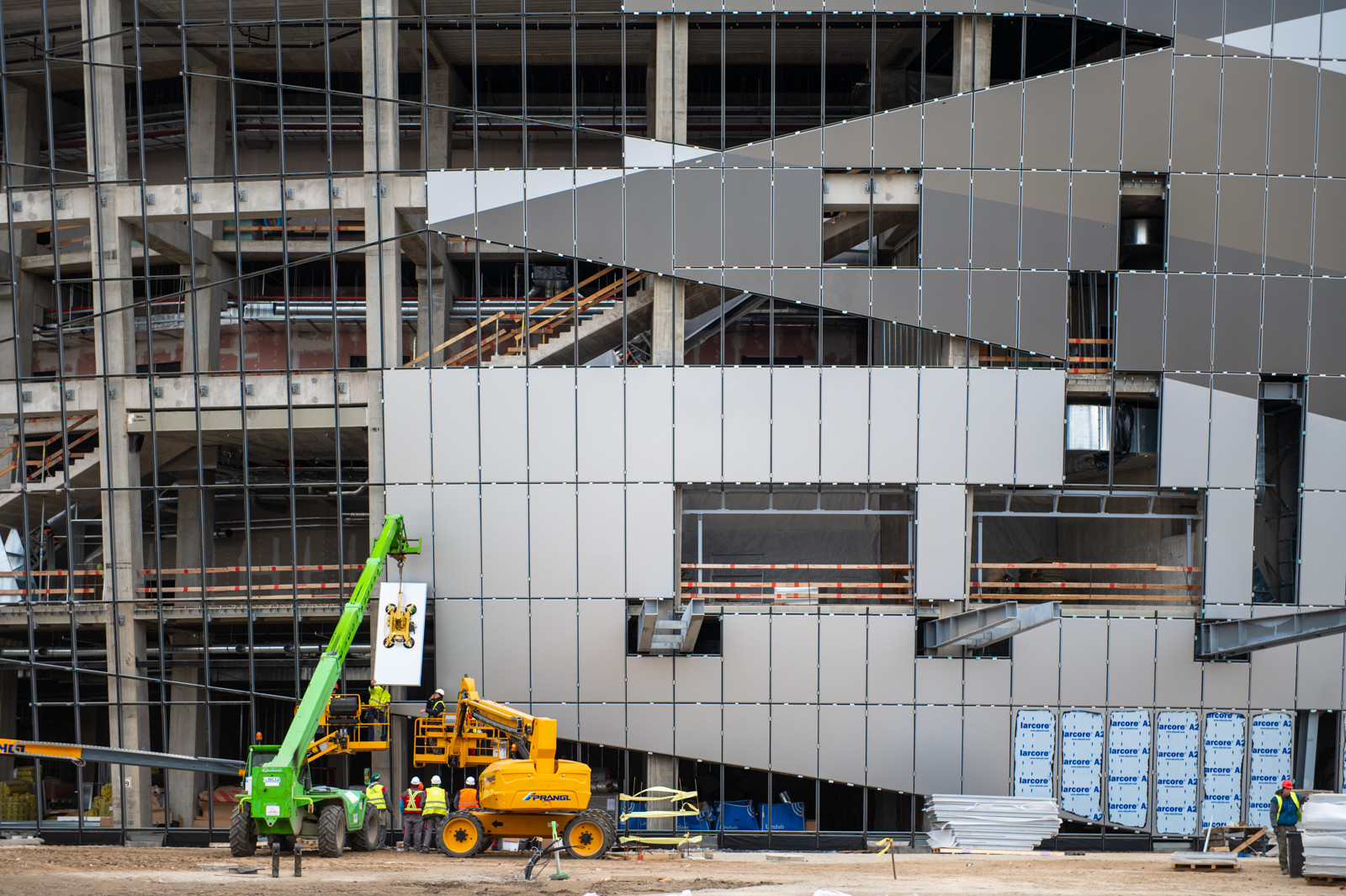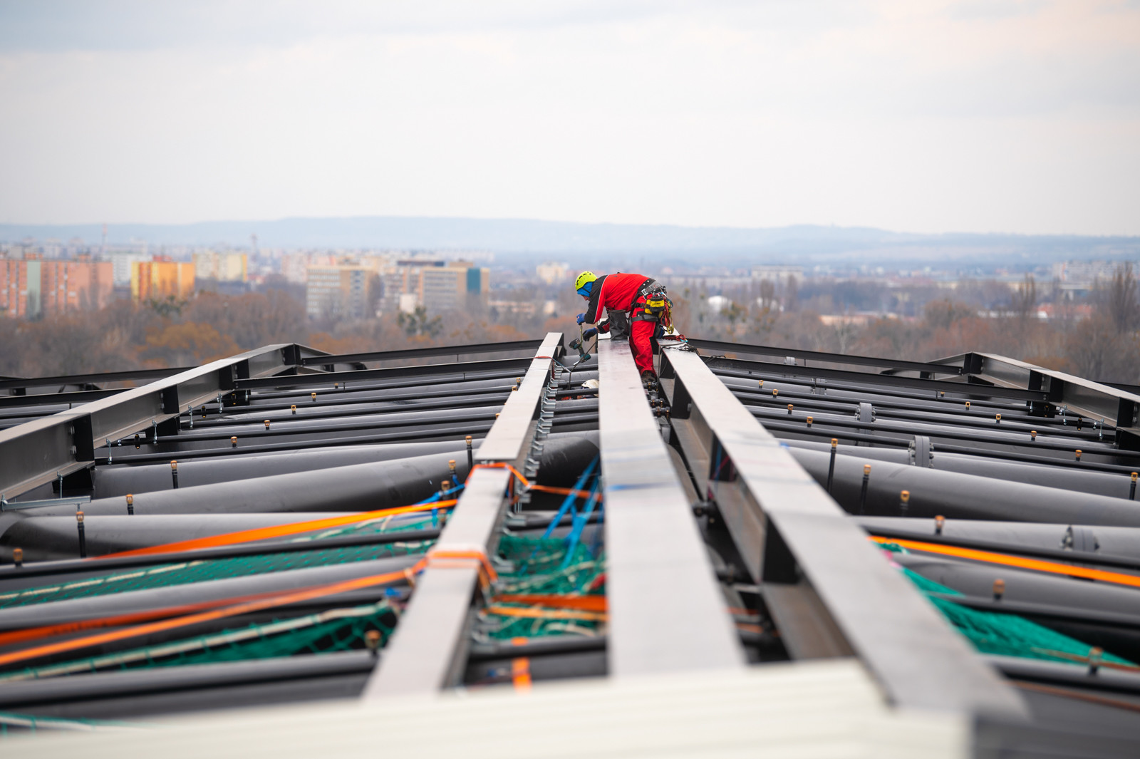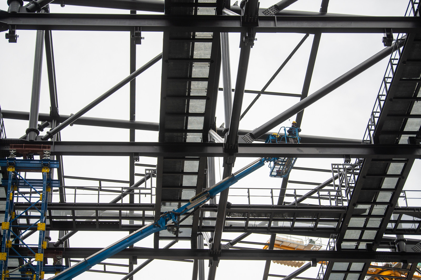 Az épület tartószerkezete néhány héten belül elkészül, továbbá homlokzatépítési, tetőlemezelési és szigetelési munkák is folynak jelenleg.