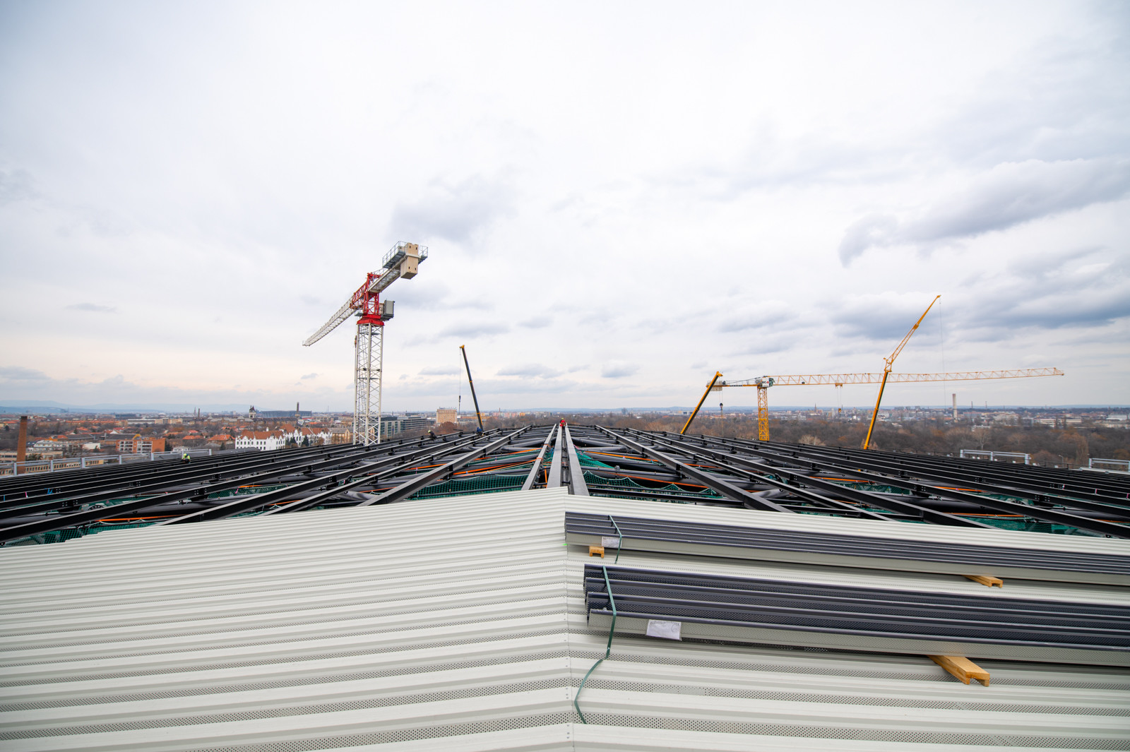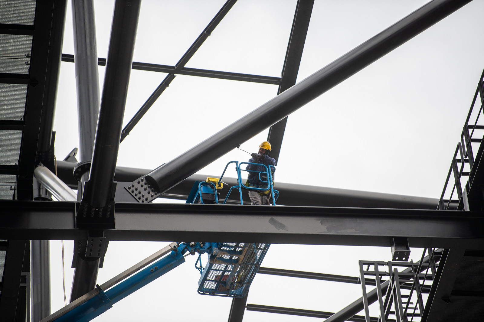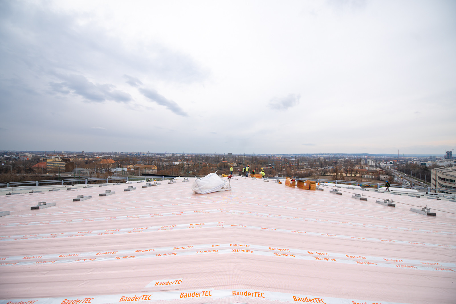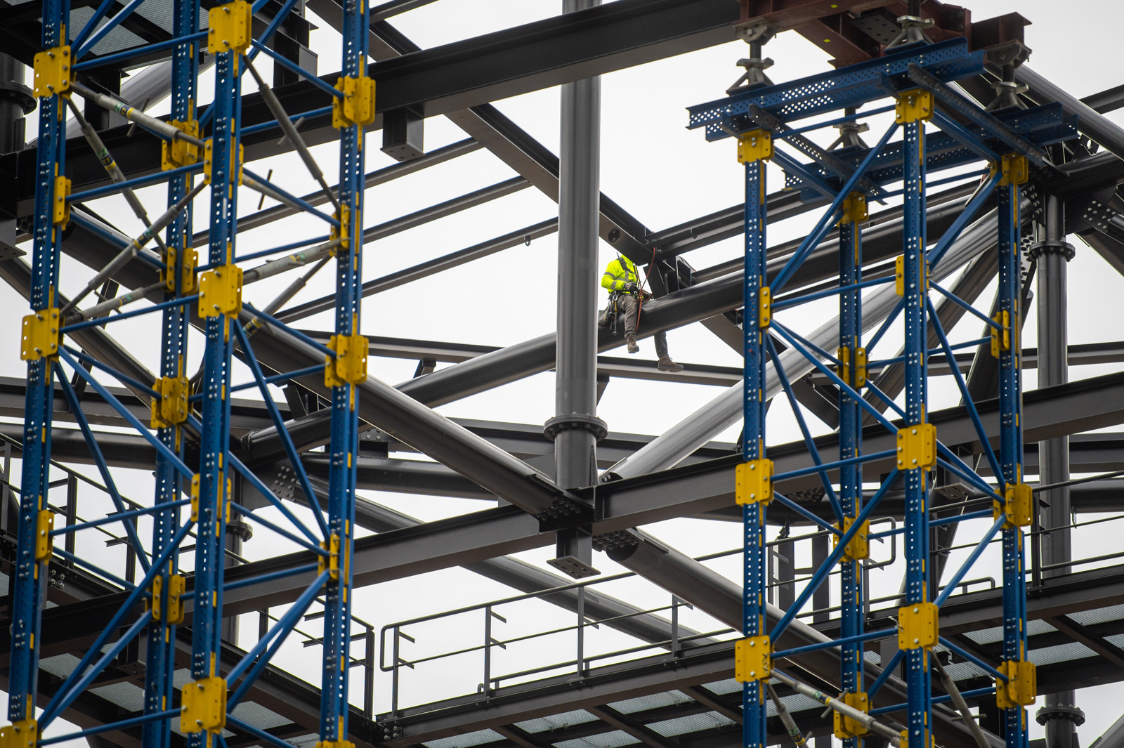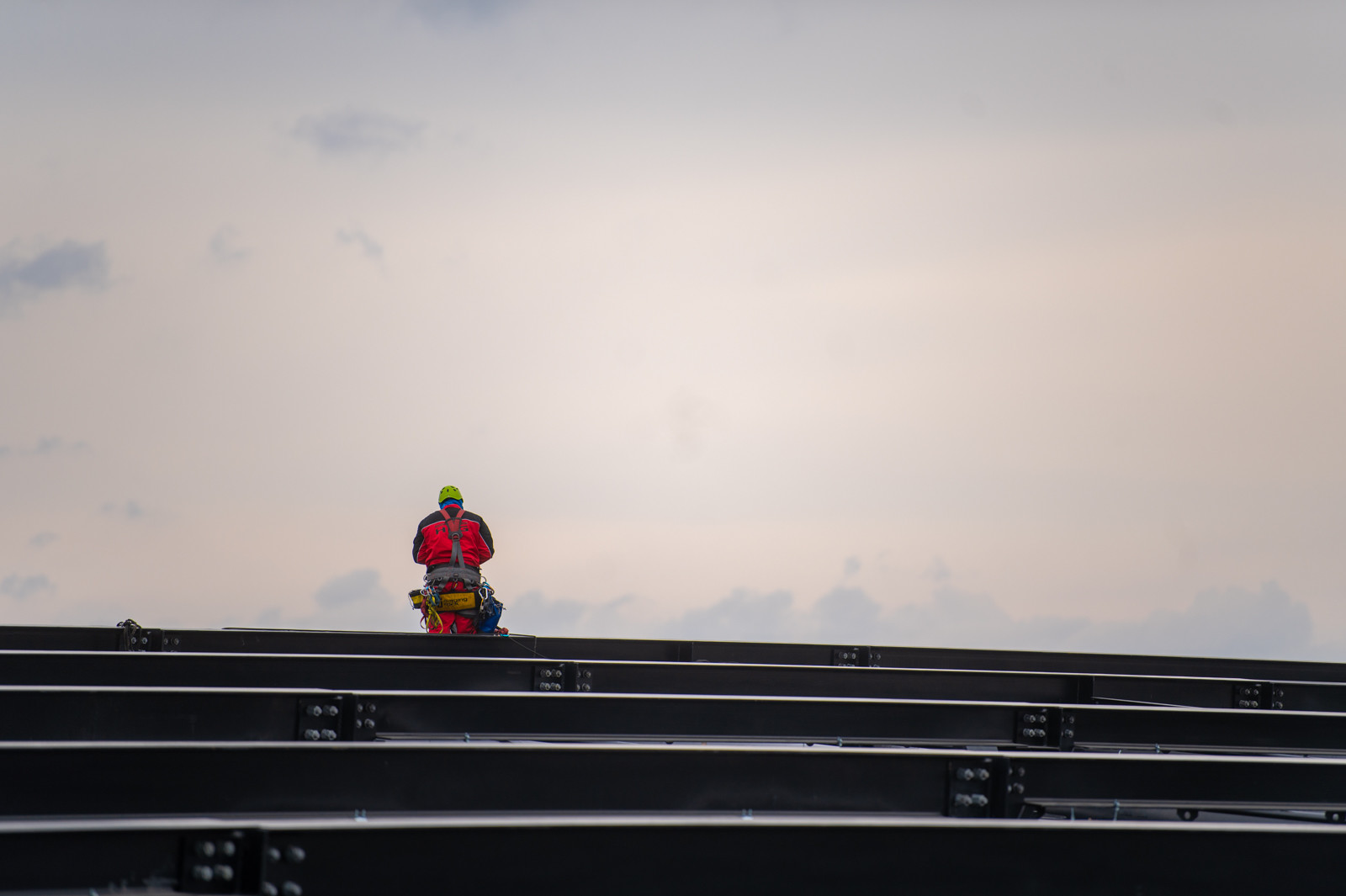 Az épület tartószerkezete néhány héten belül elkészül, továbbá homlokzatépítési, tetőlemezelési és szigetelési munkák is folynak jelenleg.