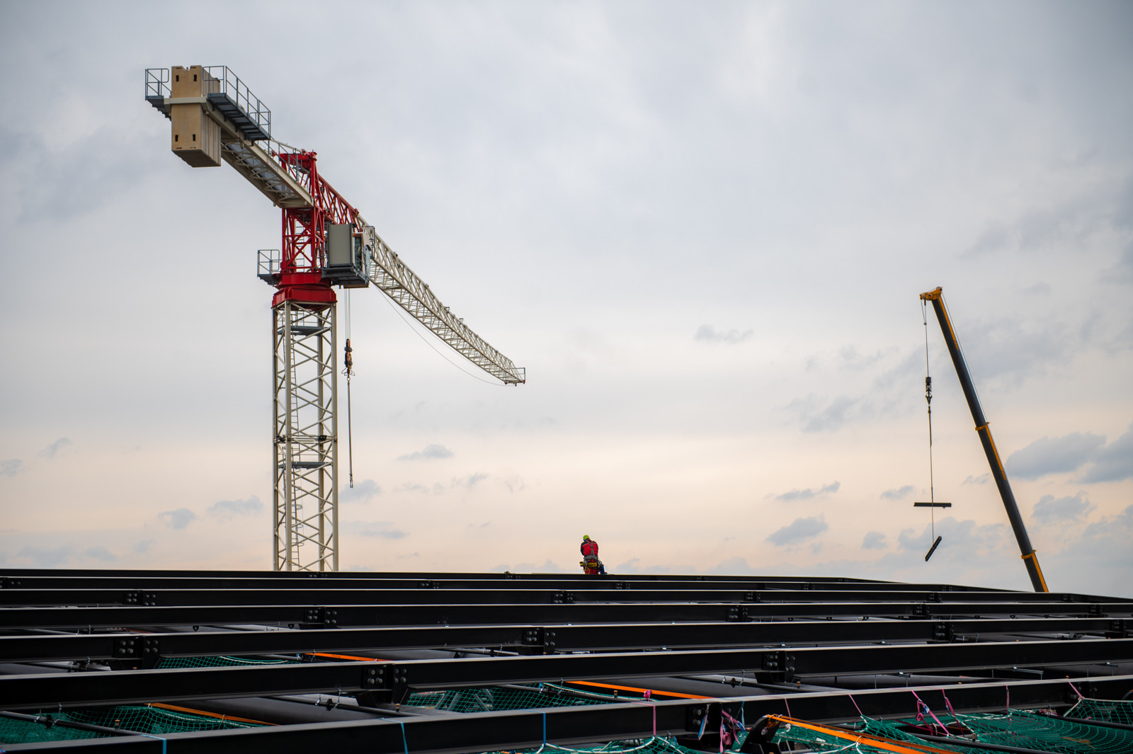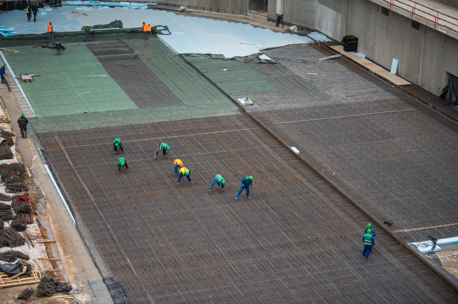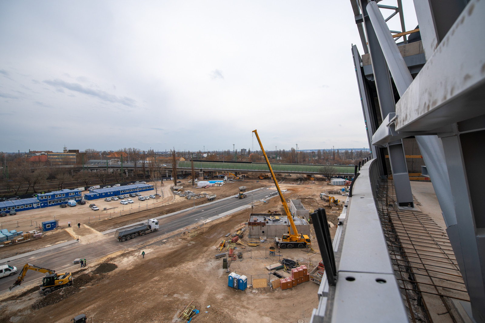 Napi szinten a munkaterületre belépők száma 950-1050 fő között mozog. Jelenleg 4 toronydaruval, 12 autódaruval és 28 nagyméretű mobil karos emelővel folyik a kivitelezés.