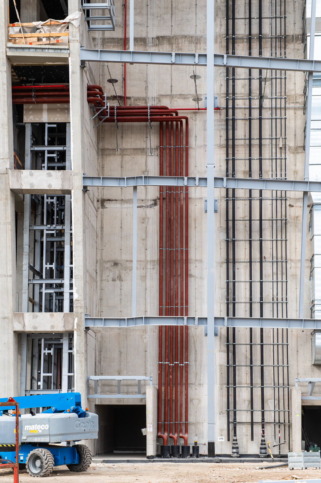 Jelenleg a közmű- és útépítési munkák vannak folyamatban, illetve az épületen belül a szakipari munkák zajlanak, úgy mint, gépészeti és elektromos alapszerelések, lakatosszerkezetek elhelyezése, felületképzések, illetve technológiai szerelések.