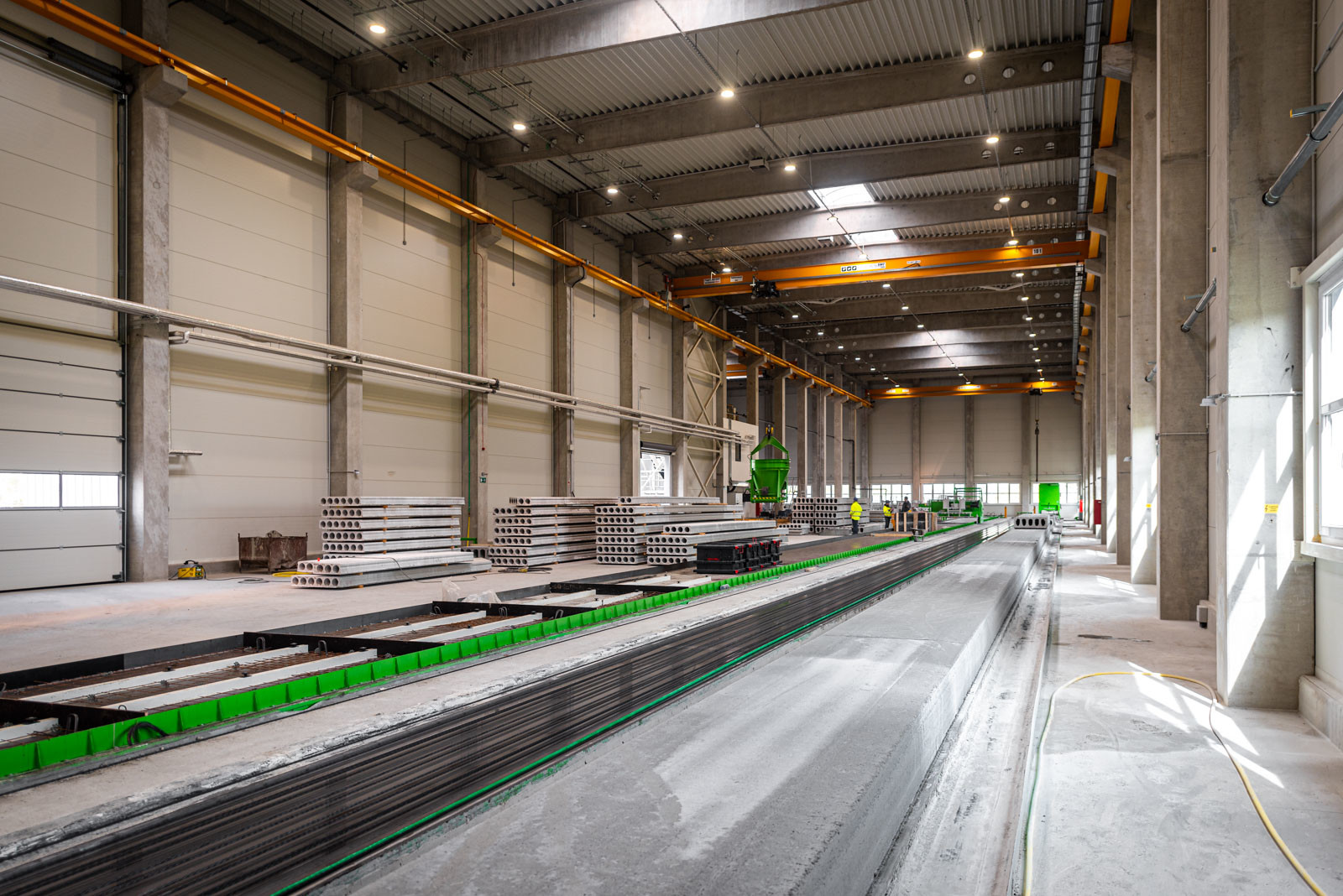 „Ezekhez létesítettünk két darab, 100 méter hosszú feszítőpadot a körüreges födémek, illetve egy 100 méteres feszítőpadot a kéregpanel gyártósor részére, melyekre Magyarországon egyedülálló, korszerű gépsorokat telepítettünk. A lépcsők és mellvédek készítéséhez beszerzésre került két darab lépcsősablon és egy háromrekeszes csoportzsalu.”