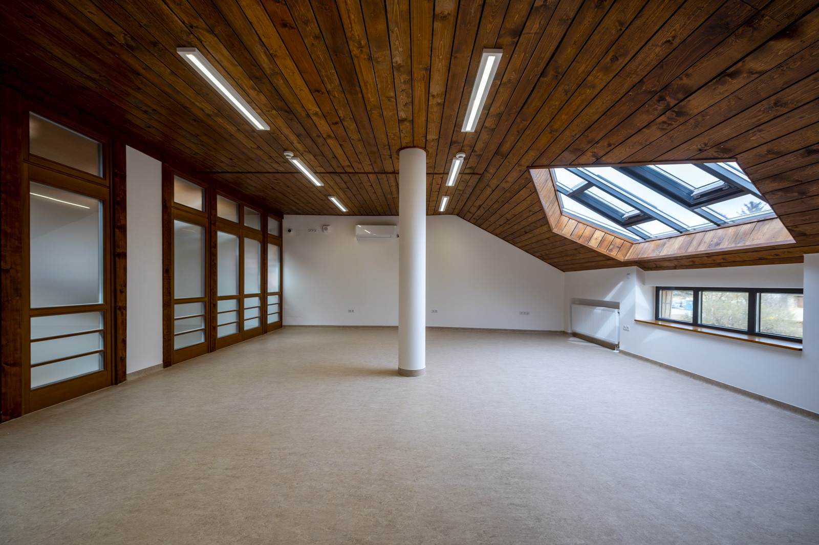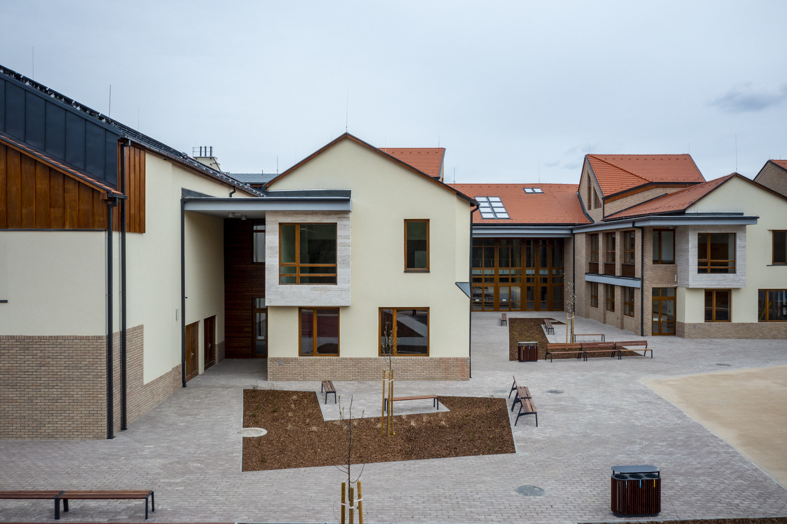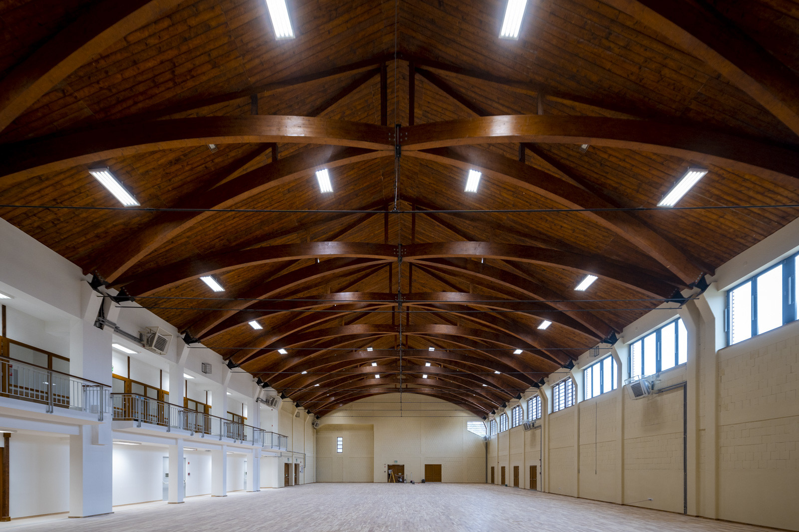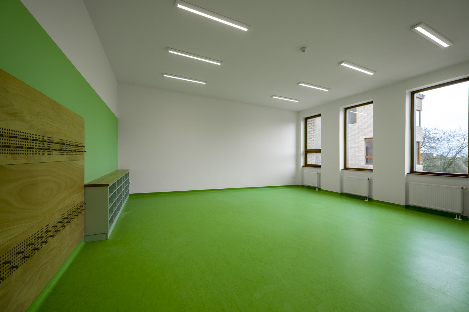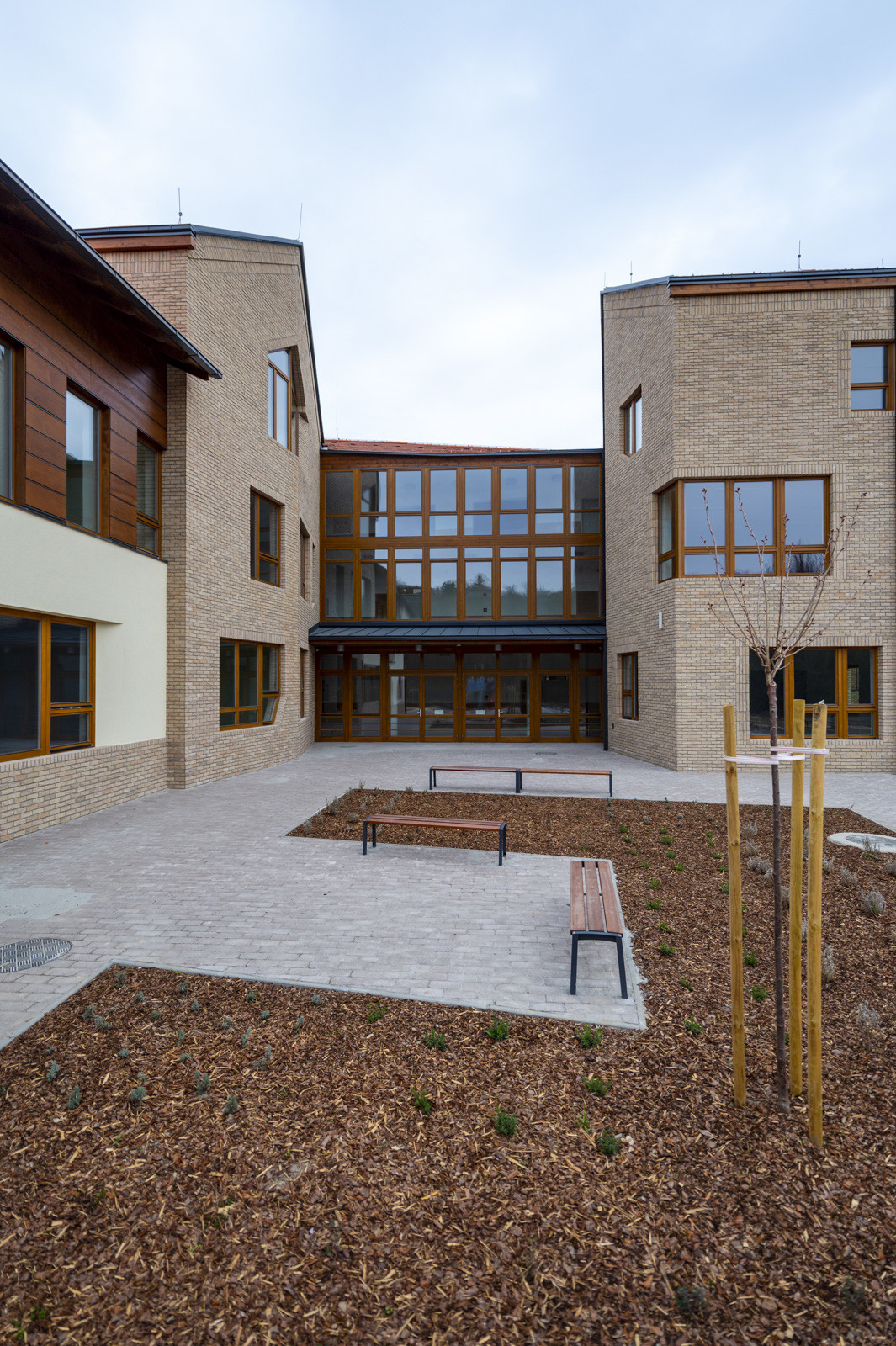 A szakember elmondta, multimédiás könyvtár és napelemekkel fedett tornaterem is helyet kapott a projektben, melyet íves toldott rétegragasztott fatetőszerkezettel fedtek le és 22 méteres fesztávolságú sportpadlórendszert kapott. Ennek tetőfelületén 210 napelemtáblát is elhelyeztek.