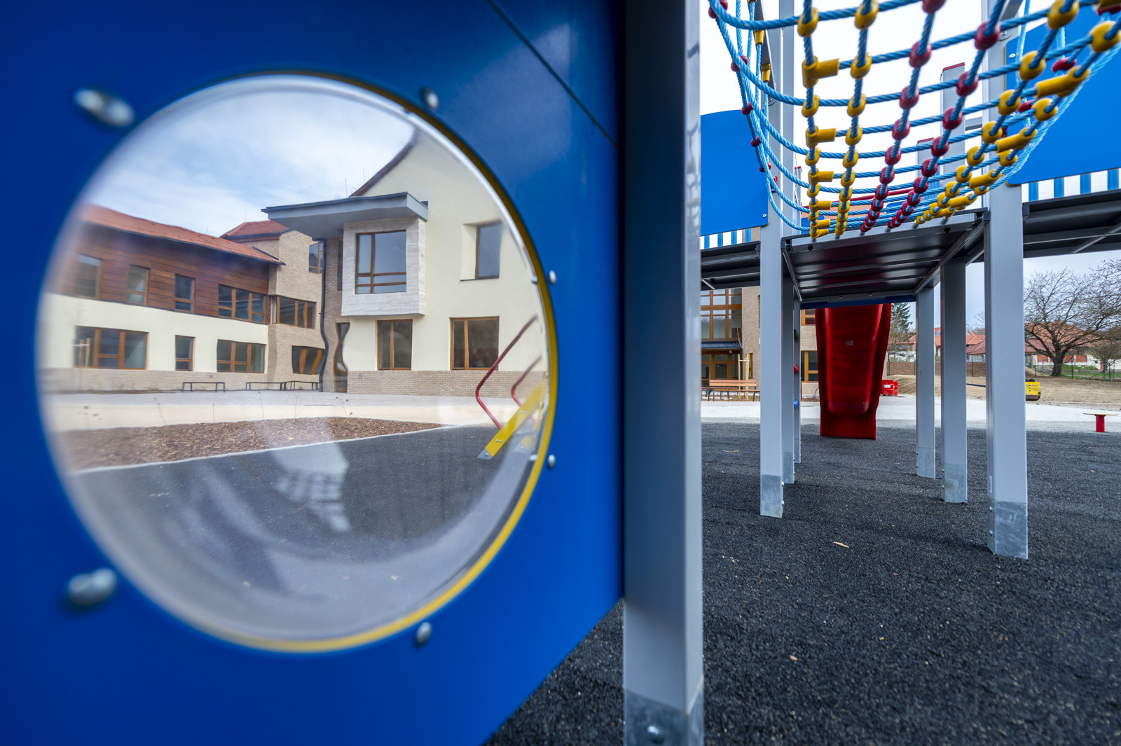 Nagy Balázs emellett betekintést adott a beruházás teljes méretébe számok segítségével is. Kifejtette, hogy az épülethez tartozó telek területe közel 12 ezer négyzetméter: itt többek között 45 férőhelyes parkoló, játszótér, futópálya, távolugró gödör és is sportpálya épült.