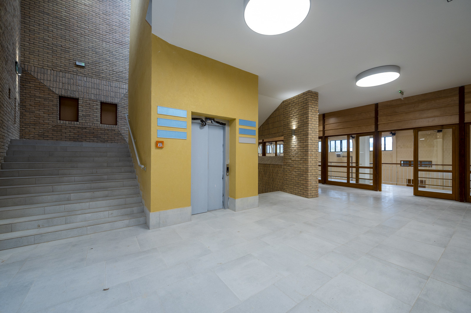 Végül elmondta azt is, funkció szerint hogyan osztották fel a háromszintes, 4500 négyzetméteres épületet. Itt az alagsorban és földszinten 16 általános tantermet és 2 csoportszobát alakítottak ki, illetve háztartási, technika, nyelvi, informatikai szaktantermek várják majd a tanulókat. A felső szinten a természettudományi és a biológia szaktantermek, az utcai torony legfelső szintjén pedig a multimédiás könyvtár kapott helyet.