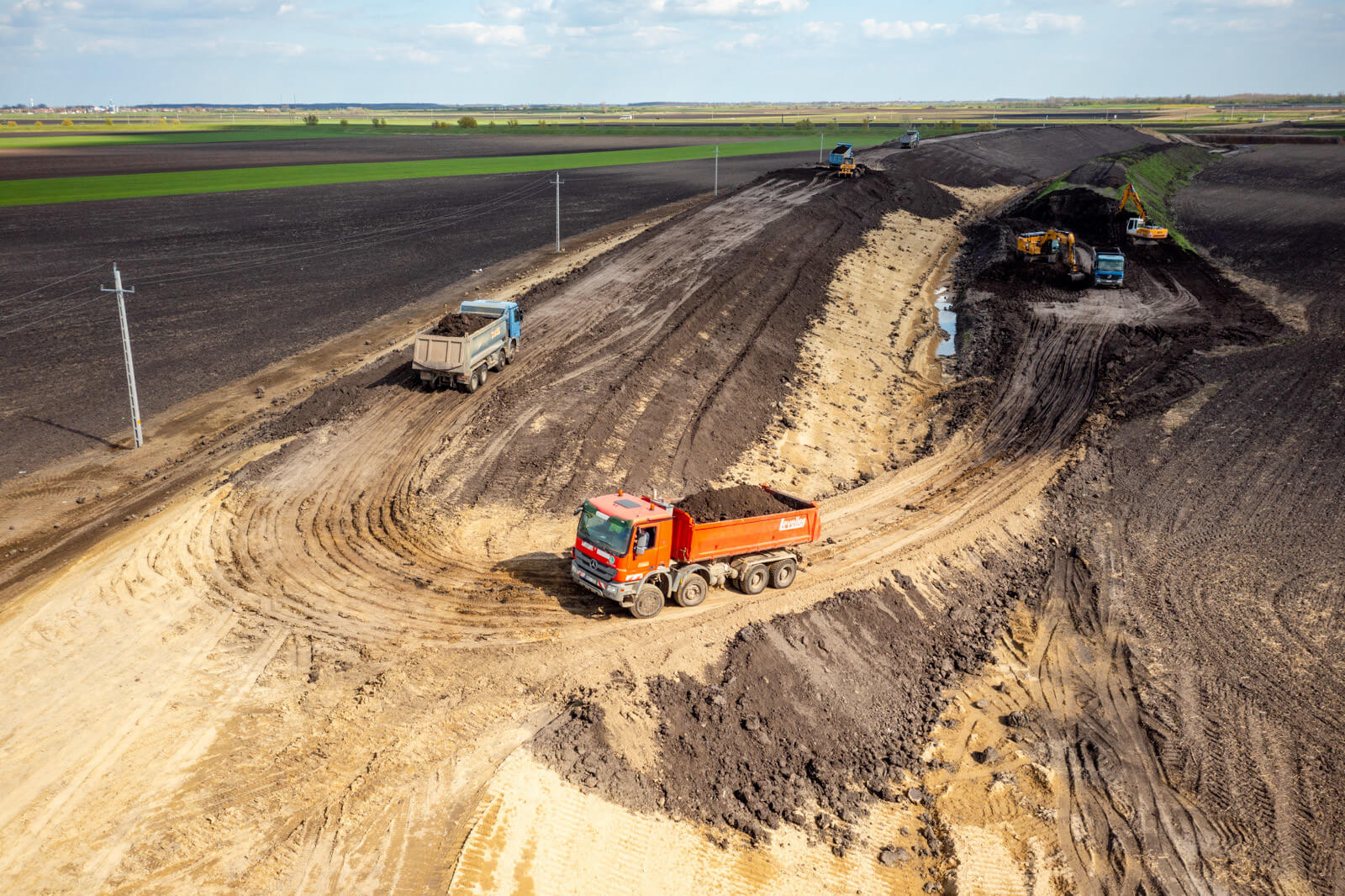Elmondta: a tavaly májusban elrajtolt munkálatok először a fák kivágásával és a humuszolással haladtak, jelenleg pedig a töltésépítési feladatokra mellett a közművek kiváltásán dolgoznak. A vezető szakember kifejtette: a főldműépítéshez szükséges humuszolás során mintegy több mint 300 ezer köbméternyi földet mozgattak meg.